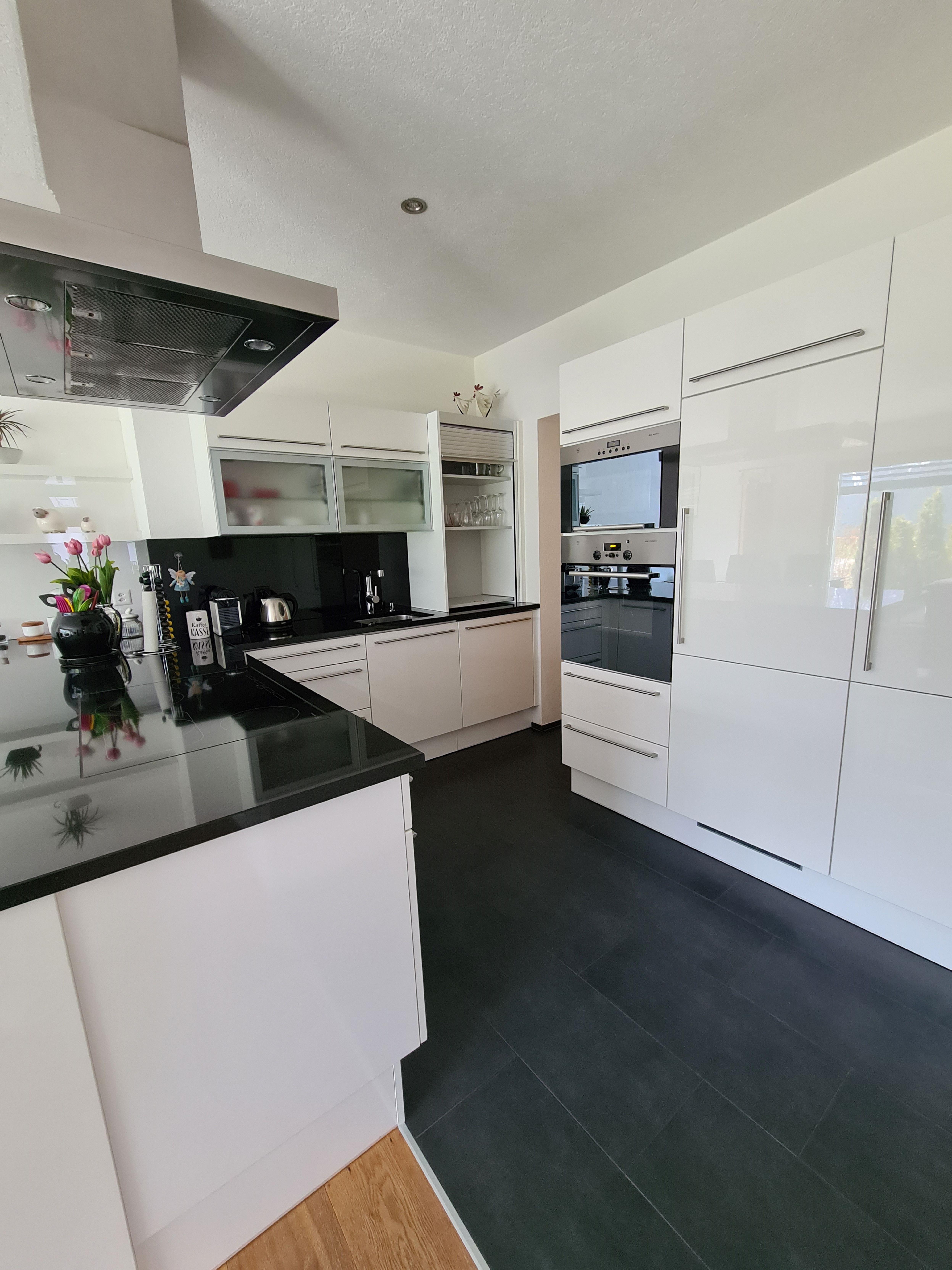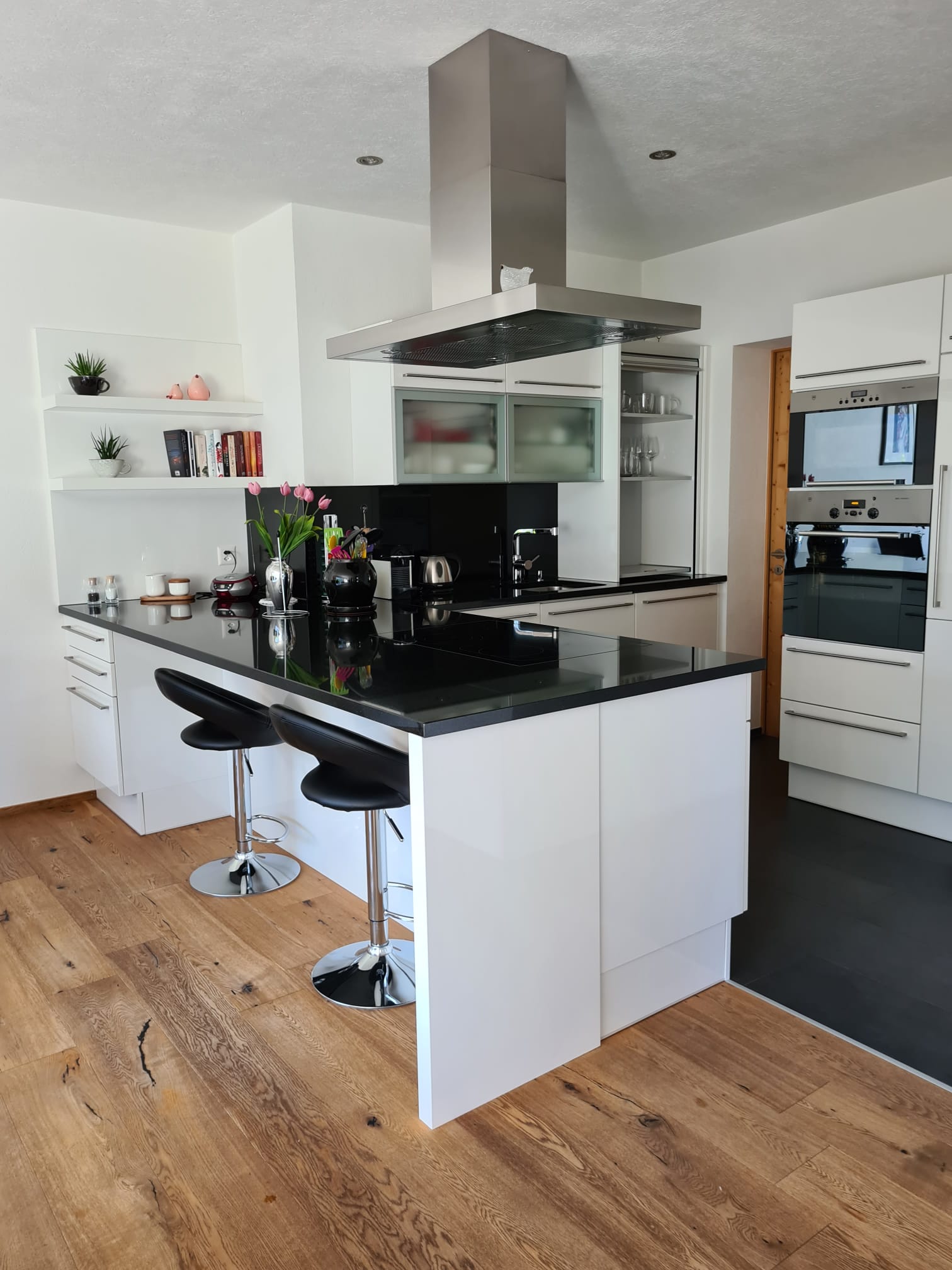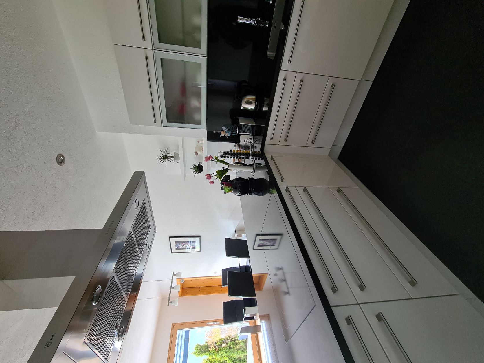 In der modernen voll ausgestatteten Küche befinden sich ein grosser kombinerter Kühlschrank/Gefrierfach, Geschirrspüler, Backofen, Microwelle, Ceran-Kochfeld, Nespresso- und Kaffeefiltermaschine, Wasserkocher, komplette Geschirr-, Besteck- und Gläserausstattung, Raclett-, Chinoise- und Fonduegeschirr, diverse Töpfe und sonstige notwendigen Küchenutensilien und diverse Gewürze.