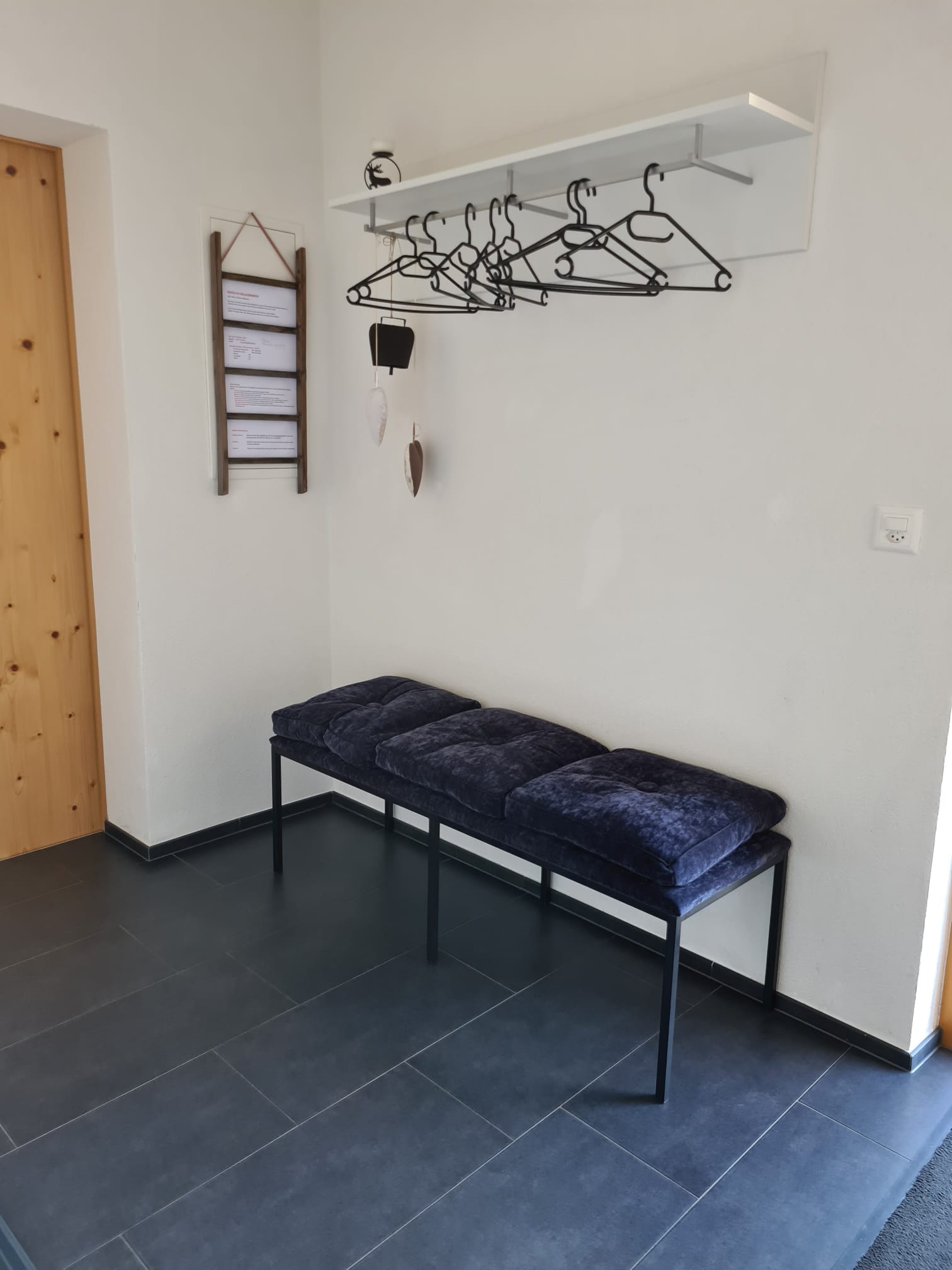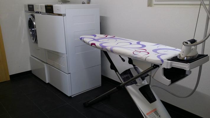 Eine Waschküche mit Waschmaschine, Tumbler und Bügelstation steht im EG zur Verfügung und kann jederzeit benutzt werden. Ebenfalls ist ein Abstellraum für Ski, Velo und Schlitten vorhanden.