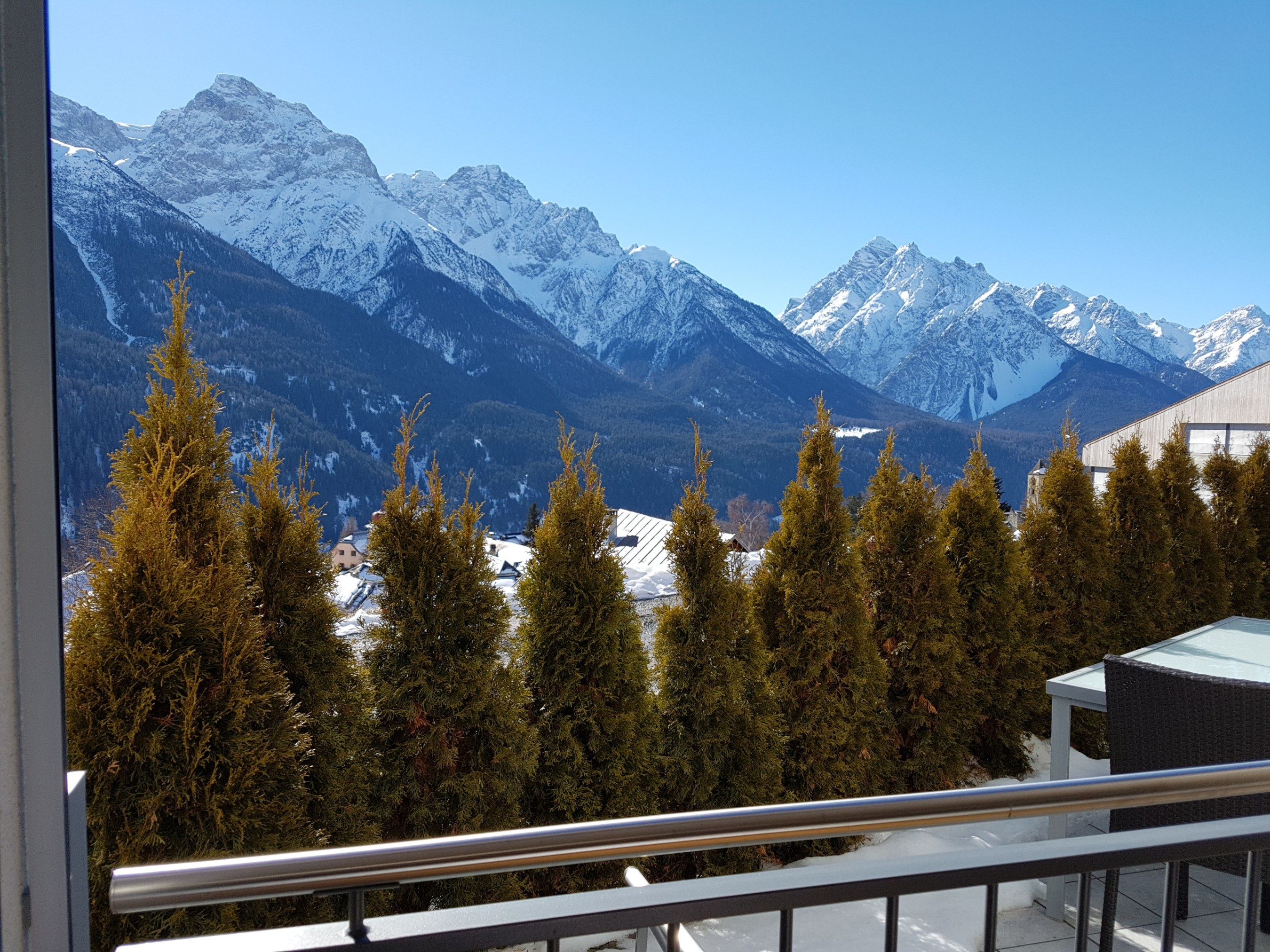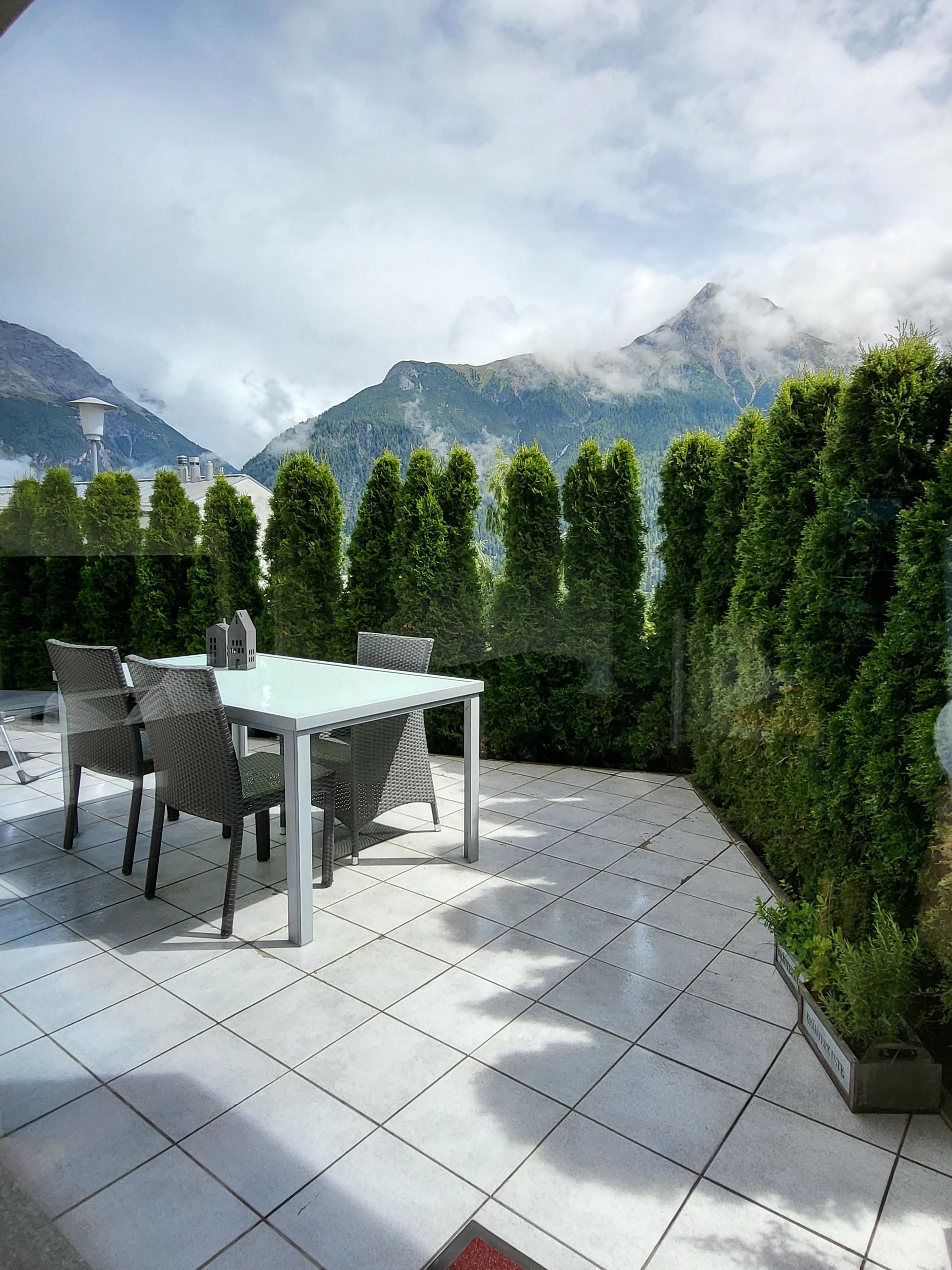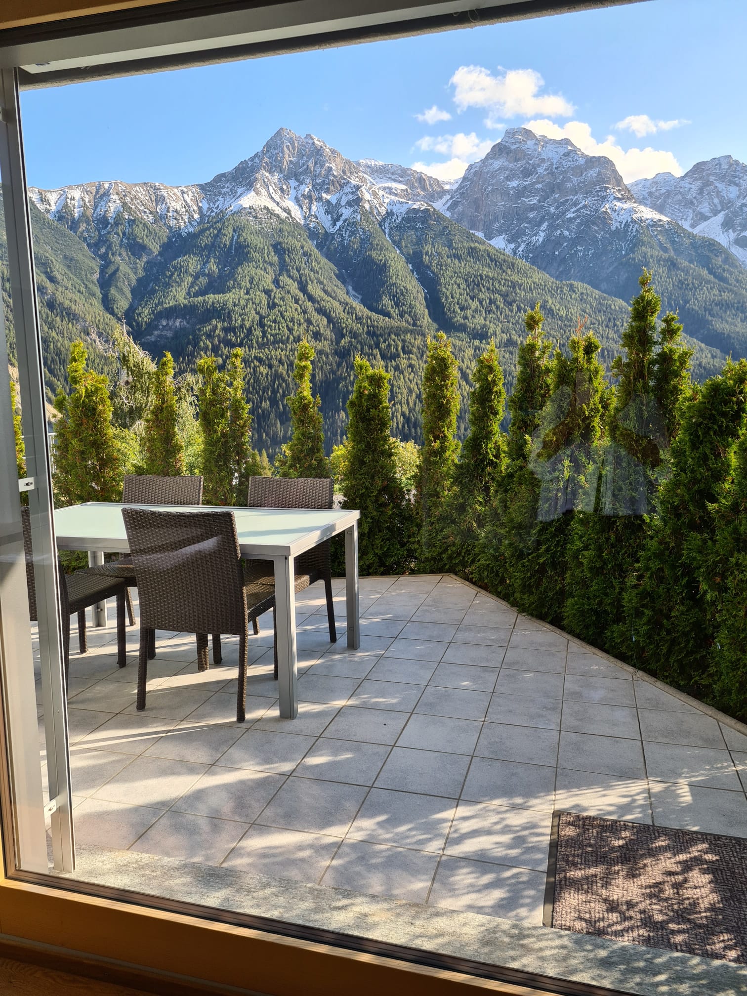 Die Südterrassen und die raumhohen Fenster- und Türöffnungen bieten eine herrliche Aussicht auf die Unterengadiner Bergwelt, die märchenhafte Natur und das ganze Tal.