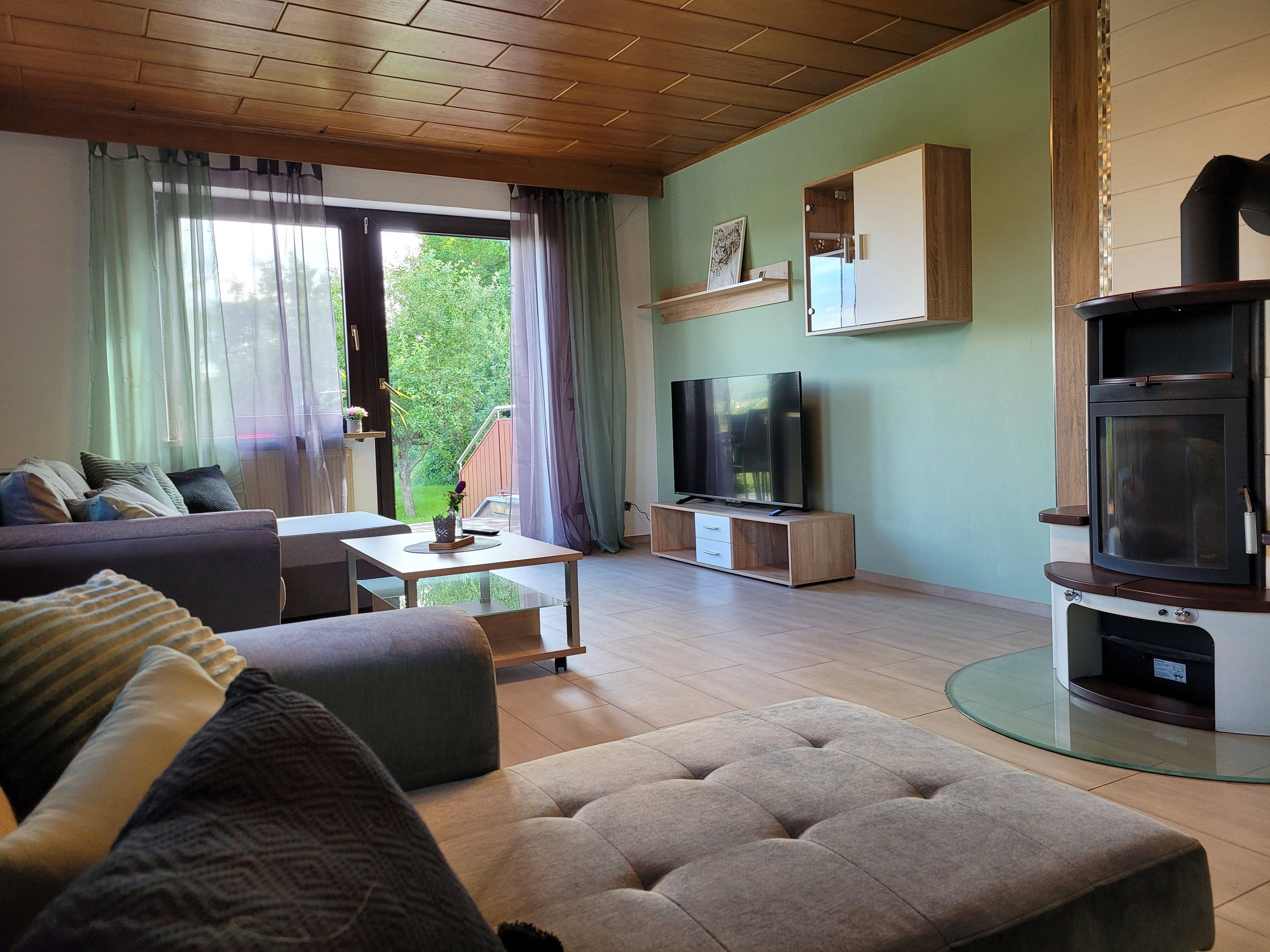 An der Unterkunft stehen kostenfreie Parkmöglichkeiten zur Verfügung. Fahrradunterstellmöglichkeiten sind ebenfalls vorhanden. An die Terrasse schließt ein großer Garten mit Sitzmöglichkeiten an. Das Haus, in welchem sich die Ferienwohnung befindet, ist mit einer Photovoltaikanlage auf dem Dach ausgestattet, welche nachhaltig Strom für die Ferienwohnung generiert. Auf einer eigenen Terrasse mit großem Garten können Sie die Natur und die Aussicht genießen. Wir freuen uns auf Sie!