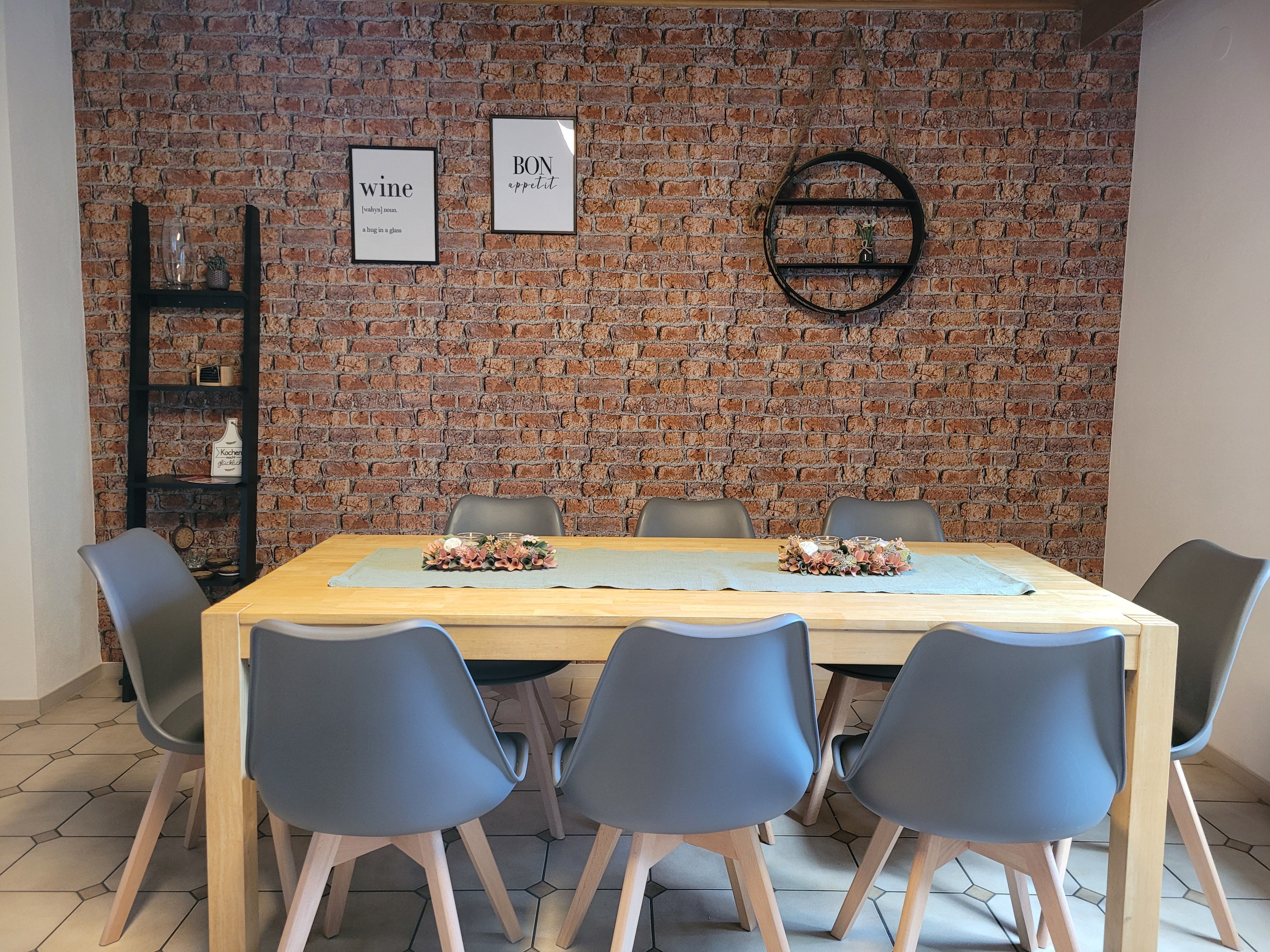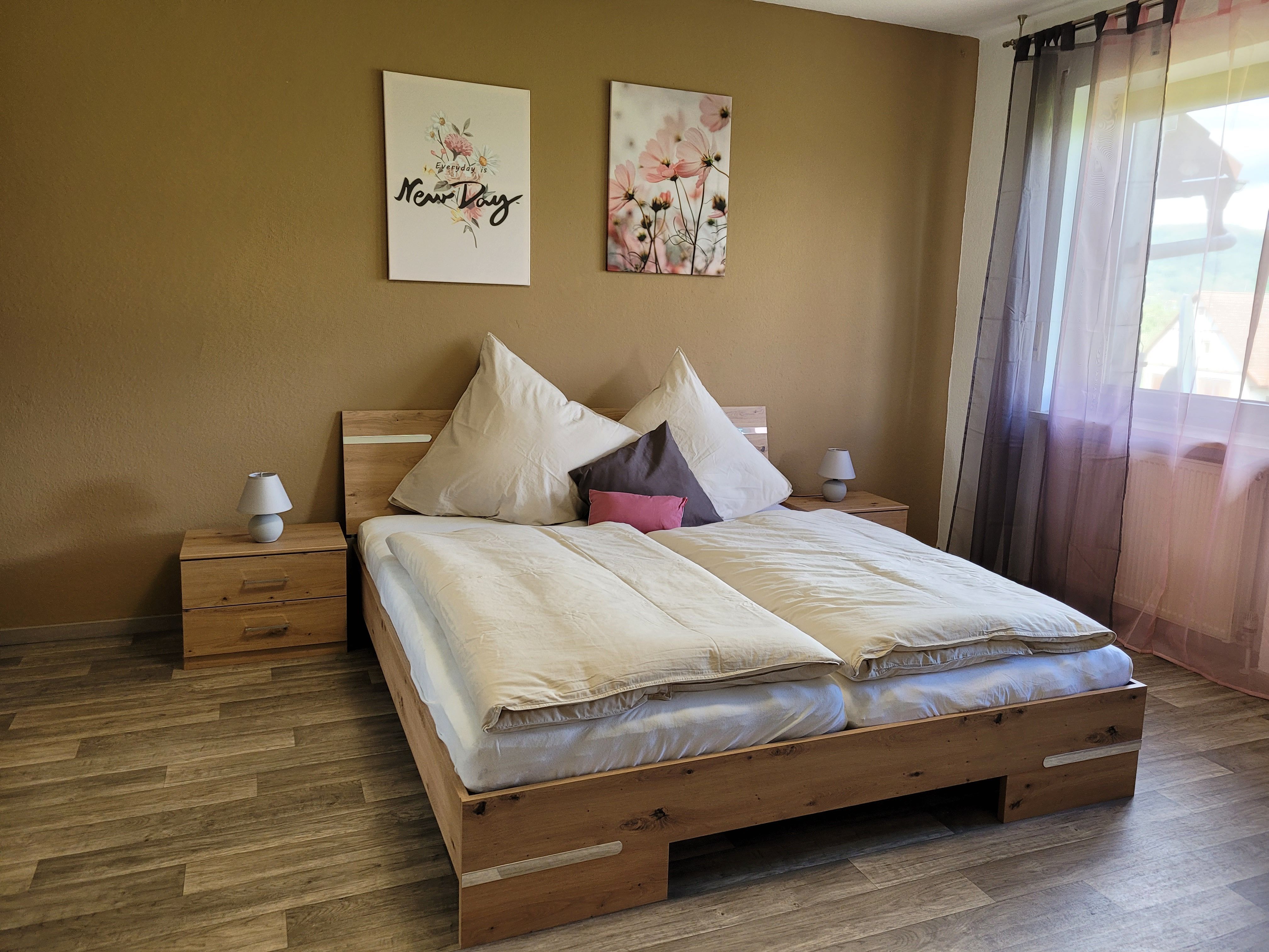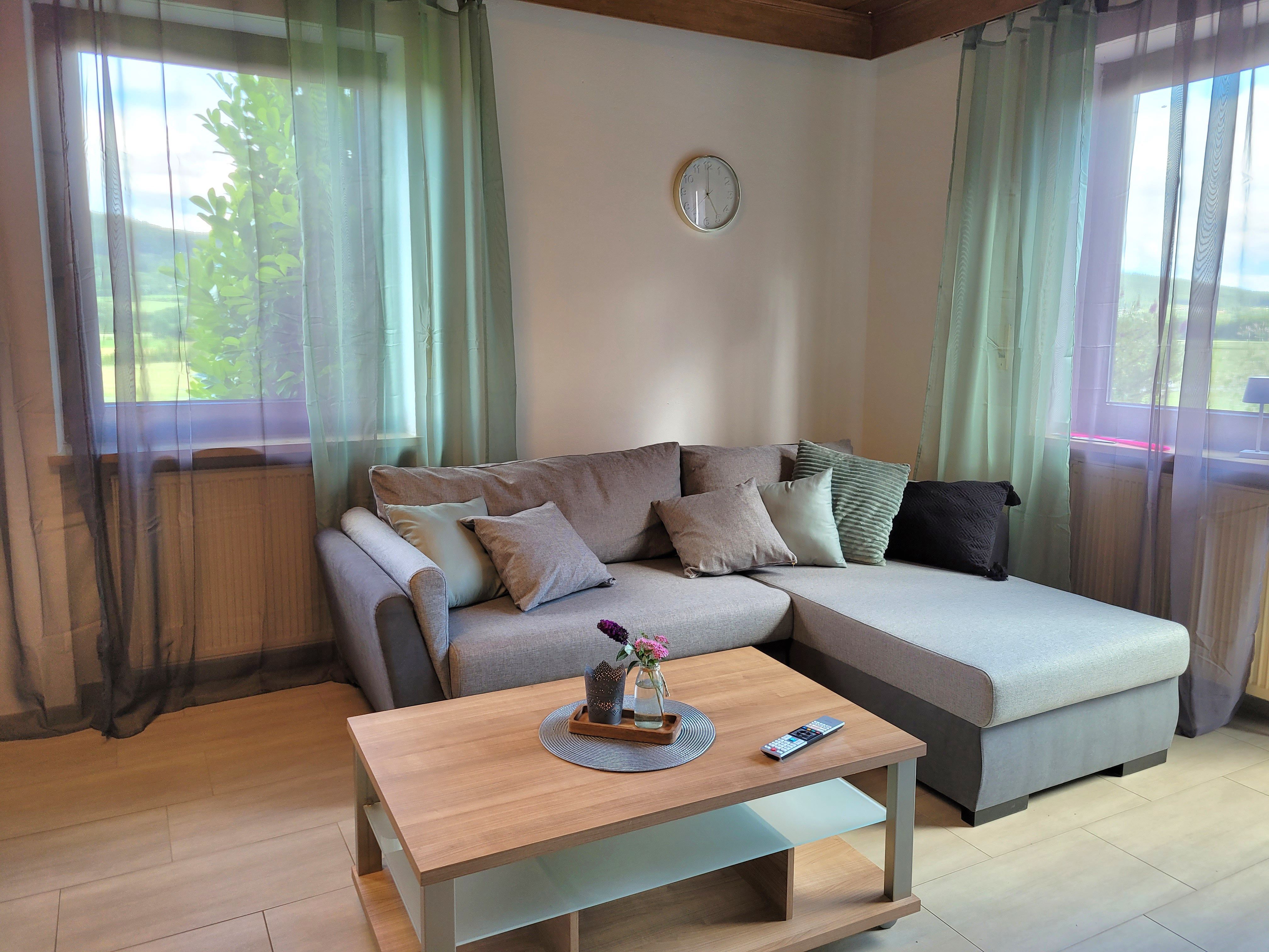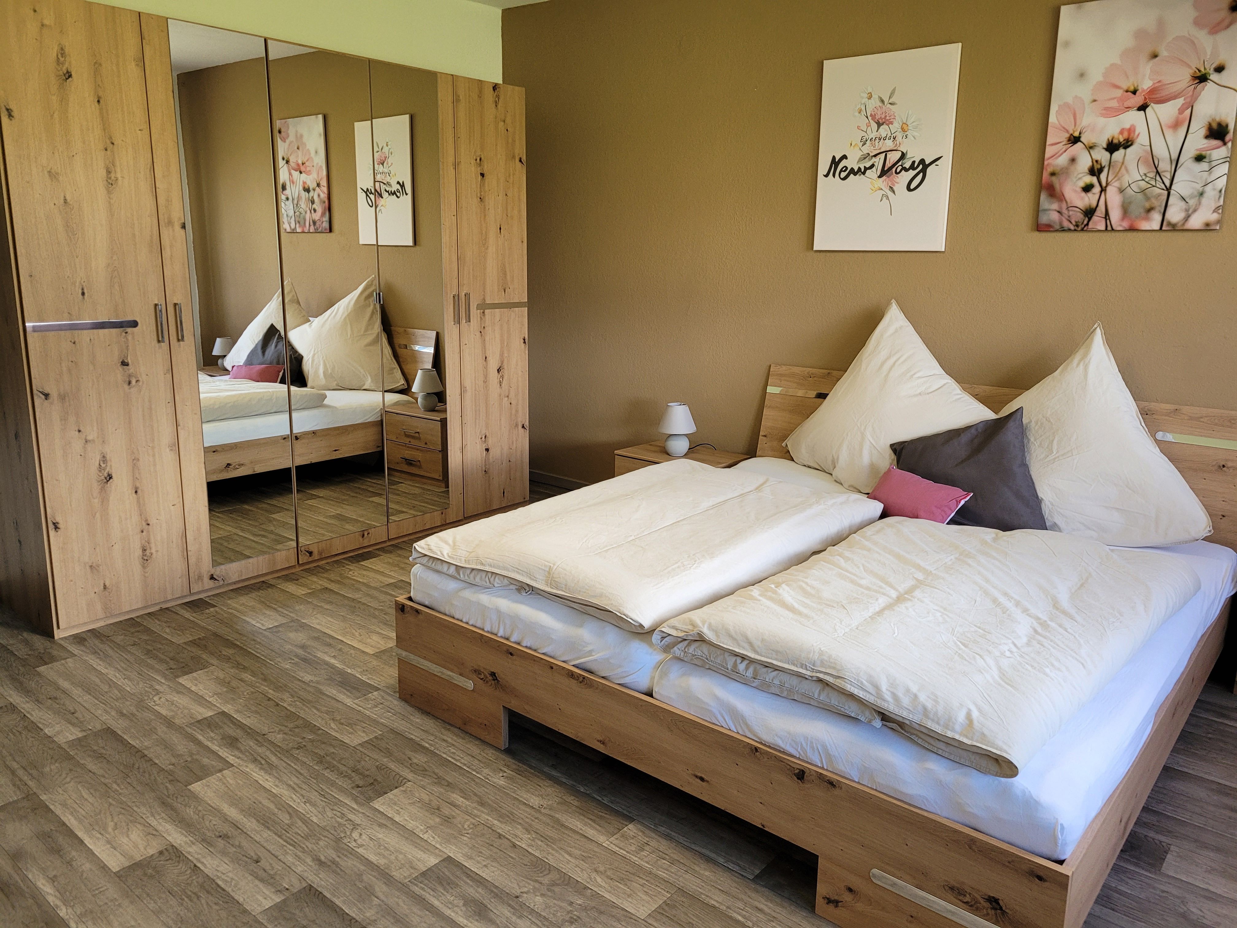 Wir bieten Platz für bis zu 8 Personen auf 110 m². In der neu eingerichteten Ferienwohnung befinden sich 2 Schlafzimmer mit großem Doppelbett (Größe 180 cm x 200 cm) sowie zwei Schlafcouches (Größe 140 cm x 200 cm) mit bis zu 4 Schlafplätzen im Wohnzimmer.