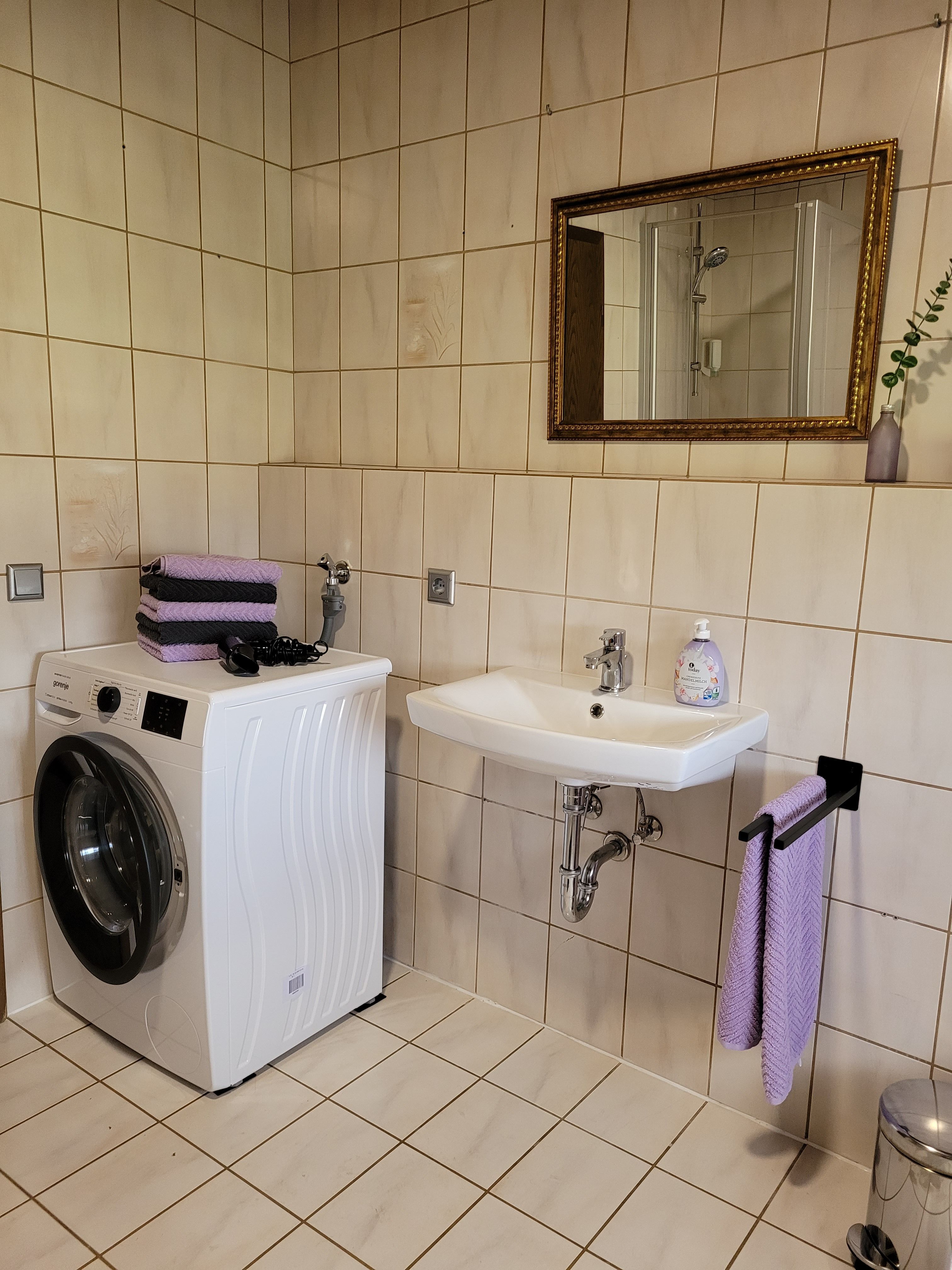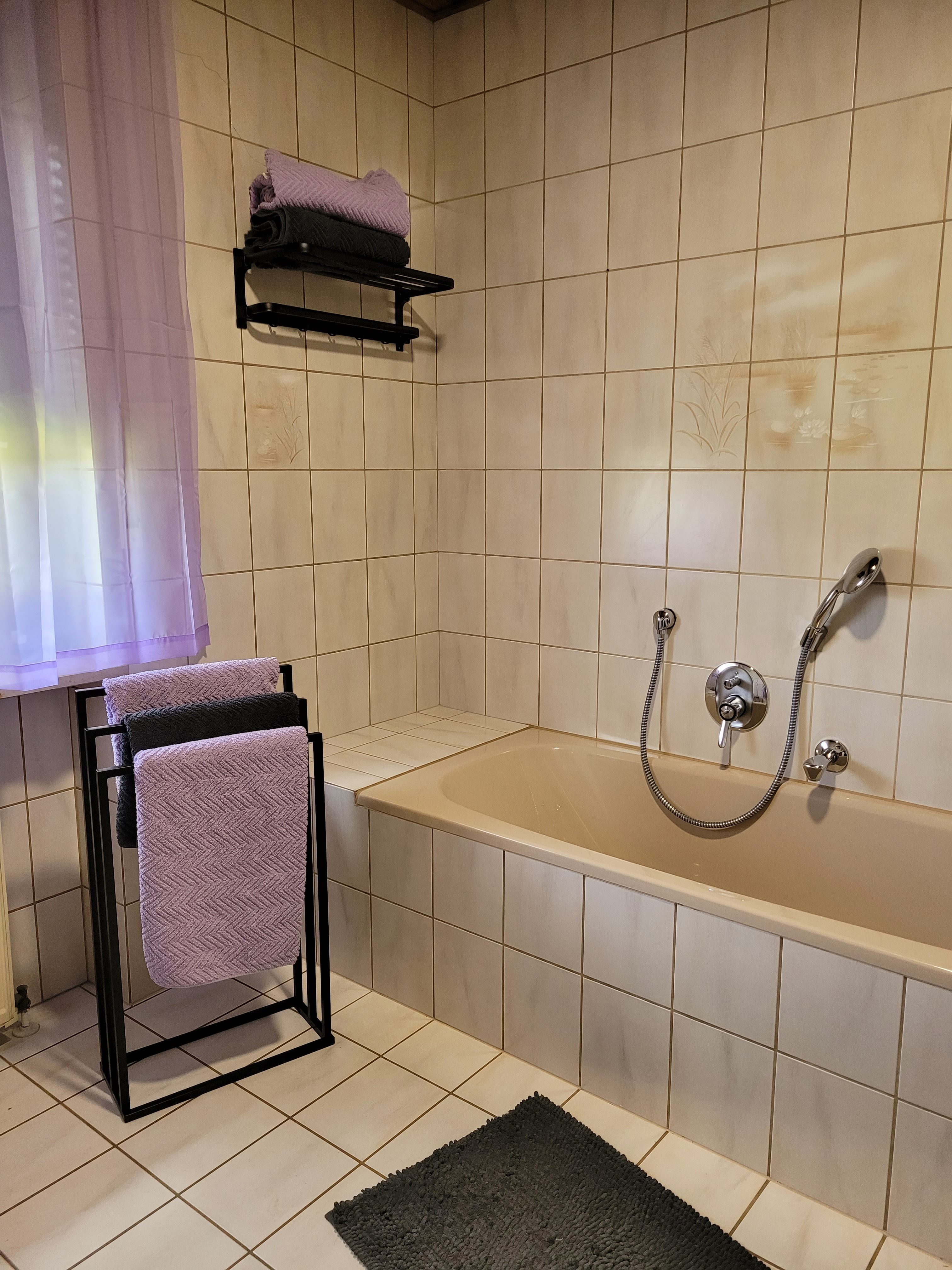 Daneben erwartet Sie eine neue top ausgestattete Küche mit Essbereich, ein Badezimmer mit WC, Badewanne, Dusche und Waschmaschine sowie ein separates Gäste-WC. Im Erdgeschoss gelegen, verfügt die Ferienwohnung über eine Terrasse mit Sitzmöglichkeiten im Freien.