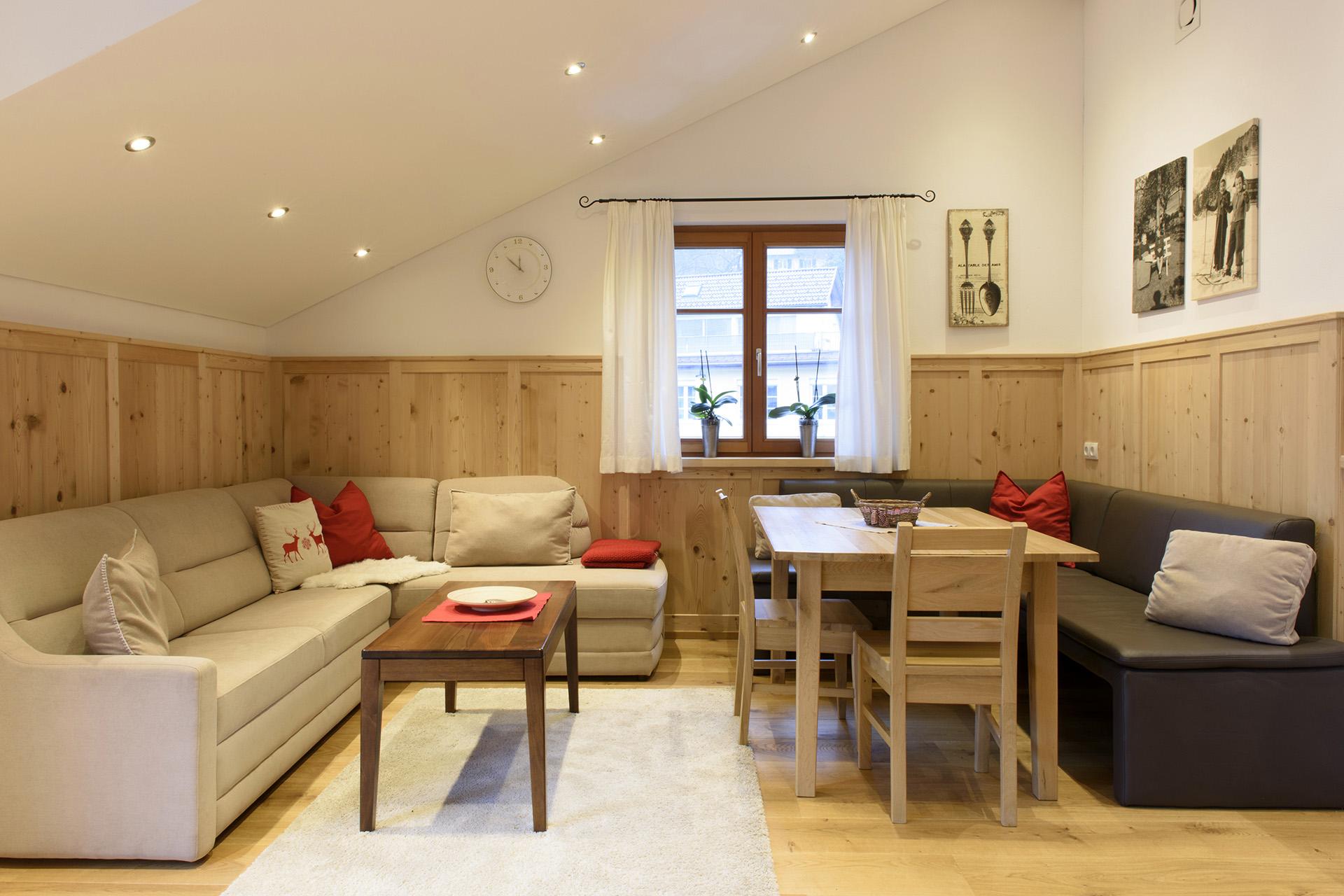 Appartement verfügt über Flat TV, WLAN, Zentralstaubsauger, Indirekte Belüftung für das beste Raumklima und ideal für Allergiker. Naturbelassene, geölte Eichenholzböden. Wohnfläche 45m², moderne Küche kombiniert mit gemütlichem Wohnbereich, Doppelbettschlafzimmer, Ausziehcouch, geräumiges Badezimmer mit Dusche und WC.