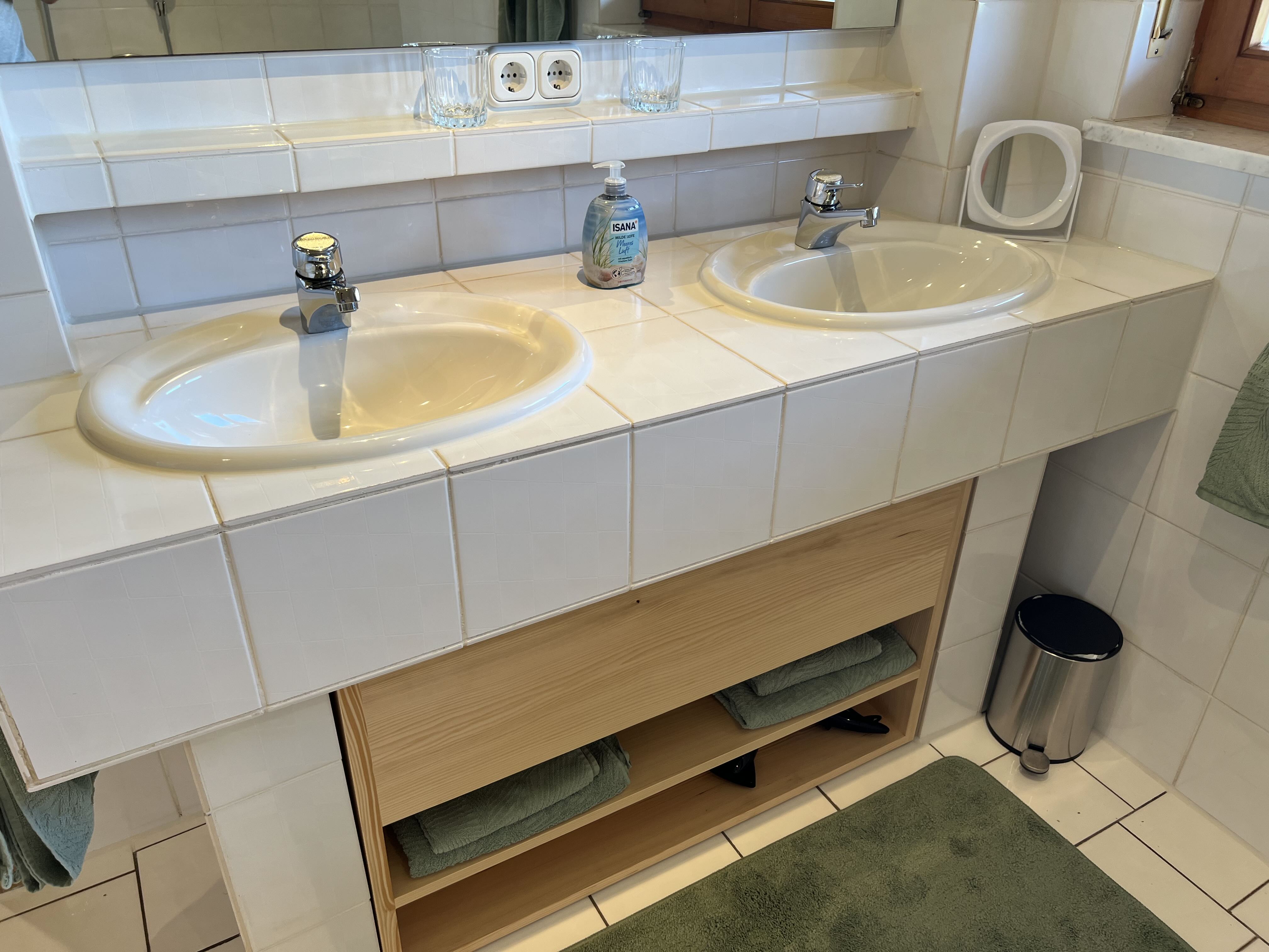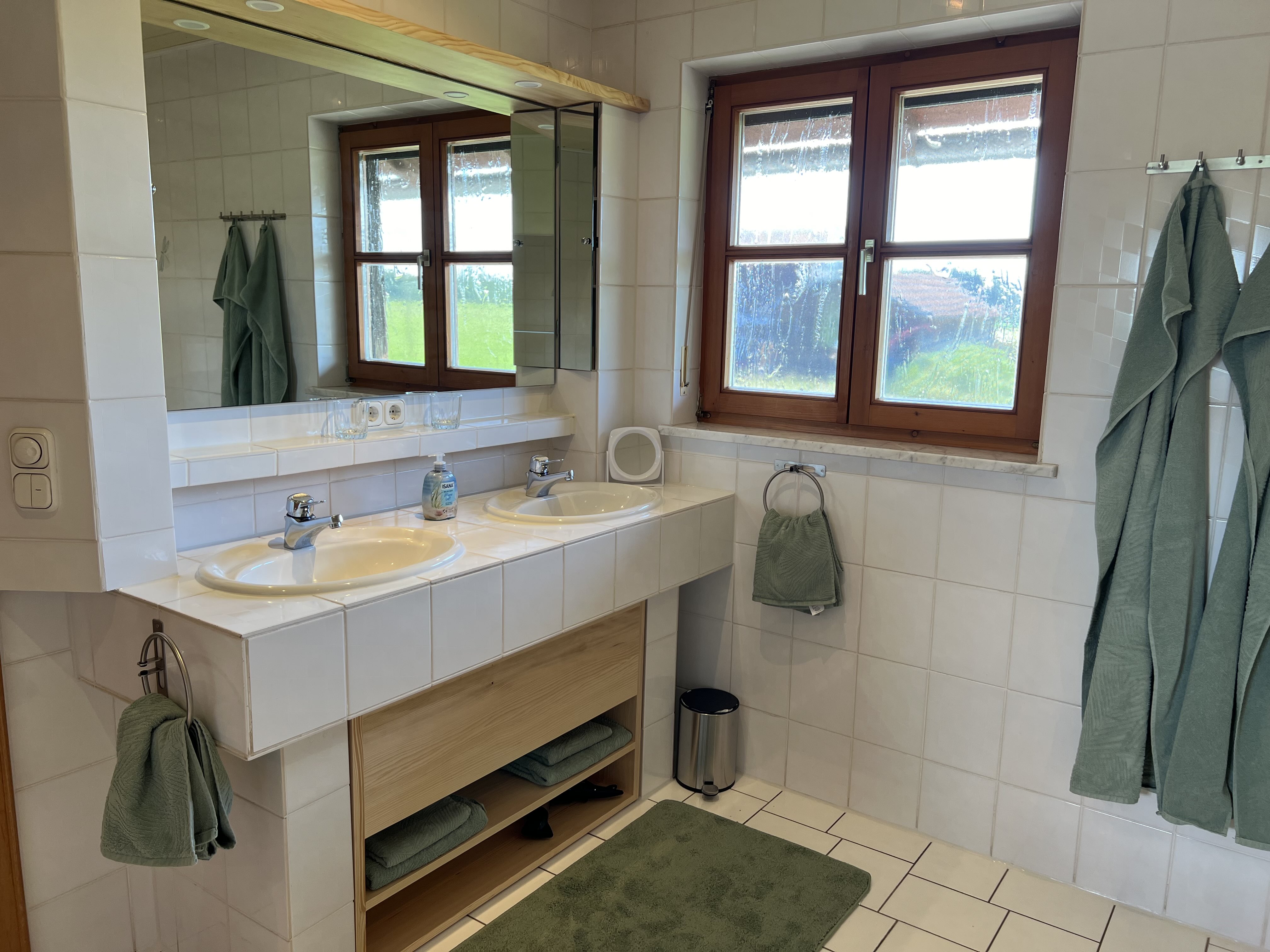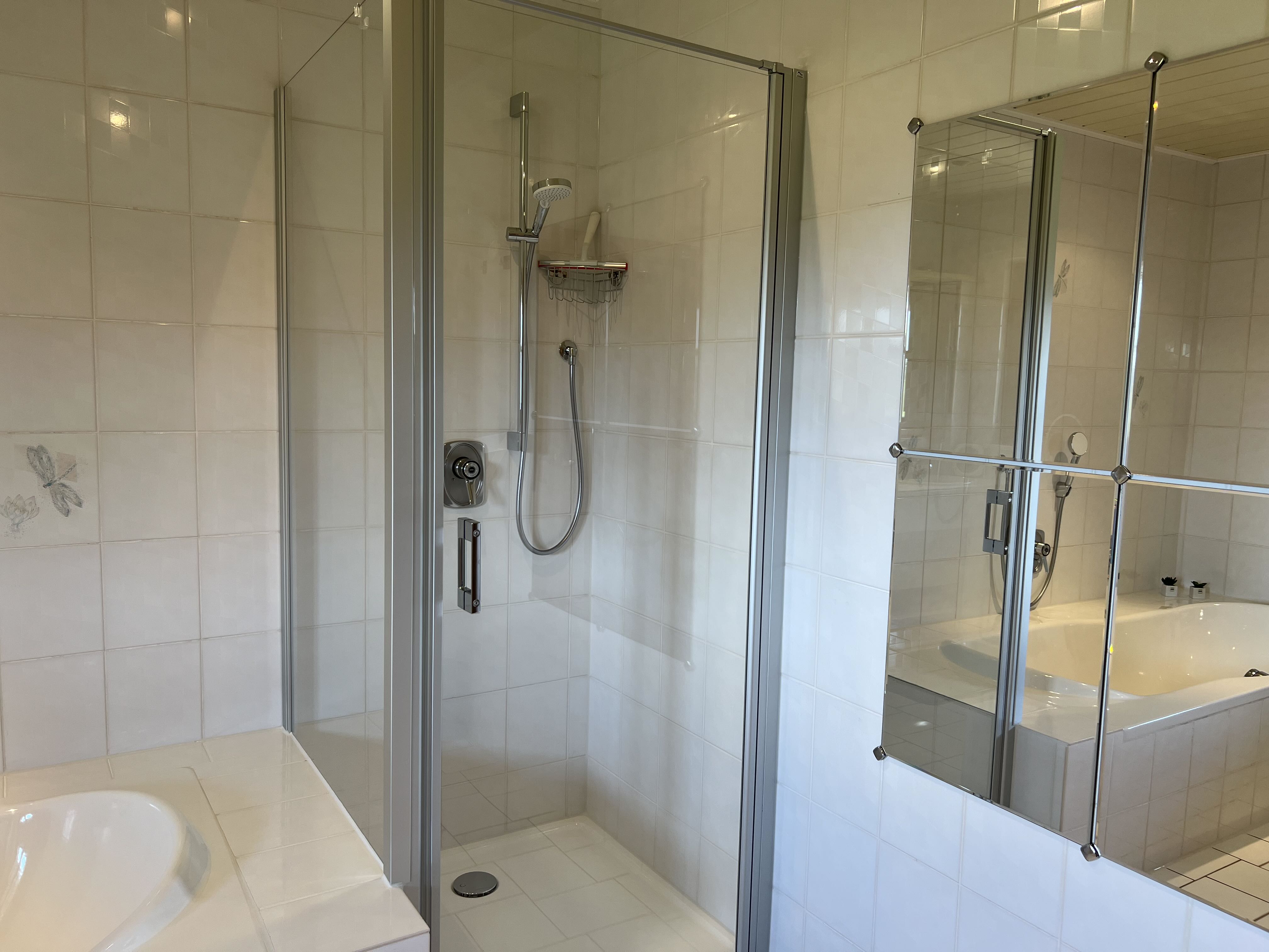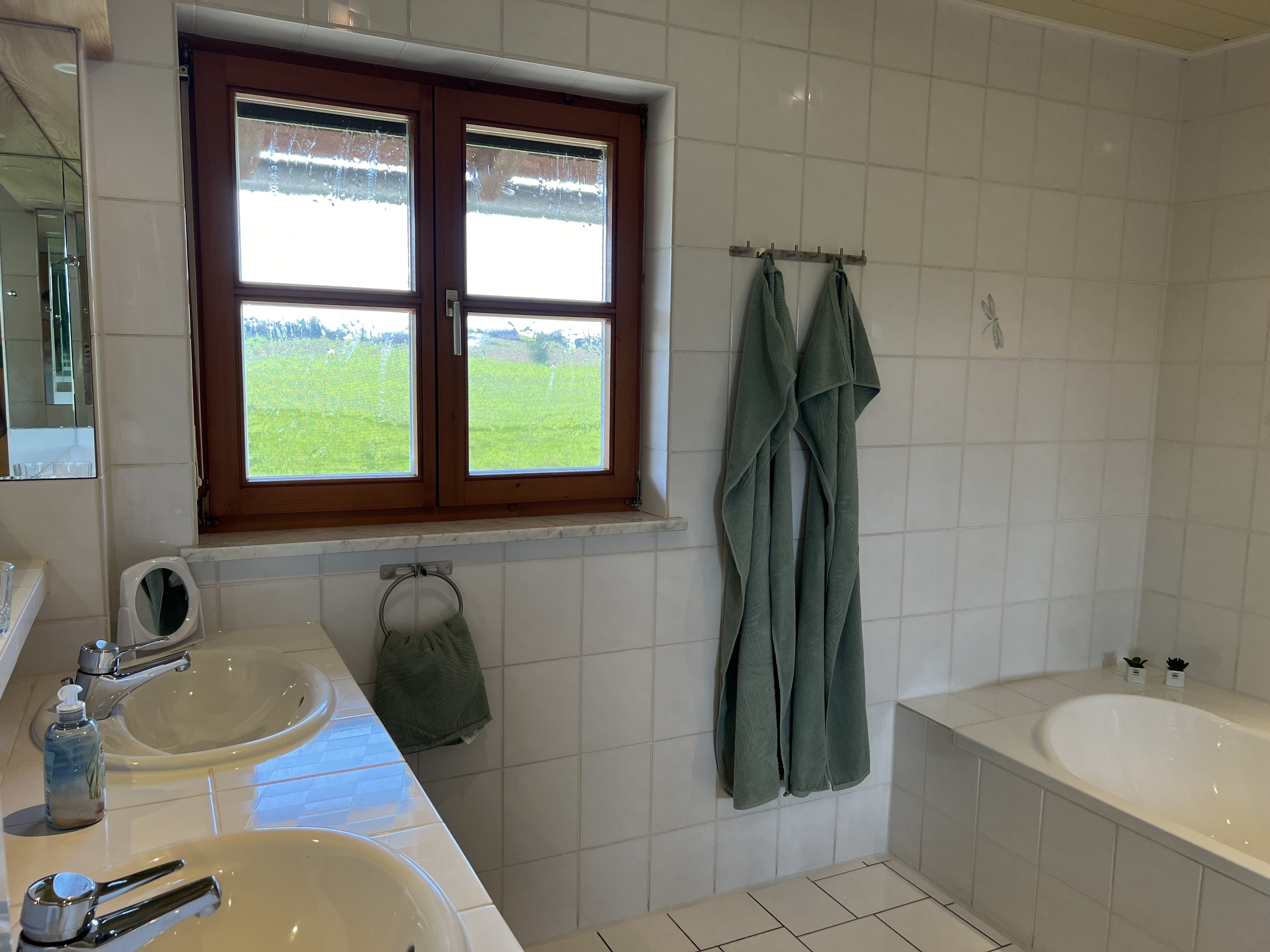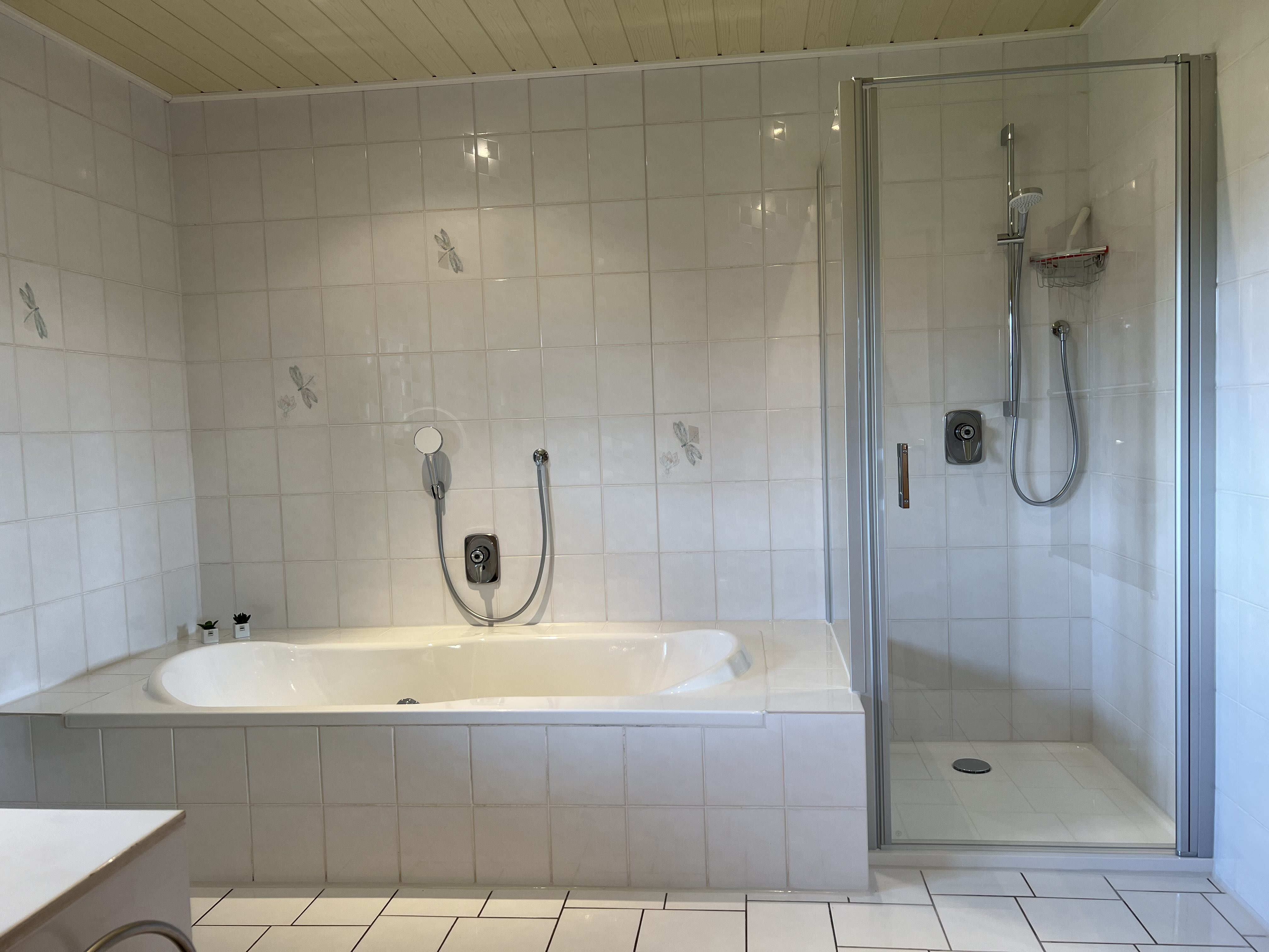 • Badezimmer: Modernes Badezimmer mit Badewanne, separater Dusche, Waschbecken sowie ein separates WC.