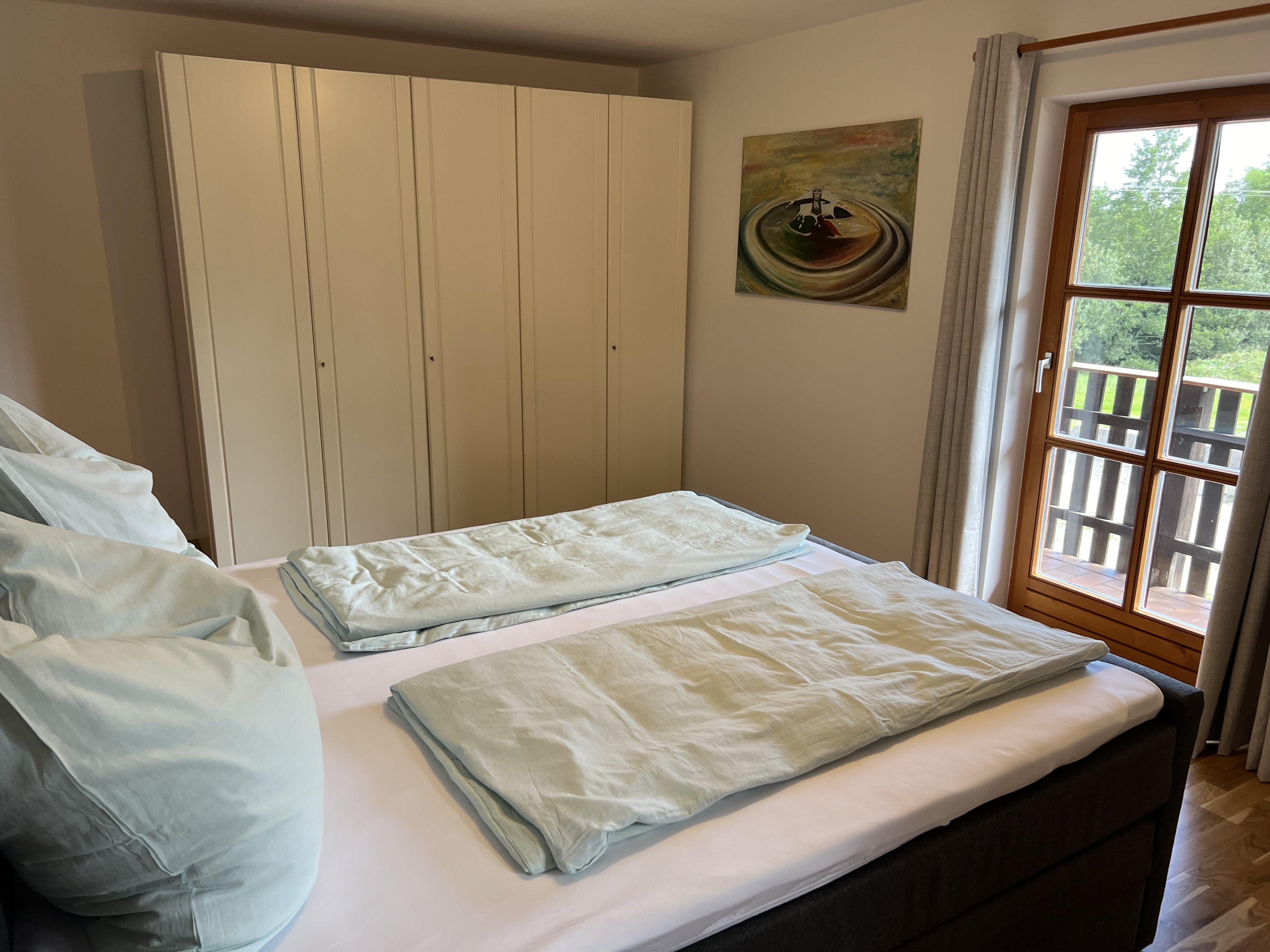 • Schlafzimmer: Zwei Schlafzimmer - eines mit einem komfortablen Boxspringbett (180x200 cm) und eines mit einem französischem Doppelbett (140x200 cm).
