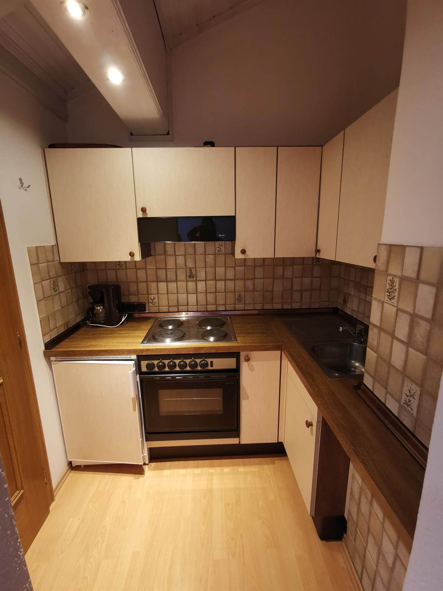 In der praktischen großen Eck-Küche finden Sie eine Kaffeemaschine, Toaster, Wasserkocher und einen Backofen – ausreichend für Ihre kulinarischen Bedürfnisse.