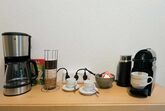 • Kaffee-Bar mit Nespresso-Maschine, Filterkaffeemaschine, Wasserkocher, Milchaufschäumer und mehr