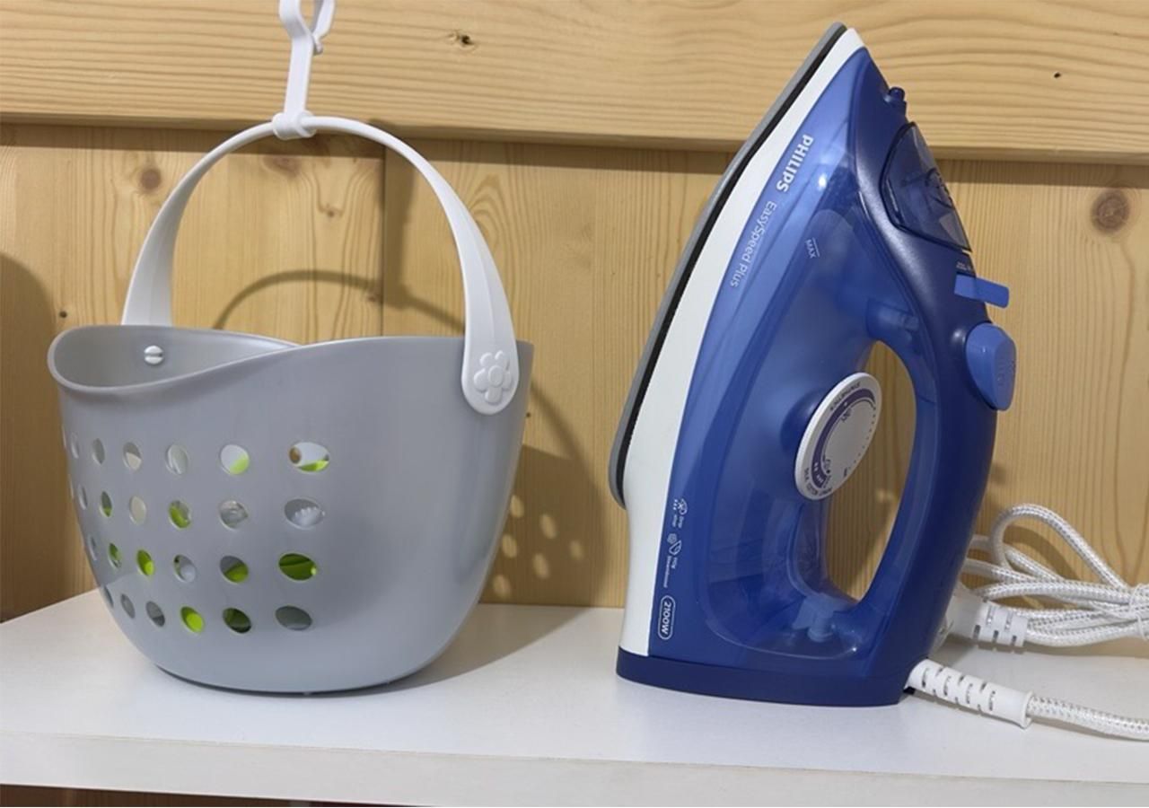 • Separater Hauswirtschaftsraum mit Waschmaschine, Akkustaubsauger, Wäscheständer, Bügelbrett und Bügeleisen