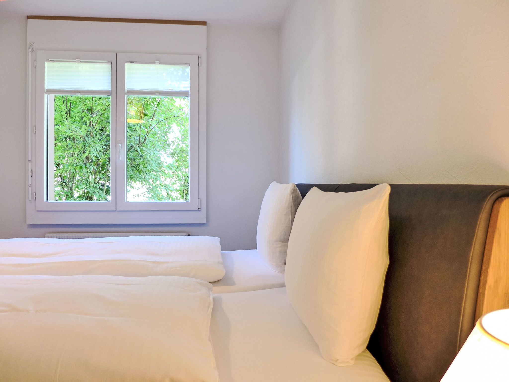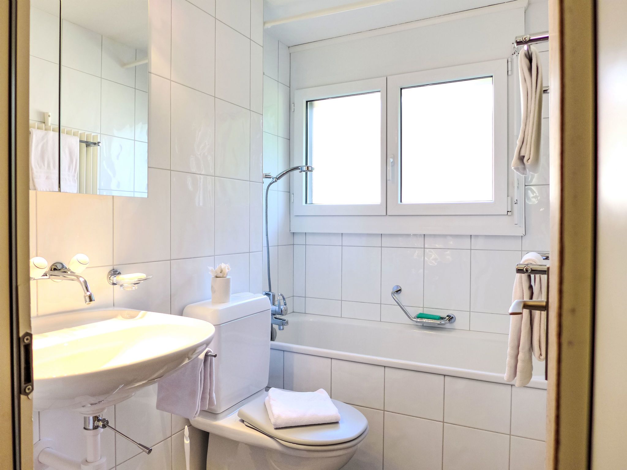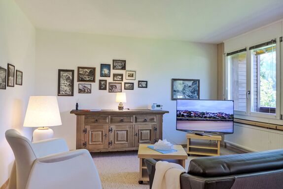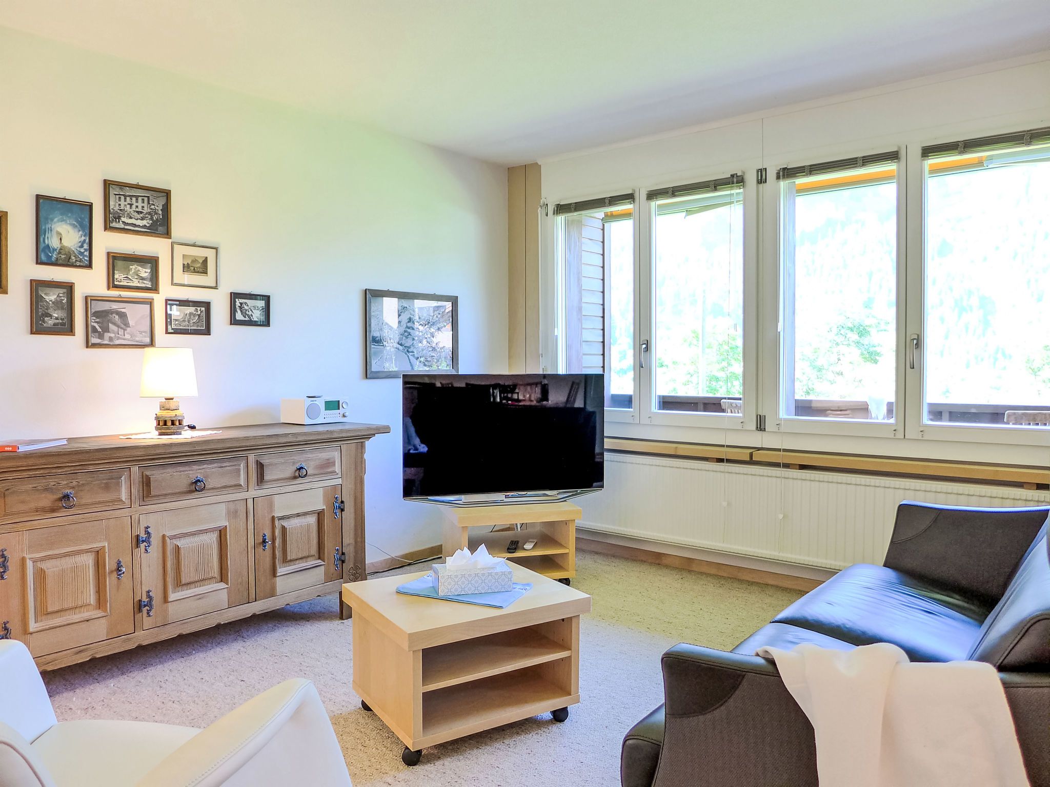 2-Zimmer-Wohnung 40 m2, im erhöhten Erdgeschoss, Südlage. Sehr komfortabel und gemütlich eingerichtet: offenes Wohn-/Esszimmer mit Esstisch, Kabel-TV, Internationale TV-Sender und Radio. Ausgang zum Balkon, Richtung Süden. 1 Zimmer mit 1 Doppelbett (2 x 80 cm, Länge 200 cm). Offene Küche (Backofen, Geschirrspüler, 4 Glaskeramikplatten, Toaster, Wasserkocher, elektrische Kaffeemaschine, Kapseln für die Kaffeemaschine (Nespresso) extra, Racletteofen, Fondue Set (Käse)). Bad/WC. Teppichboden. Balkon, Südlage. Balkonmöbel. Herrliche Sicht auf die Berge, die Landschaft und Eigernordwand. Zur Verfügung: Haartrockner. Internet (Wireless LAN, gratis). Garage (1 Auto) beim Haus, Höhe 195 cm. Bitte beachten: Nichtraucher-Unterkunft.