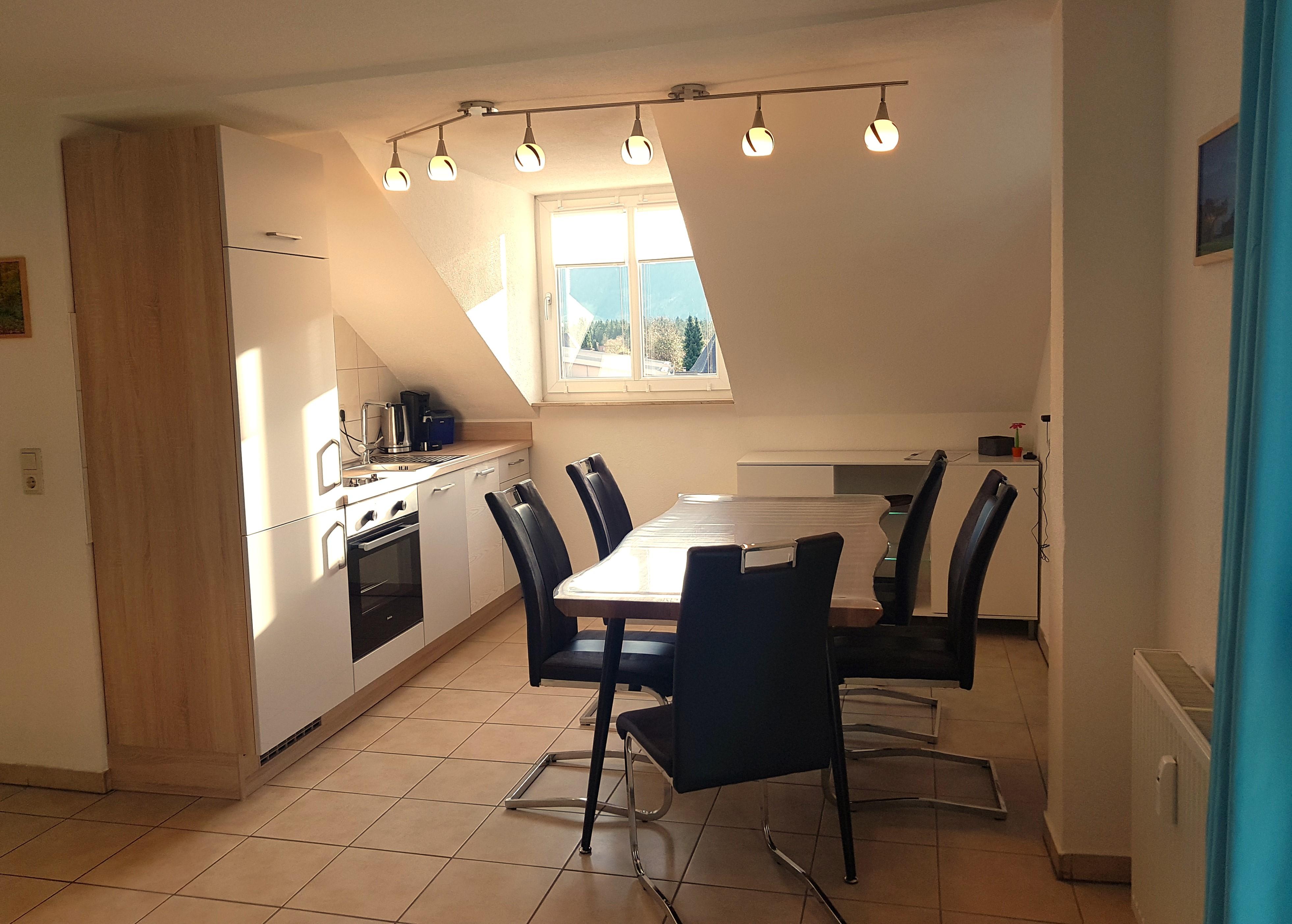 Die moderne 60qm große Ferienwohnung Schloßblick befindet sich in einem sanierten Mehrfamilienhaus, dass im Stadtzentrum Füssen liegt. Trotz der zentralen Lage liegt die Ferienwohnung in einem ruhigen Bereich und Sie können direkt mit dem Auto zur Ferienwohnung fahren (PKW-Stellplatz vorhanden). Vom Küchen-, Wohnbereich und Südbalkon haben Sie Blick auf das Schloß Neuschwanstein und die Berge. Die moderne Ferienwohnung bietet Platz für bis zu sechs Personen. Die Küche verfügt über eine Spülmaschine, einen Backofen und zwei Kochplatten, zudem gibt es einen Kühlschrank mit Gefrierfach. Das Hauptschlafzimmer liegt auf der Nordseite, das zweite Schlafzimmer liegt nordöstlich. Wir sind Königscard-Gastgeber, mit dieser Karte, die alle unsere Gäste direkt nach Anreise von uns erhalten können Sie kostenfrei über 200 Erlebnisse machen. Zum Haus gehört ein Gemeinschaftsgarten, dort können Kinder spielen und Erwachsene die Sonne genießen.
