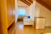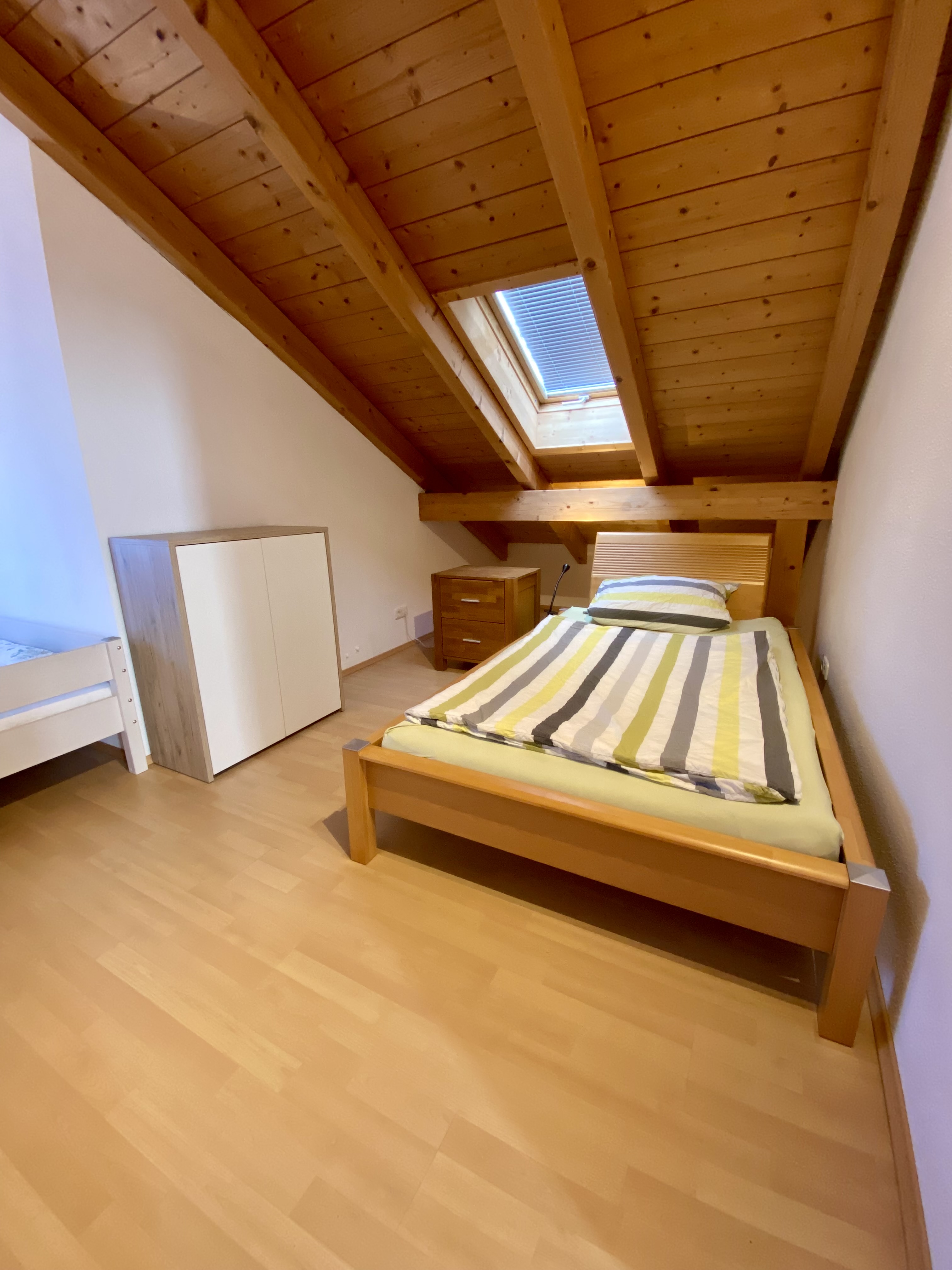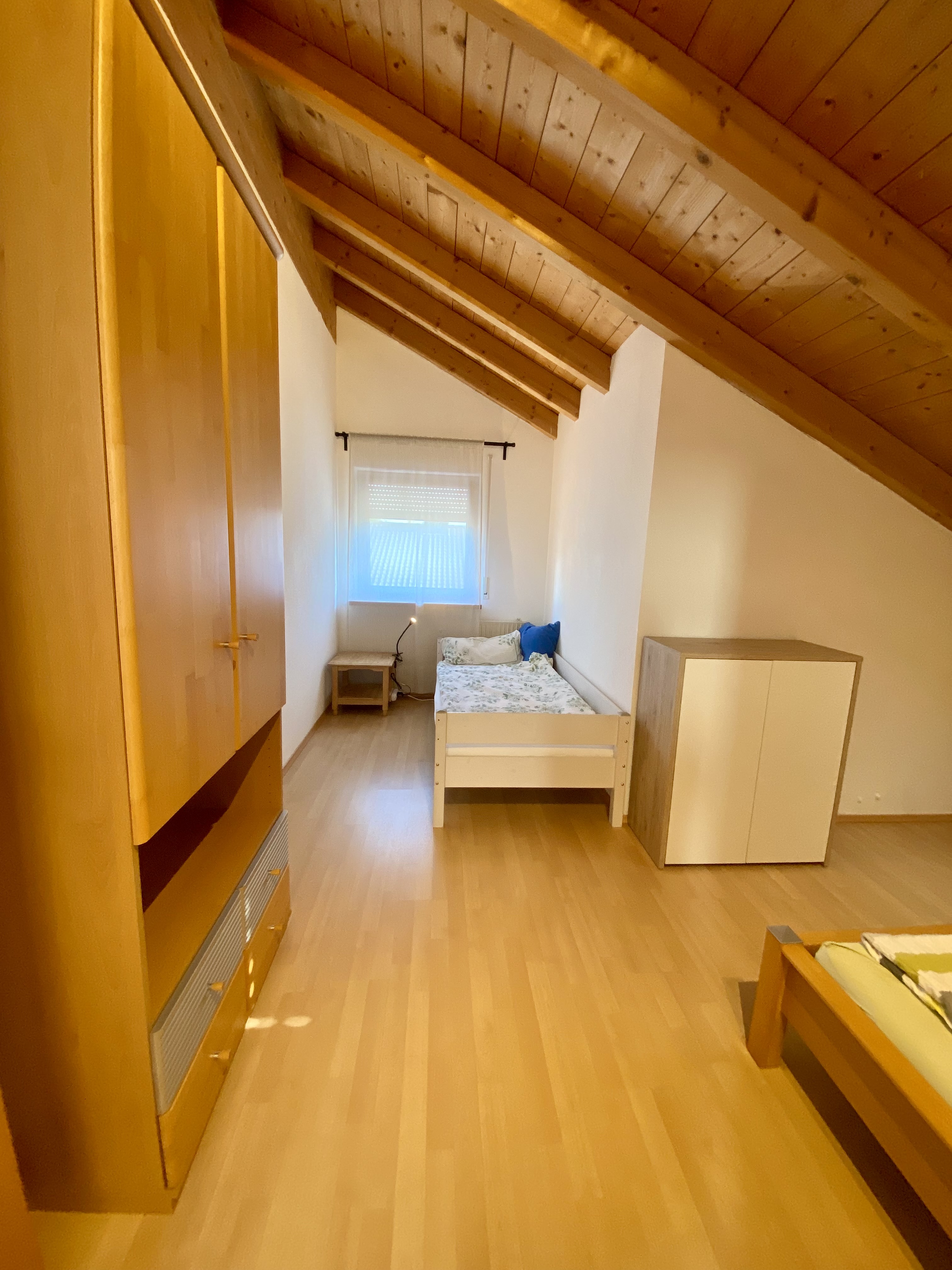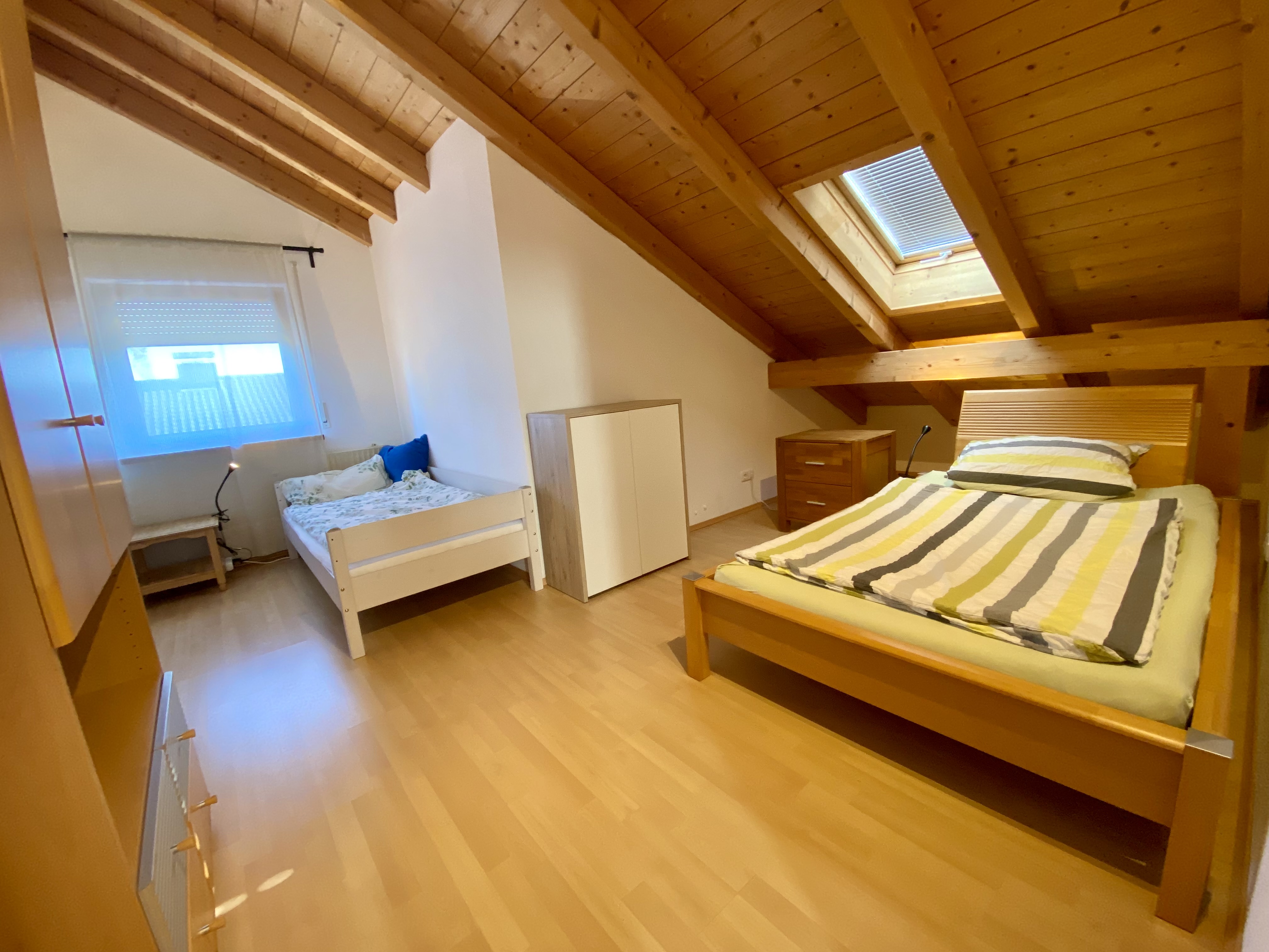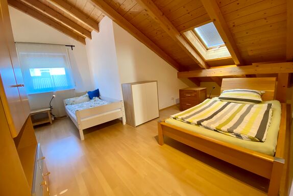 Das im Dachgeschoss gelegene Zweibettzimmer Bastl befindet sich in einer abgeschlossenen Wohnung, die sich über zwei Etagen erstreckt. Im 1. Obergeschoss finden Sie ein kleines Entree mit Garderobe, ein Gäste-WC, ein Badezimmer, eine Gemeinschaftsküche mit Sitzgelegenheit, ein Gemeinschaftswohnzimmer mit Esstisch sowie einen Balkon. Alle Räume verfügen über Fenster mit Ausnahme des Gäste-WCs (Belüftung).
