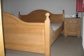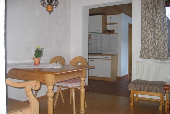 Die Ferienwohnung verfügt über zwei Schlafzimmer, eine Küche, ein Wohnzimmer mit gemütlicher Sitzecke (ausziehbares Schlafsofa) und zwei Badezimmer. Die Wohnung ist mit Massivholzmöbel im Tiroler Landhausstil ausgestattet und verfügt über einen Süd-Balkon.