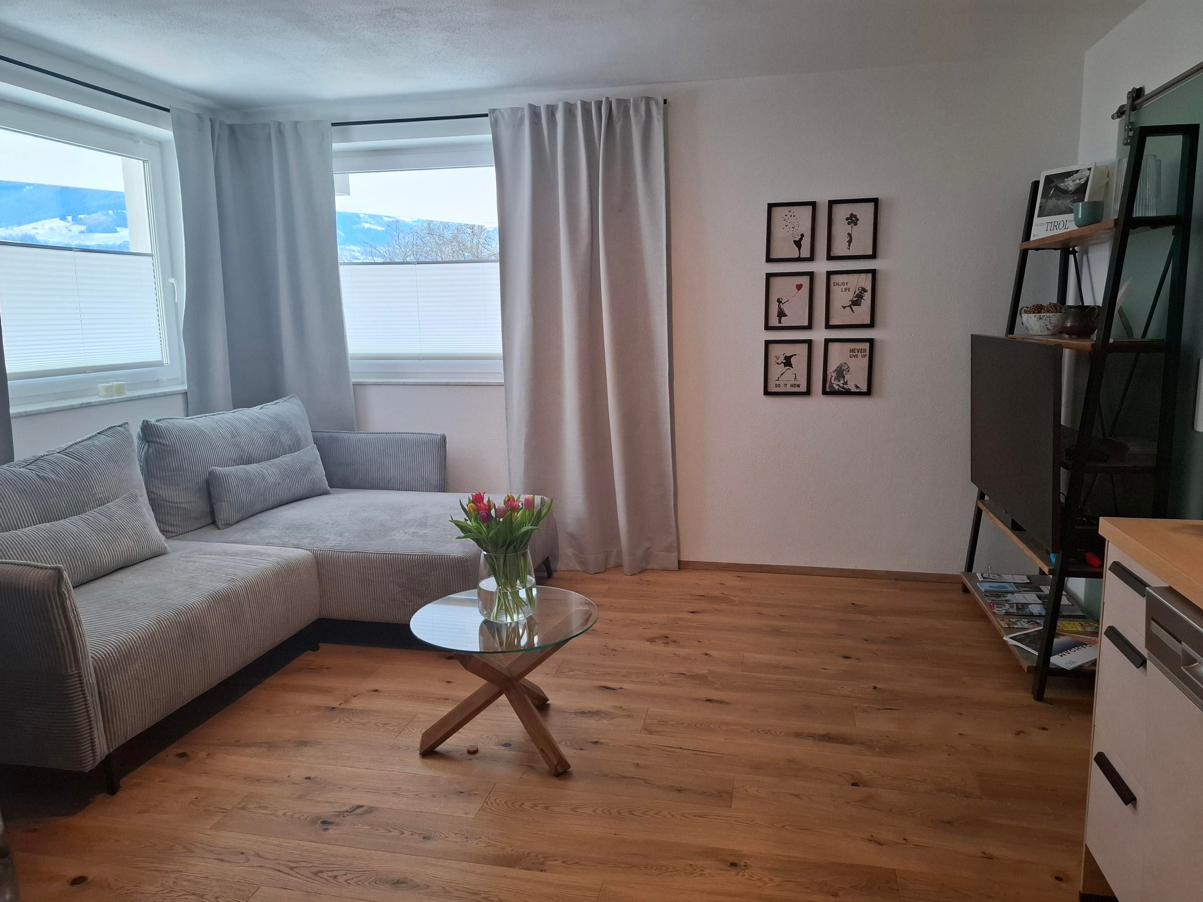 Die Unterkunft verfügt über ein gemütliches Schlafzimmer, einen Wohn- und Kochbereich mit einer vollausgestatteten Küche inkl. Geschirrspüler und Tabs sowie einem geräumigen freistehenden Kühlschrank mit Gefrierfach. Das Sofa kann zu einem Bett umfunktioniert werden und bietet somit einen angenehmen dritten Schlafplatz für ein Kind. Ein Flachbildfernseher inkl. Netflix, Nintendo Switch inkl. kindgerechten Spielen, sowie kostenloses, unlimitiertes high-speed WLAN sind vorhanden. Weiters gibt es eine Kaffemaschine inkl. Kaffeekapseln. Hand-/Bade-/Geschirrtücher und Bettwäsche sind natürlich inkludiert.