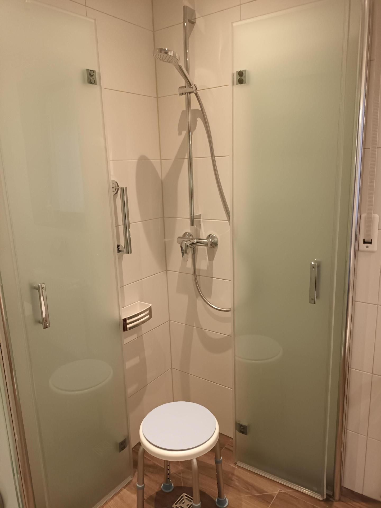 Die Fewo ist bis auf eine Stufe barrierefrei und hat eine ebenerdige Dusche.