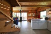 Parterre: kleiner Vorraum mit Schrank, Heizungsraum mit Waschmaschine und Tumbler, Eingangsbereich mit Garderobe, Dusche/WC und Vorratsräumchen. Grosszügige, helle Wohnstube mit toller Weitsicht, Steinboden, gemütlichem Tisch für 6 - 7 Personen, TV/Radio, Sofaecke, Schwedenofen und Ausgang zur südlich gelegenen grossen Terrasse. Offene, gut eingerichtete Wohnküche mit Theke und mit üblicher Ausrüstung, inkl. Geschirrspüler. Obergeschoss: 3 Doppelschlafzimmer mit Einzelbetten (eines davon ein Kajütenbett), 1 Einzelschlafzimmer sowie ein kleines WC.