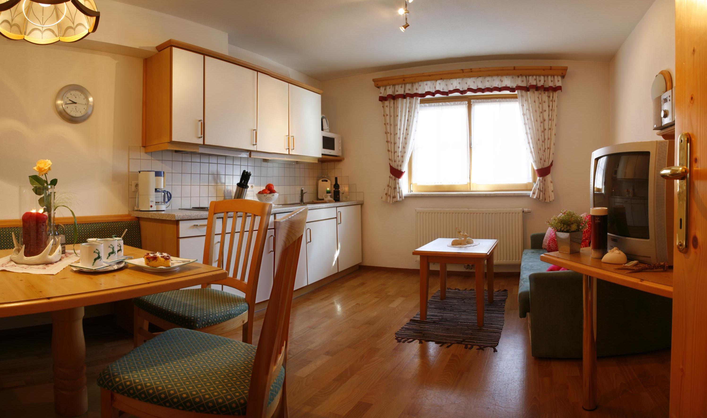 Unser 3-Raum-Appartement für 2-6Personen ist gemütlich und komfortabel ausgestattet. Neben einem Doppelschlafzimmer gibt es noch ein Schlafzimmer mit Hochbetten. Für 2 Personen steht in der Wohnküche eine ausziehbare Couch zur Verfügung. Die große Wohnküche ist sehr komfortabel ausgestattet (mit Geschirrspüler, Mikrowellenherd, Wasserkocher, Geschirr, Gläser ...), Dusche/WC getrennt, 2. WC, Vorraum, Größe der Wohnung: ca. 70 m