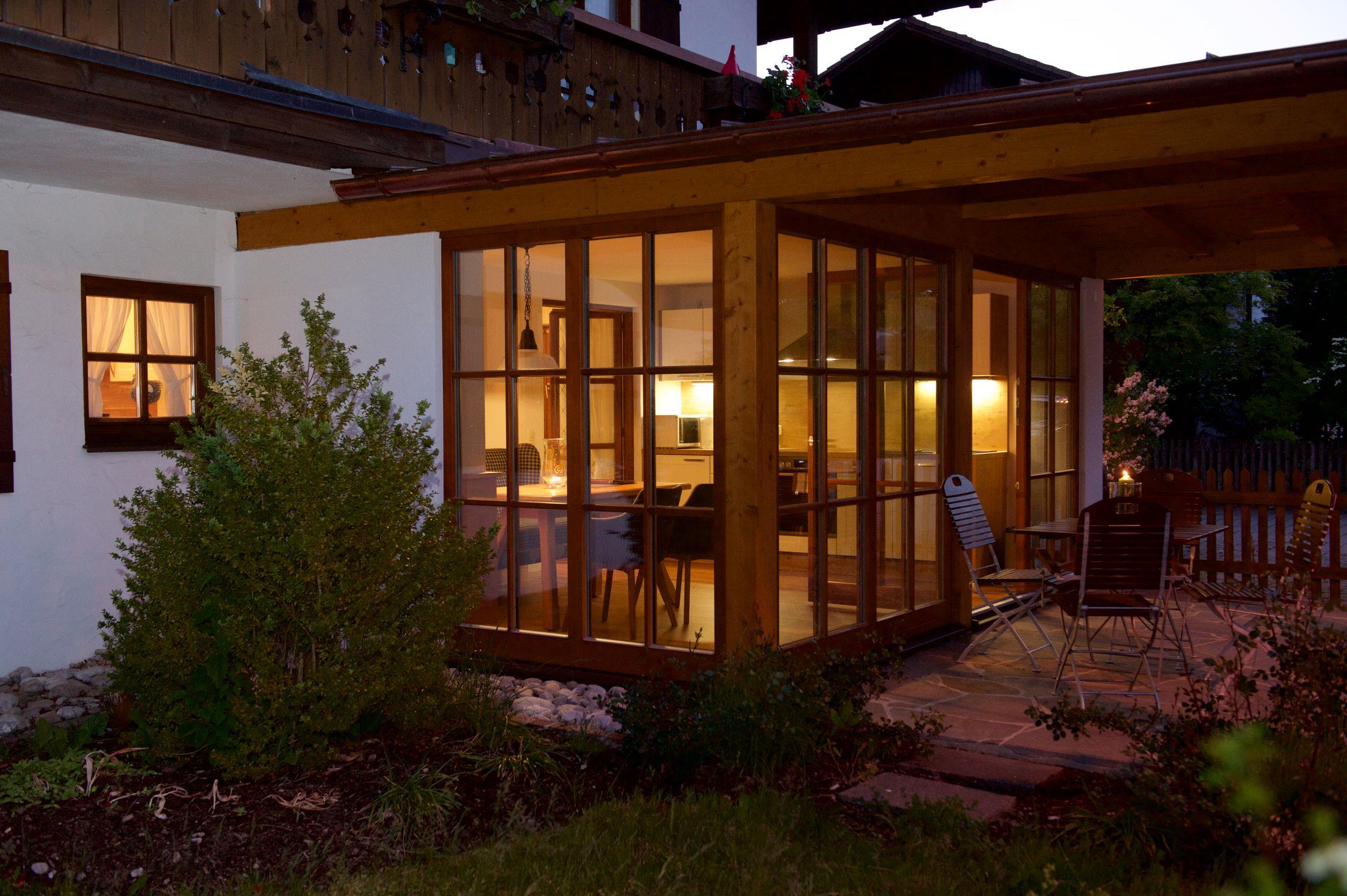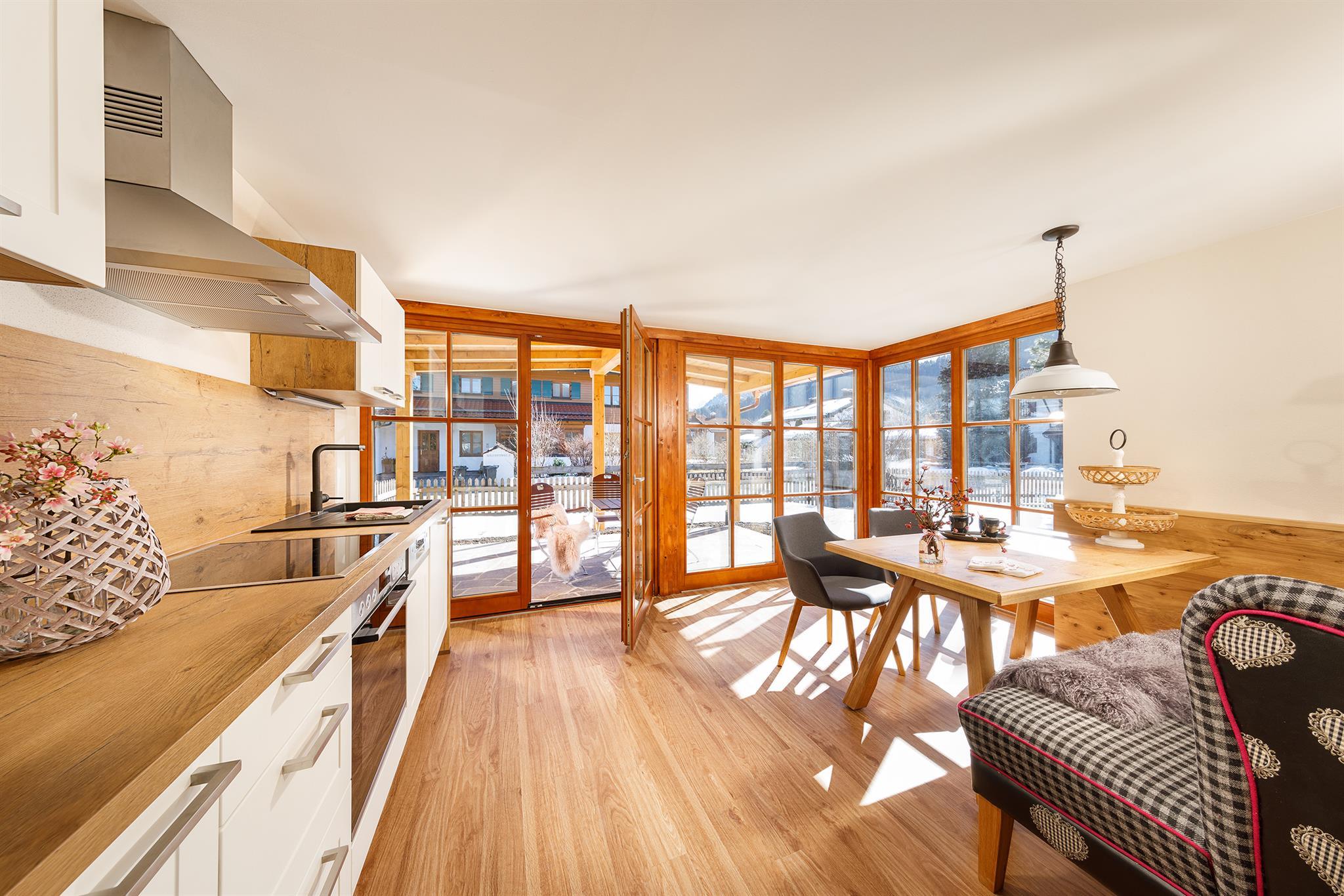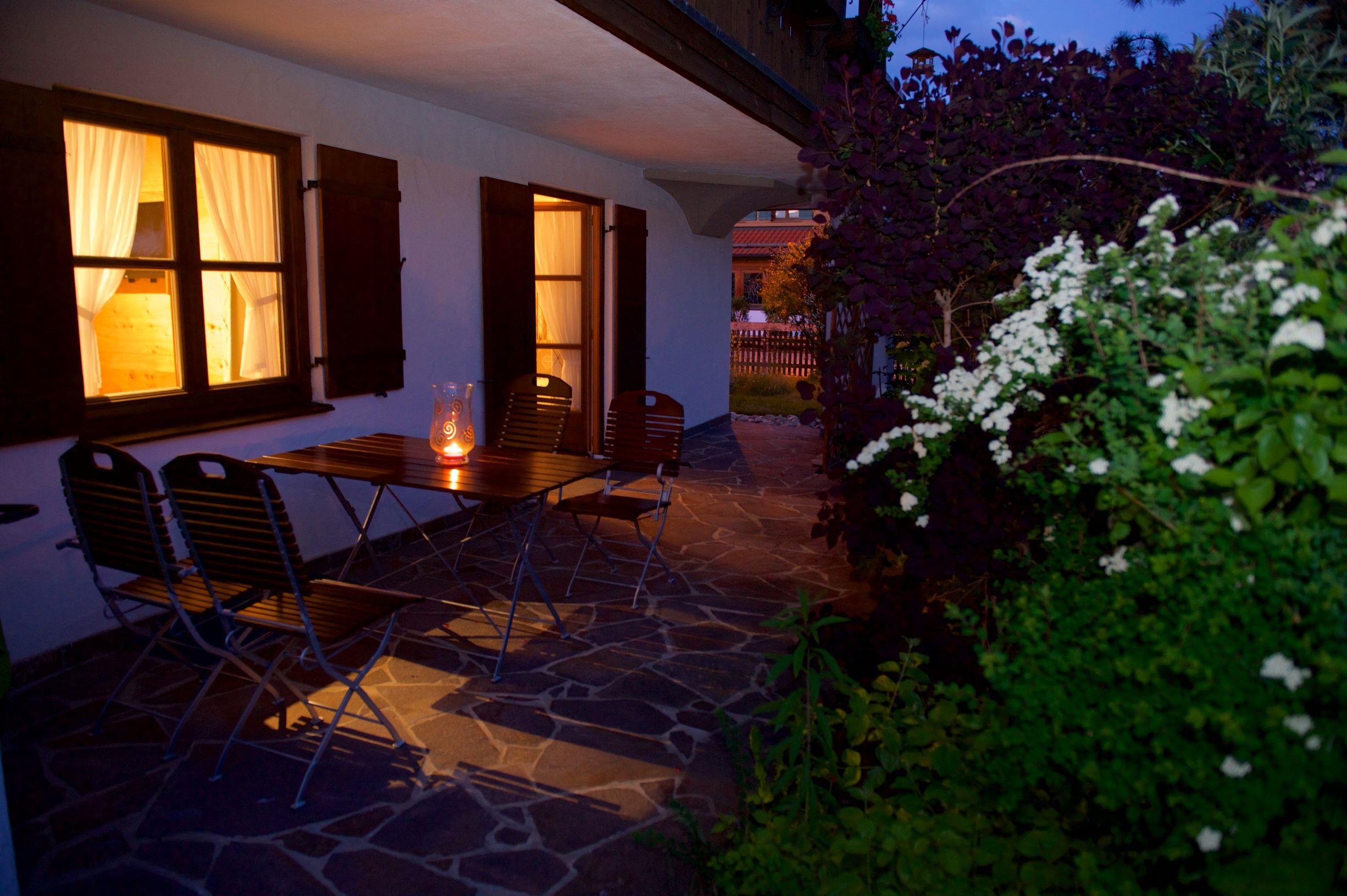 Das Zwei-Zimmer-Apartment König Ludwig befindet sich im Erdgeschoss mit überdachter Ostterrasse und Garten.