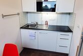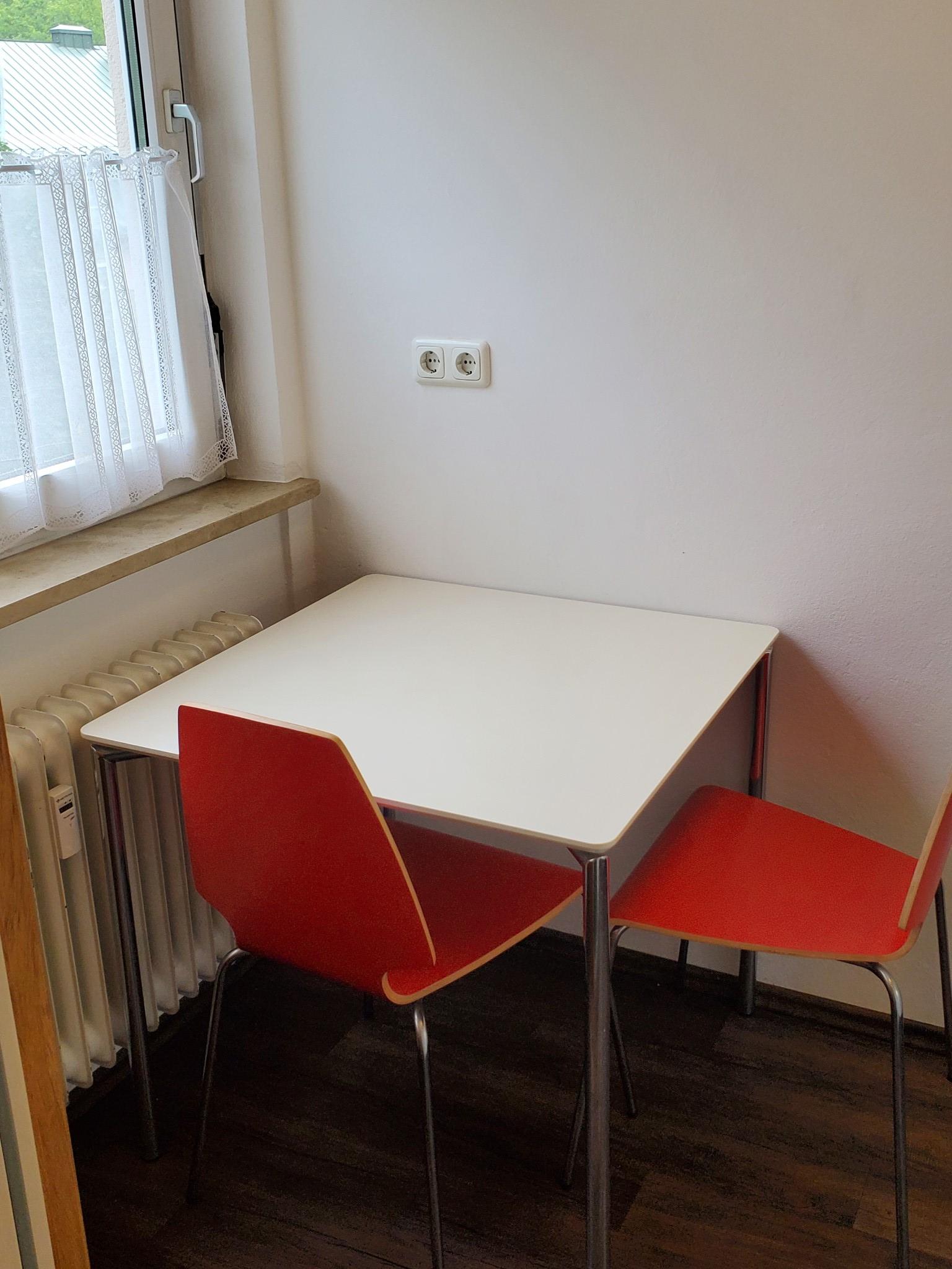 Das etwa 38 m² große Einzimmer-Apartment 301 bietet Platz für bis zu 2 Personen. Es befindet sich im 3. Stock nach Nordosten zum Parkplatz gelegen mit wunderschönem Blick auf den Staufen und Fuderheuberg sowie aufs Kirchholz und den Karlspark. Es ist mit zwei trennbaren Doppelbetten (100 x 200 cm), einem gemütlichen Sitzbereich mit Ohrensesseln und Tisch, einem großen Einbauschrank, einem Sideboard und einem Schreibtisch mit Flachbild-TV ausgestattet. Steckdosen sind in großer Zahl und gut erreichbar in Bettnähe und beim Schreibtisch vorhanden. Die Küche wurde im Jahr 2012 komplett neu eingebaut. Sie ist mit einem 2-fach-Kochfeld, Kühlschrank mit Gefrierfach, Mikrowelle, Wasserkocher, Kaffeemaschine sowie einer Grundausstattung an Töpfen, Geschirr, Besteck etc. ausgestattet. Das Bad verfügt über WC, Wanne, Lüfter und einen Haartrockner. Im Vorraum befindet sich eine Garderobe sowie ein Kofferbock.