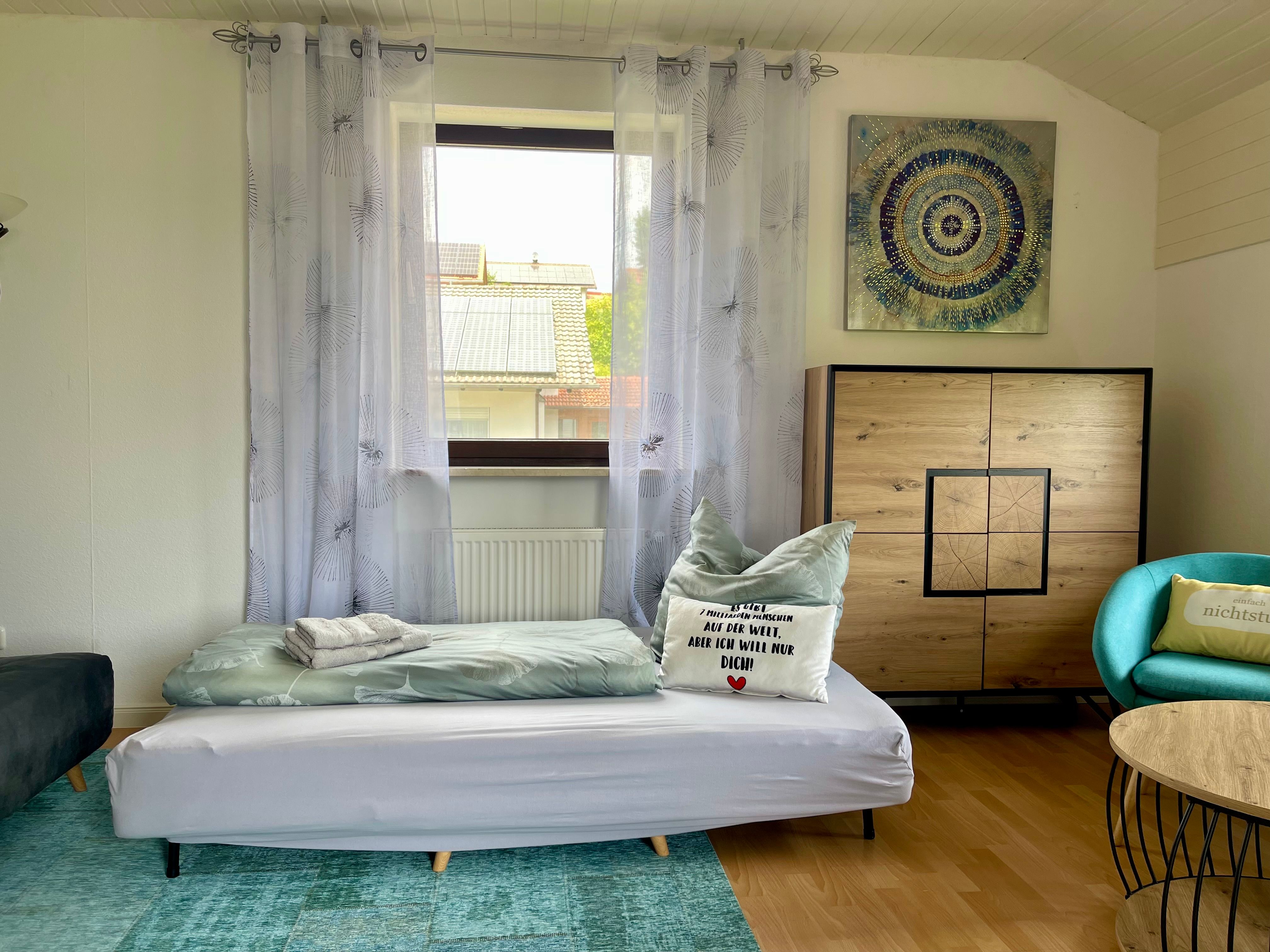 • ein gemütliches Wohnzimmer mit 2-3 Sofas, die bei Bedarf zu Schlafsofas werden