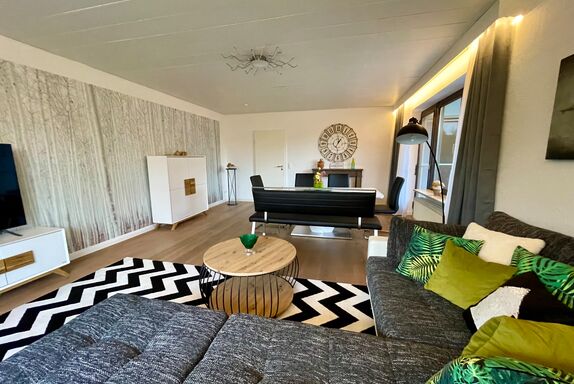 • ein gemütliches Wohnzimmer mit 2-3 Sofas, die bei Bedarf zu Schlafsofas werden