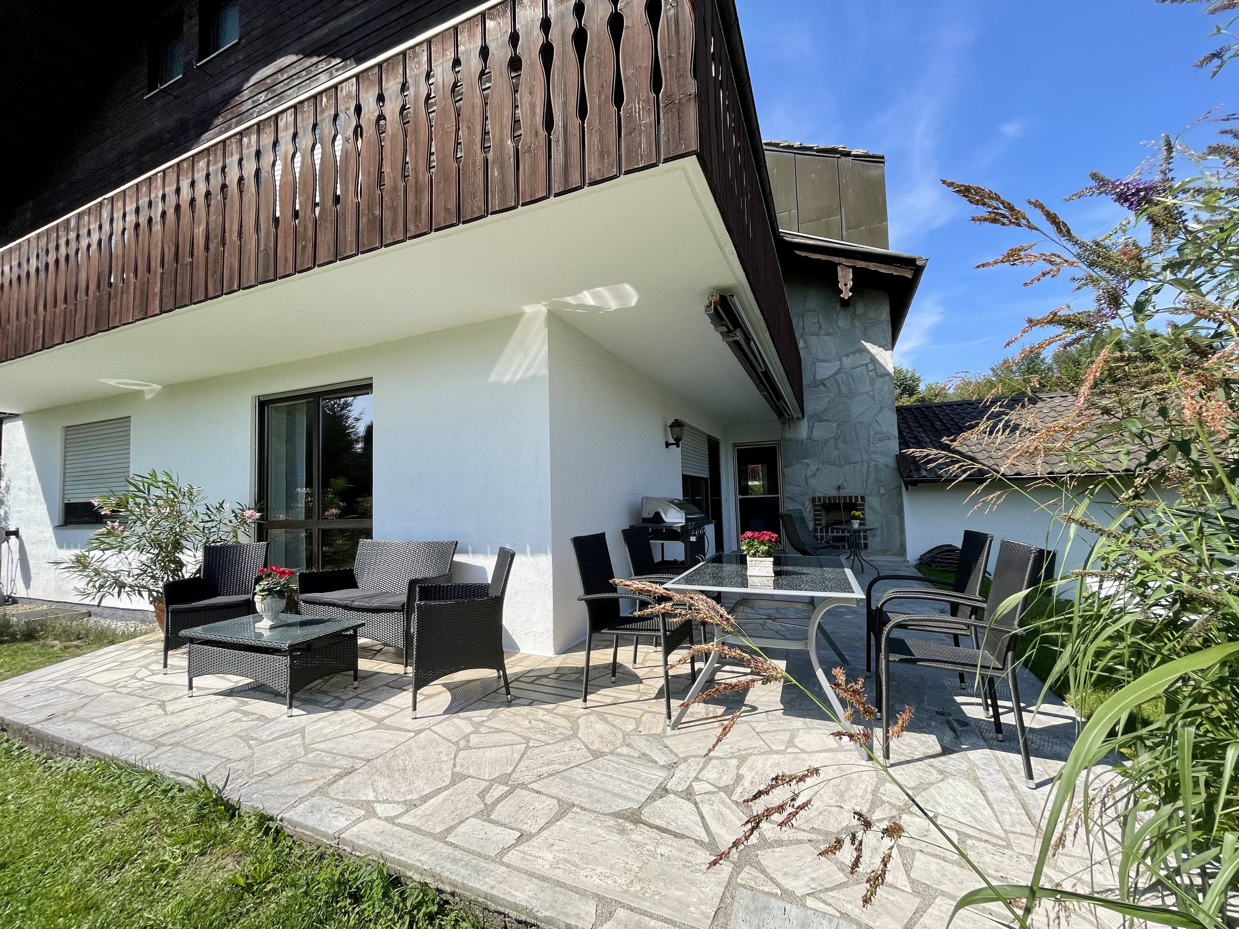 - einer großen, überdachten Terrasse auf der Ost- und Südseite mit Sitzmöbel