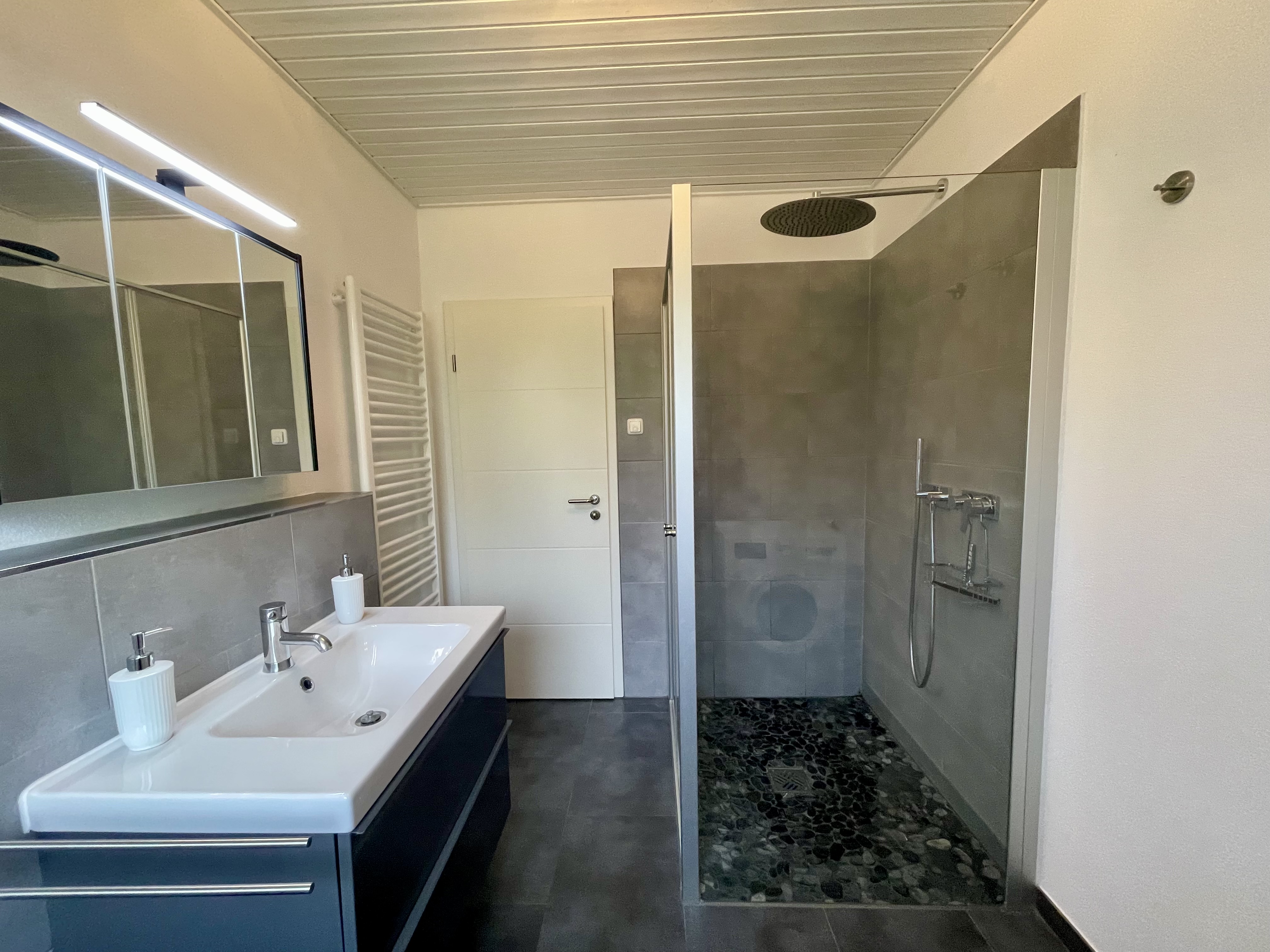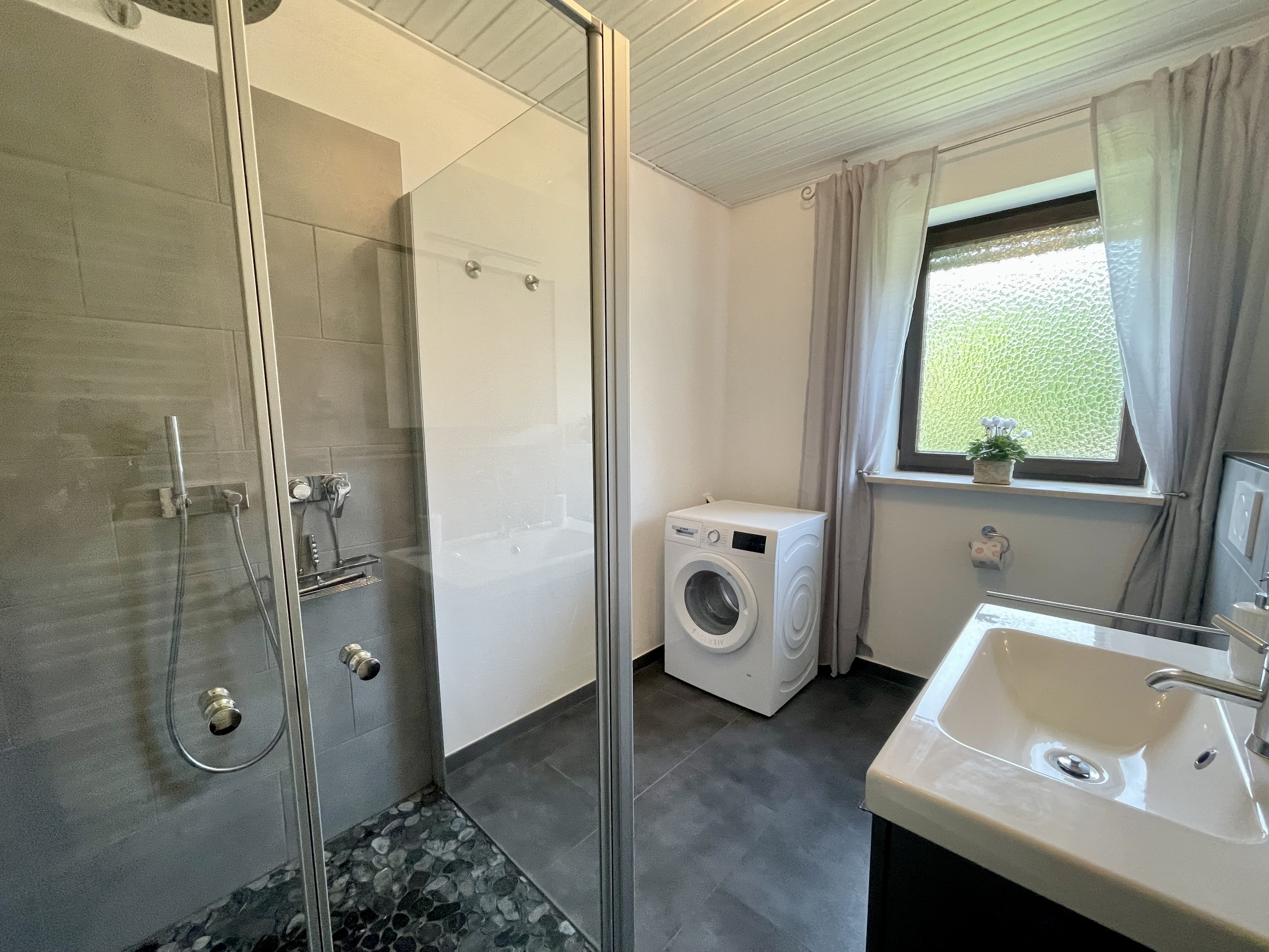 • ein helles Bad mit Dusche/Badewanne bzw. Dusche mit Waschmaschine