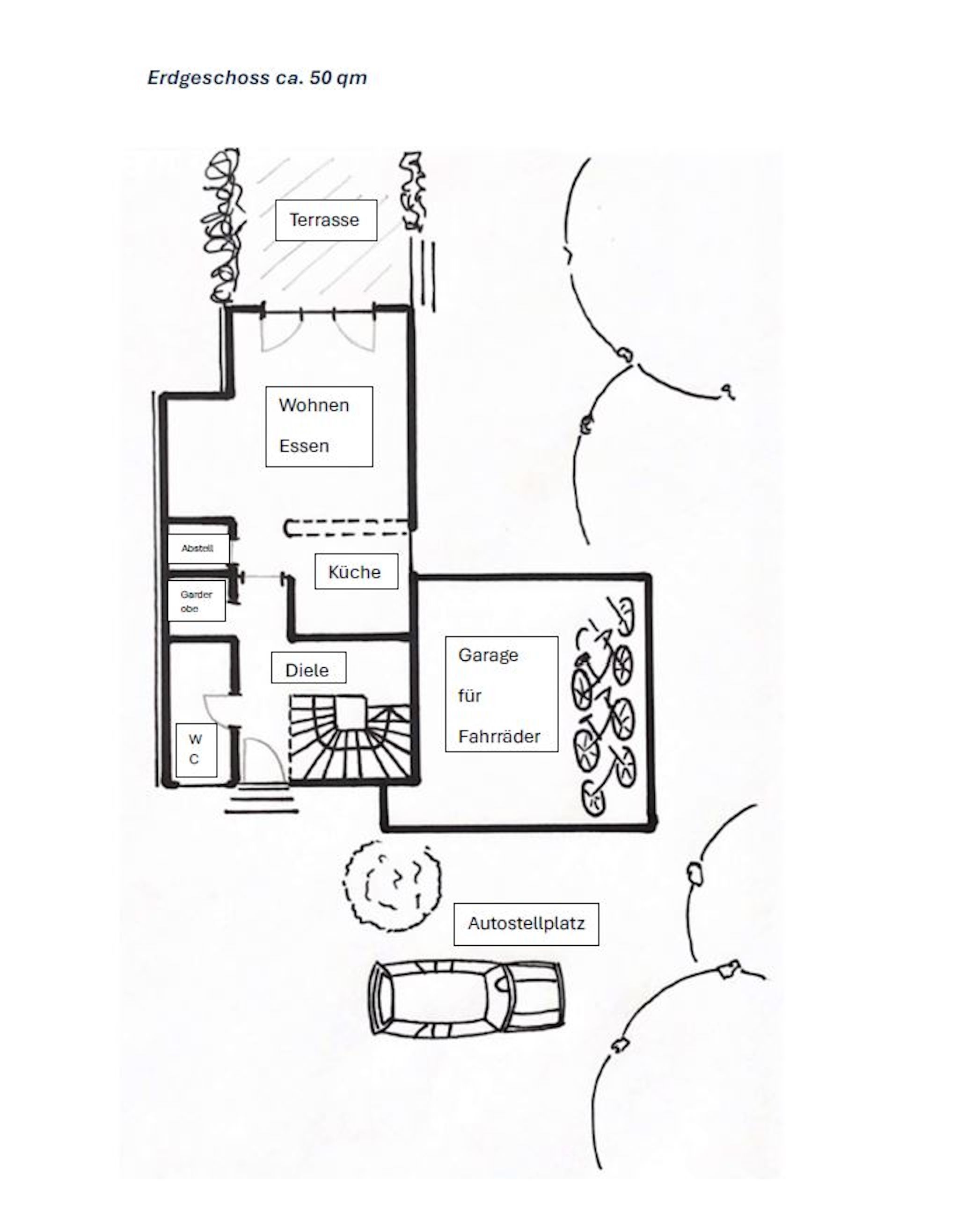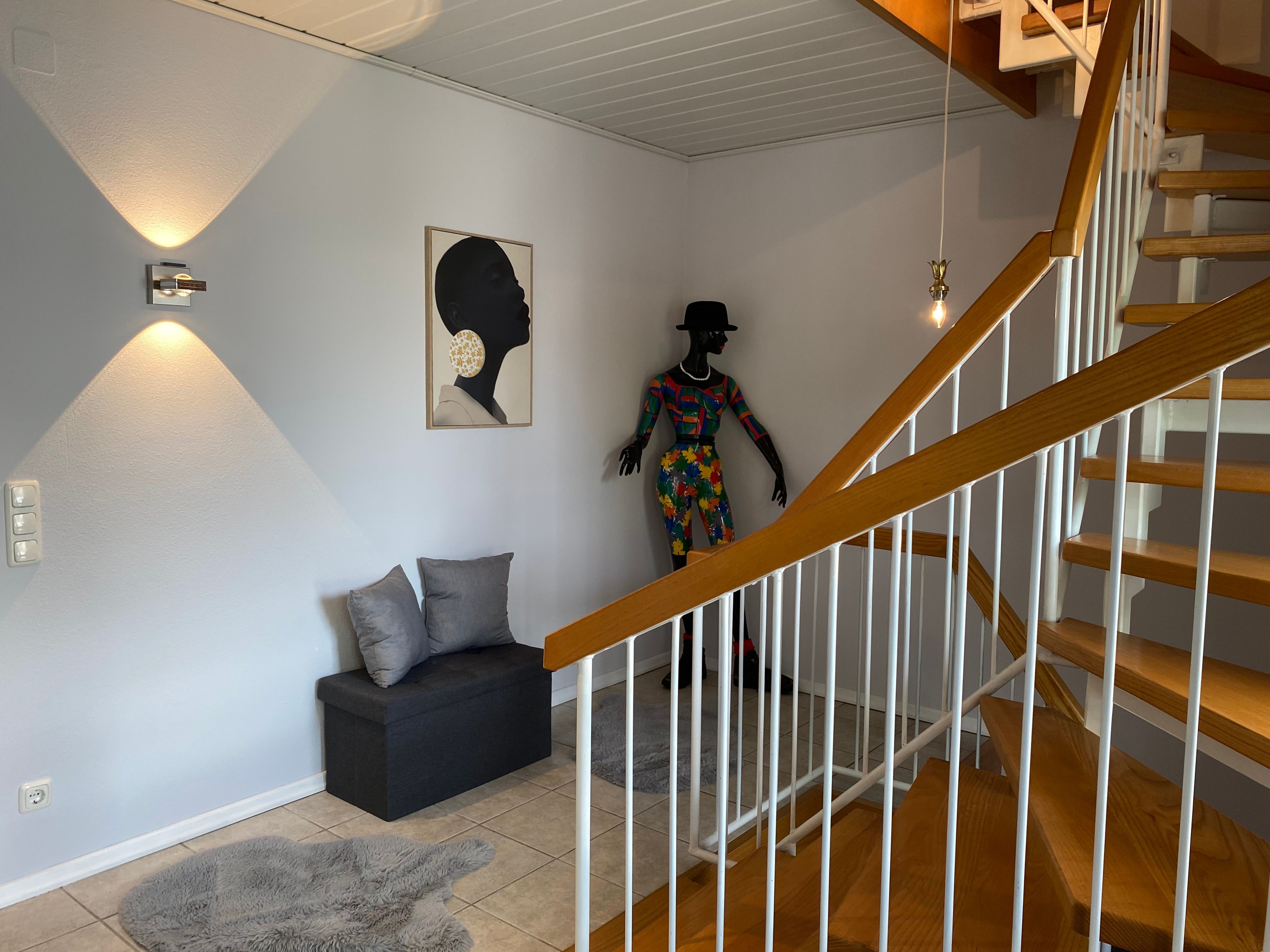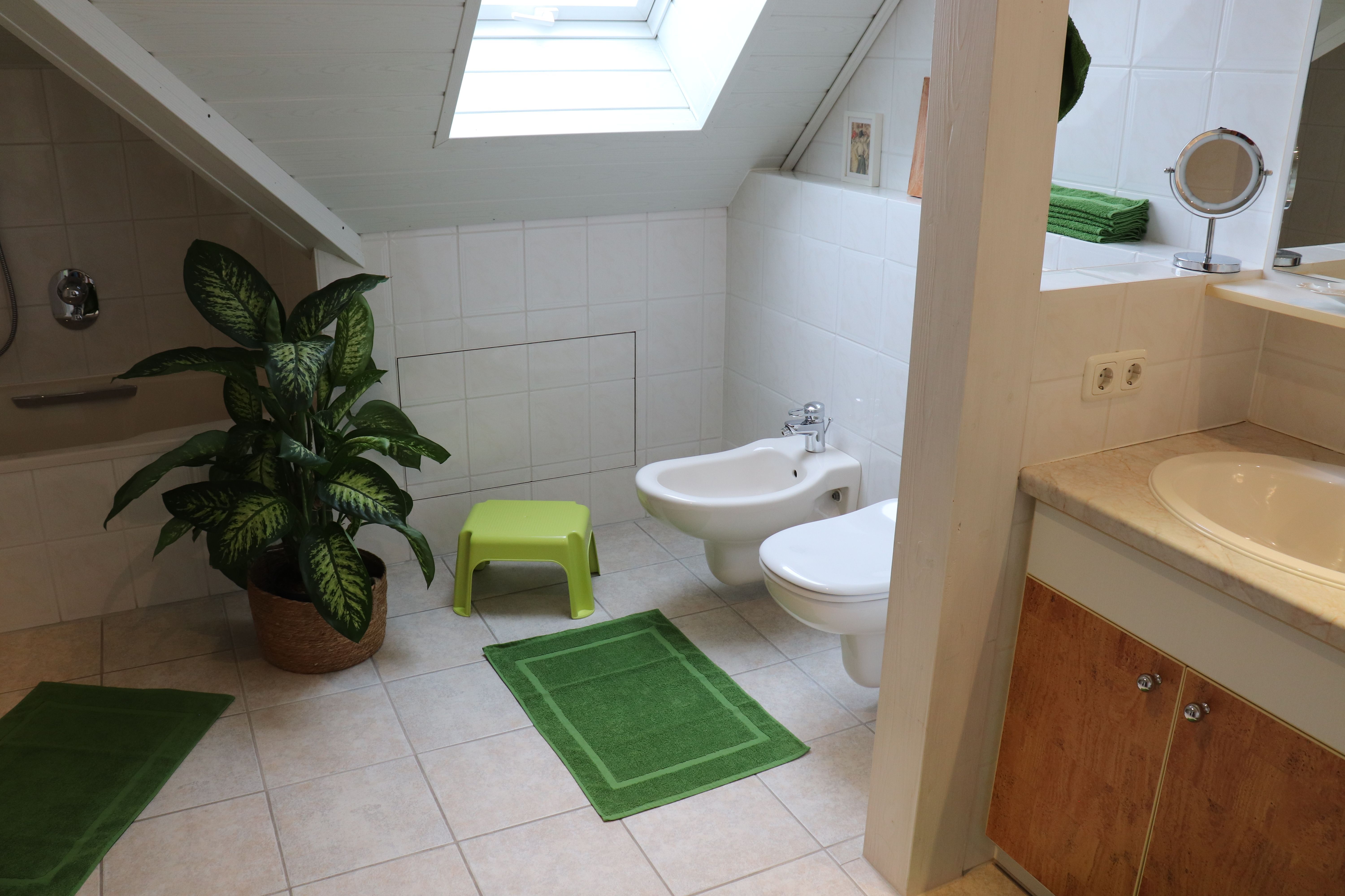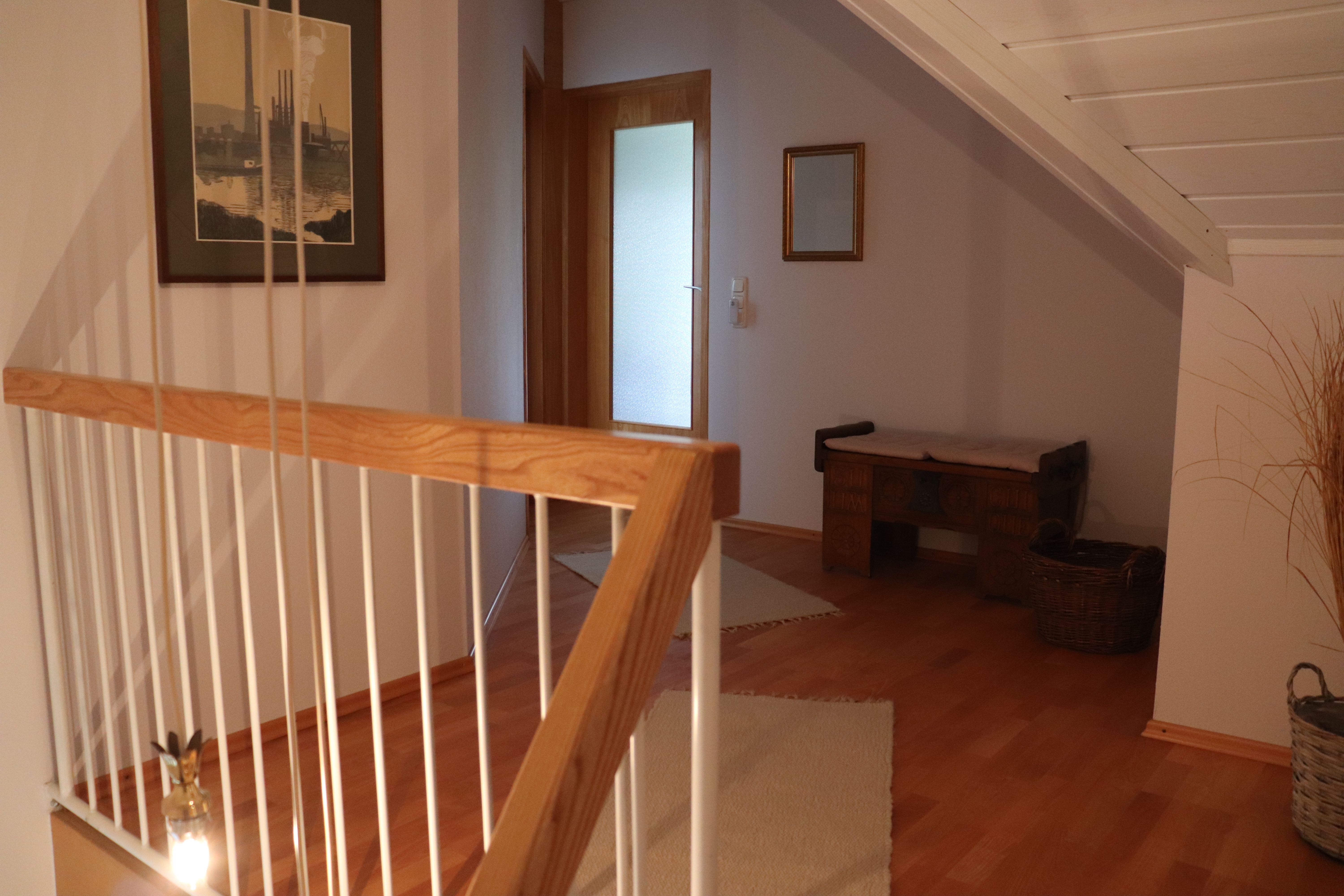 Im großzügigen Eingangsbereich befinden sich Garderobe mit Schuhschrank und ein Gäste WC. Das Auto kann direkt im Hof und Fahrräder in der Garage abgestellt werden. Freies WLAN steht zur Verfügung. Da die Ferienwohnung Allergiker geeignet ist, sind Hunde und andere Haustiere nicht gestattet.