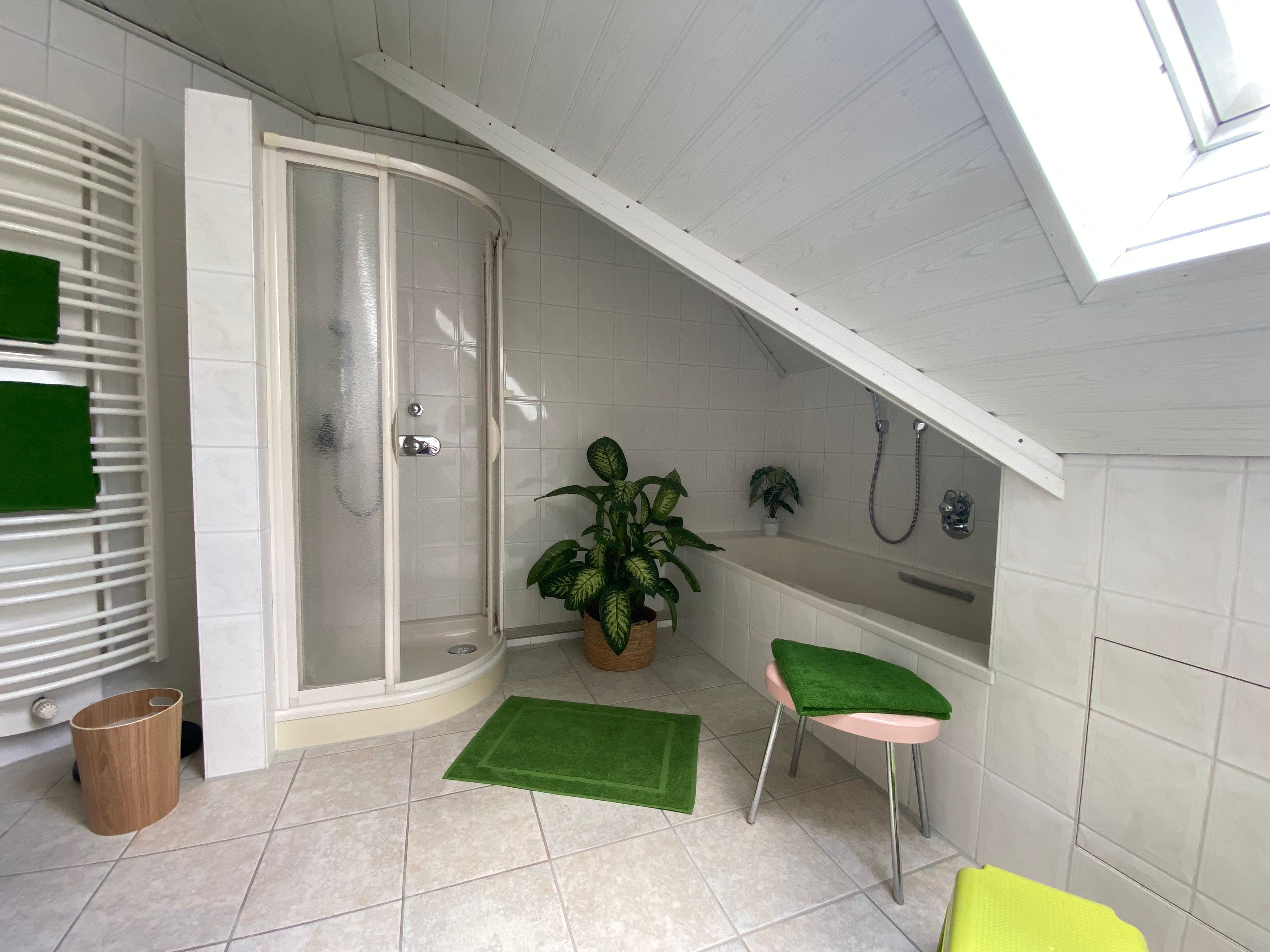 Die Wohnung erstreckt sich über zwei Etagen mit Blick ins Grüne.