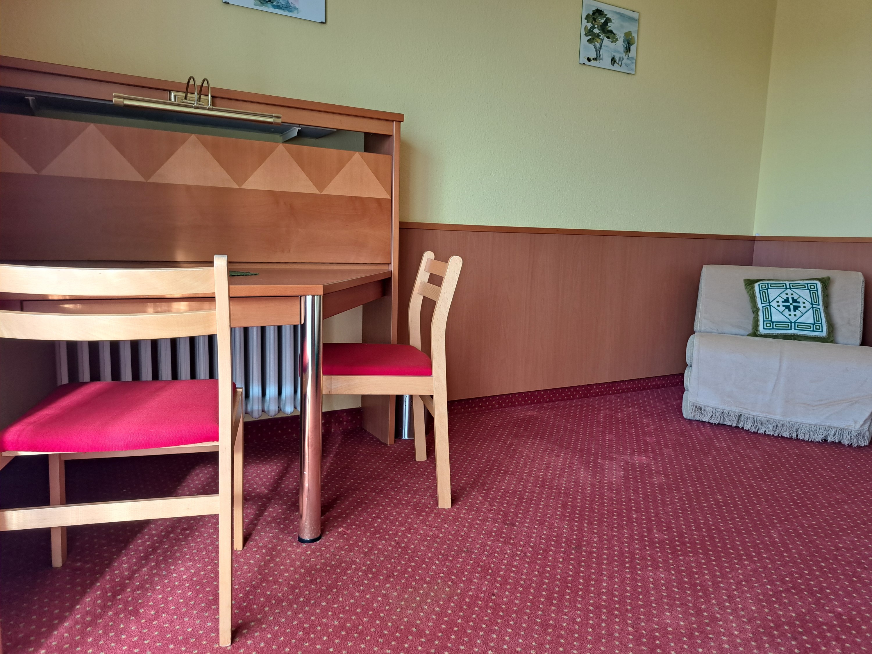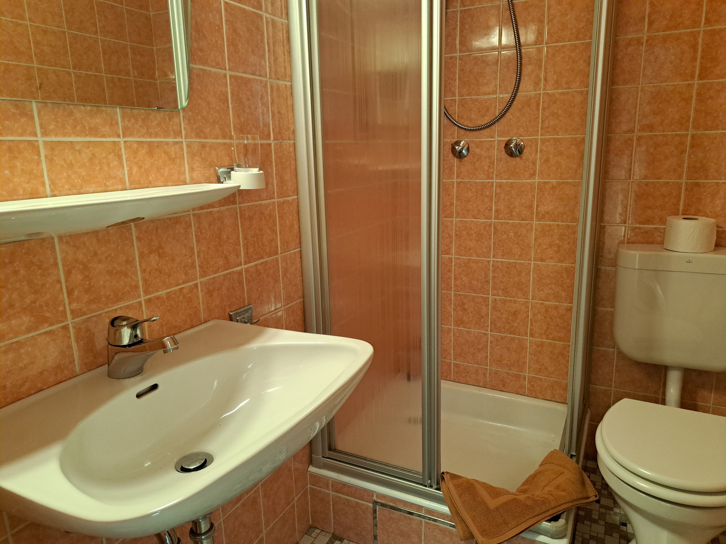 Unser Objekt ist eine ehemals familiengeführte Pension mit Einzelzimmervermietung. Es wurde über die Jahre immer wieder restauriert, saniert und verschönert. Geblieben sind teilweise Badkacheln im Maß von 15 x 15 und zwei Wasserhähne in der Duschkabine zum temperieren des Duschwassers. Wer damit umgehen kann sollte unbedingt weiterlesen.
