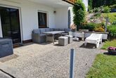 Im Außenbereich lädt eine Terrasse mit Holzkohlegrill zum entspannten Verweilen und Genießen der idyllischen Ruhe ein. Der Garten zur gemeinschaftlichen Nutzung bietet mit seiner großzügigen Liegewiese einen herrlichen Blick auf den Naturbadesee und garantiert erholsame Stunden in der Sonne.