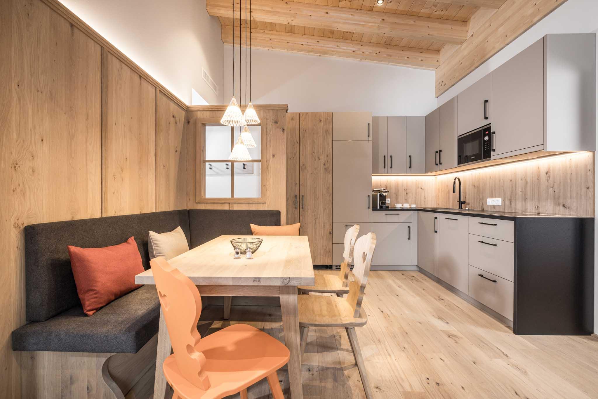 68 m², Master-Schlafzimmer mit Bad inklusive freistehender Badewanne und direktem Zugang zur Terrasse/Balkon mit bequemen Sitzgelegenheiten, weiteres King Size-Schlafzimmer, weiteres Bad mit separater Toilette, großzügiger Wohnraum mit Wohnküche, gemütlichem Essbereich und Wohnzimmer, komfortables Schlafsofa, The Flame™ Kaminfeuer für entspannte Stunden, Weinkühlschrank, Premium Vollausstattung mit hochwertiger Küche: Induktionsherd, Mikrowelle, Geschirrspüler, Kühl- und Gefrierschrank, Kaffeemaschine, Wasserkocher, weitere Geräte, Essbereich „Tiroler Eck“ zum gemütlichen Zusammensitzen, Flat-Screen TV in jedem Zimmer, High-Speed Internetverbindung, En-Suite Badezimmer mit Dusche und WC, Stellplätze in der Tiefgarage mit E-Ladestationen (First come, first serve)