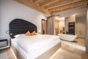 70 m², Master-Schlafzimmer mit Bad inklusive freistehender Badewanne und direktem Zugang zur Terrasse/Balkon mit bequemen Sitzgelegenheiten und Panoramaaussicht, weiteres King Size-Schlafzimmer, weiteres Bad mit separater Toilette, großzügiger Wohnraum mit Wohnküche, gemütlichem Essbereich und Wohnzimmer, komfortables Schlafsofa, The Flame™ Kaminfeuer für entspannte Stunden, Weinkühlschrank, Premium Vollausstattung mit hochwertiger Küche: Induktionsherd, Mikrowelle, Geschirrspüler, Kühl- und Gefrierschrank, Kaffeemaschine, Wasserkocher, weitere Geräte, Essbereich „Tiroler Eck“ zum gemütlichen Zusammensitzen, Flat-Screen TV in jedem Zimmer, High-Speed Internetverbindung, En-Suite Badezimmer mit Dusche und WC, Stellplätze in der Tiefgarage mit E-Ladestationen (First come, first serve)