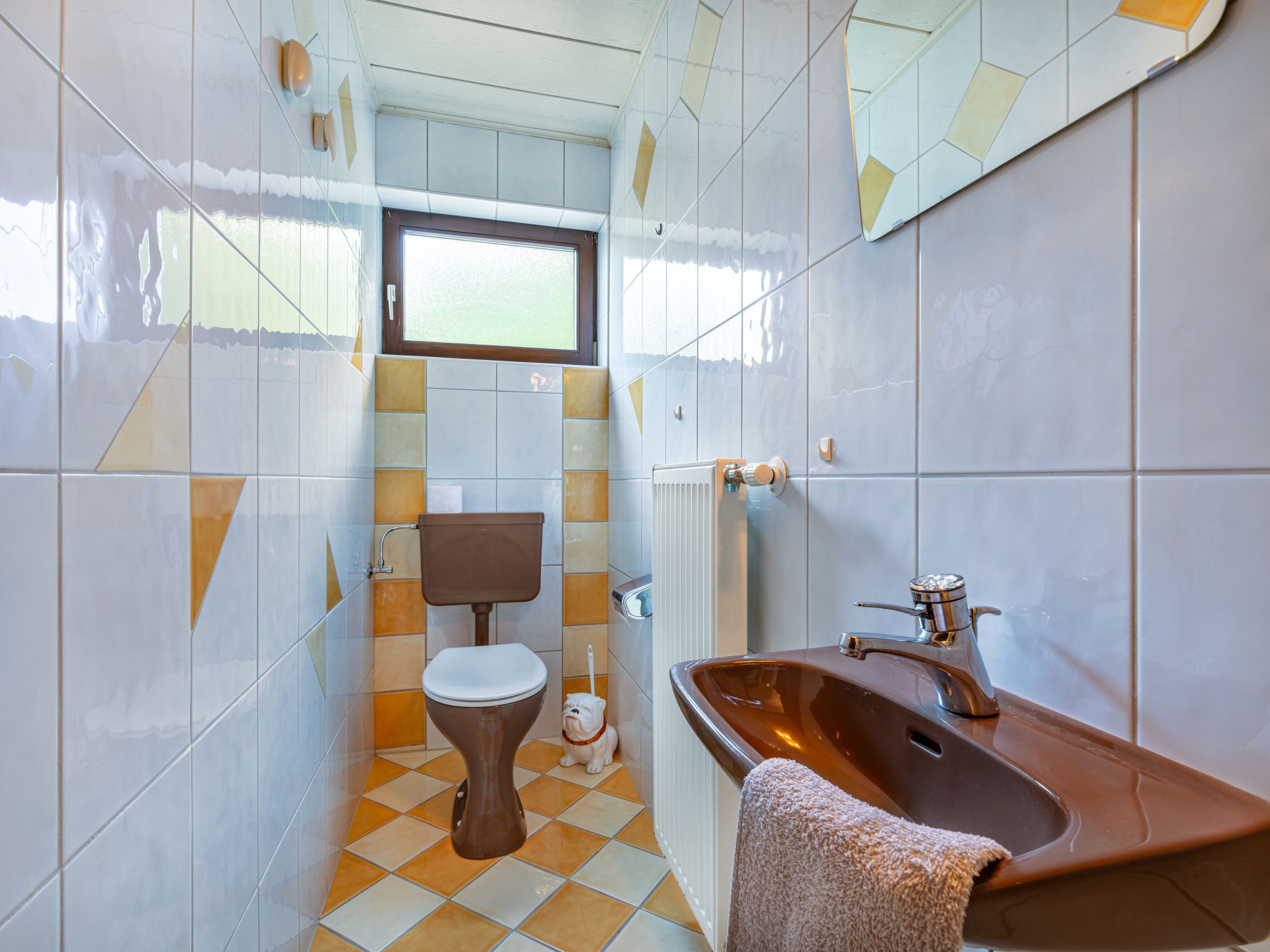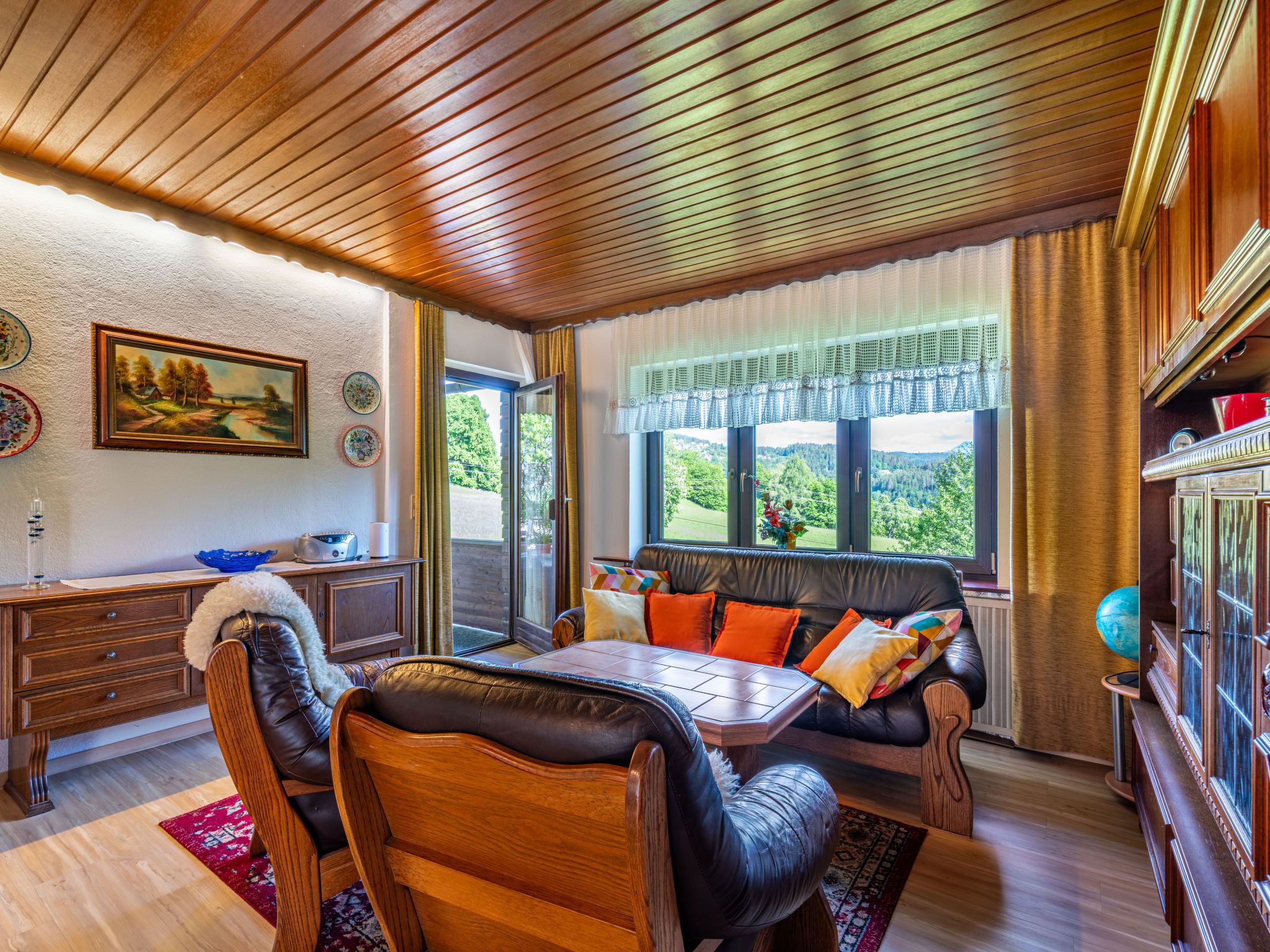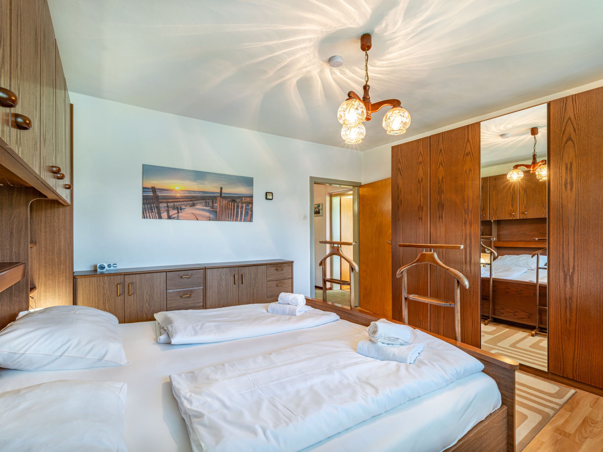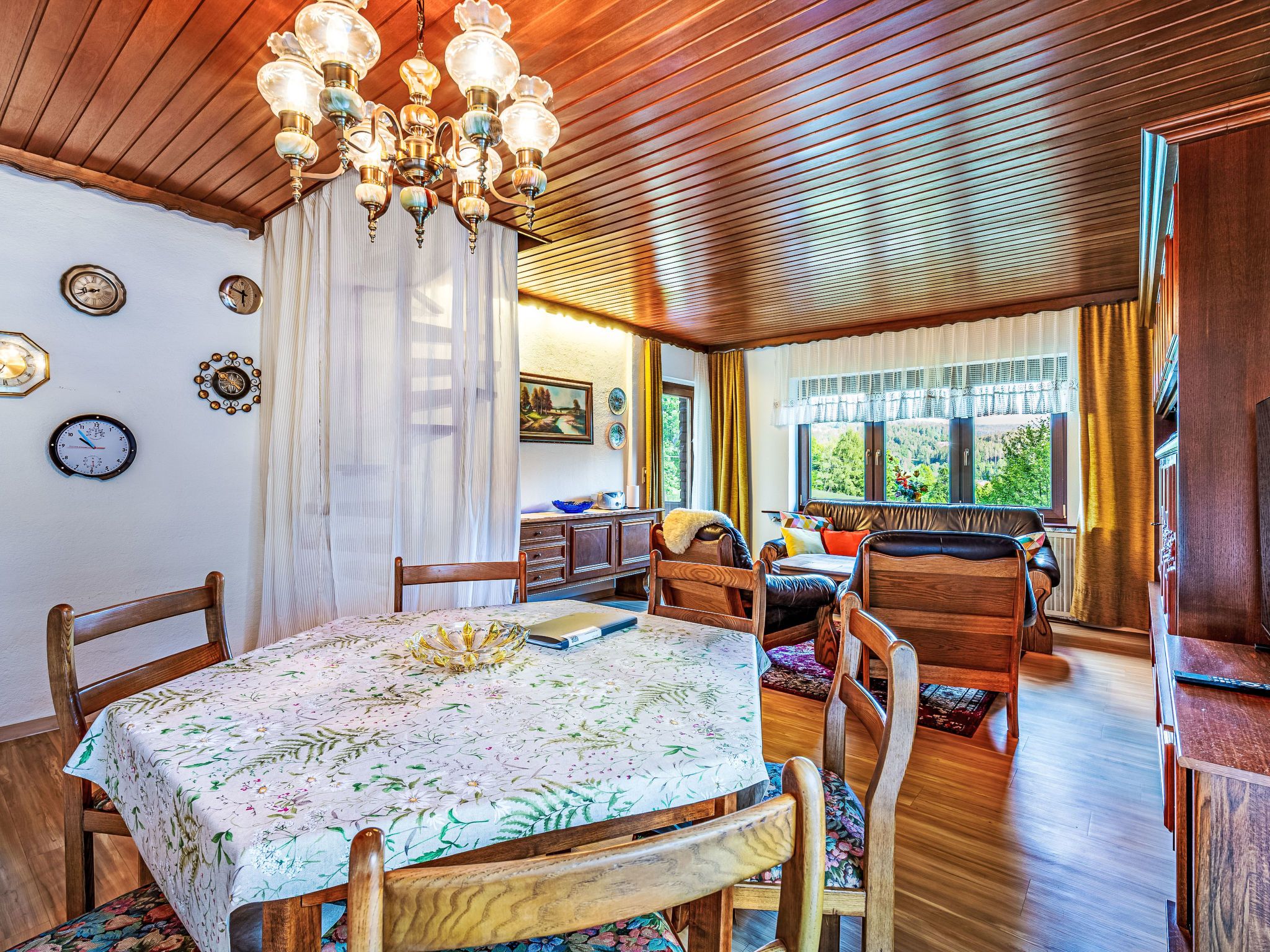 Zeitlos, 5-Zimmer-Haus 112 m2 auf 2 Stockwerken. Objekt geeignet für 8 Erwachsene + 1 Kind. Zweckmässig und gemütlich eingerichtet: Eingang. 1 grosses Doppelzimmer 16 m2 mit Vorhang mit Dusche/WC. Ausgang zum Balkon. 1 grosses Doppelzimmer mit Vorhang mit Dusche/WC. 1 abgeschrägtes Zimmer mit Vorhang mit 2 Betten (90 cm, Länge 200 cm), Waschbecken und Radio. Grosses Wohn-/Esszimmer mit Veranda mit Sat-TV, Flachbildschirm, Radio und CD. Ausgang zum Balkon, zur Terrasse. Kleine, offene Küche 7 m2 (Backofen, Geschirrspüler, 4 Glaskeramikplatten, Wasserkocher, Mikrowelle, Tiefkühler, elektrische Kaffeemaschine) mit kleinem Esstisch, Durchreiche. Bad, Bidet, sep. WC, Doppelwaschbecken. Ölheizung. Unteres Geschoss: (Aussentreppe) 1 Zimmer mit 1 Diwanbett (200 cm, Länge 90 cm), 1 Doppelbett, Bad/WC, Waschbecken, Sat-TV und Flachbildschirm. Ausgang zur Terrasse. Schöne Panoramasicht. Zur Verfügung: Waschmaschine, Kinderhochstuhl, Babybett. Internet (WLAN, gratis). Bitte beachten: Nichtraucher-Haus. Maximal 1 Haustier/Hund erlaubt.