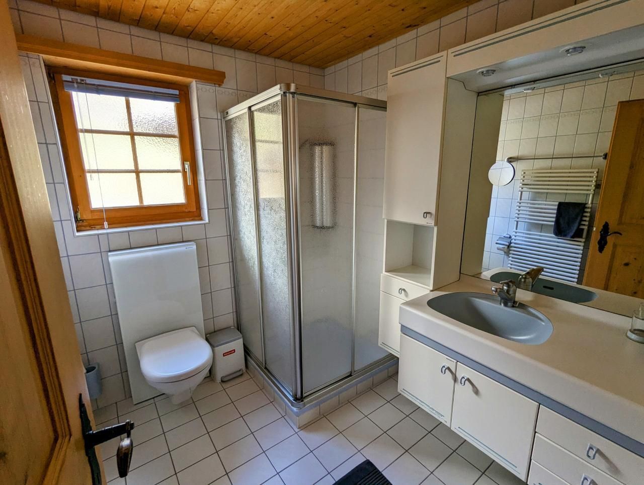 - Badezimmer mit Dusche, WC und Fenster - Separates WC mit Lavabo und Fenster im 1. OG