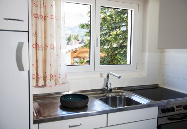 Die voll ausgestattete Küche lädt dazu ein, gemeinsam zu kochen und den Tag entspannt ausklingen zu lassen. Vom großen Balkon aus geniessen Sie eine atemberaubende Aussicht auf die verschneite Bergwelt, während Sie den Moment einfach nur auf sich wirken lassen.