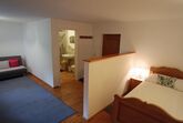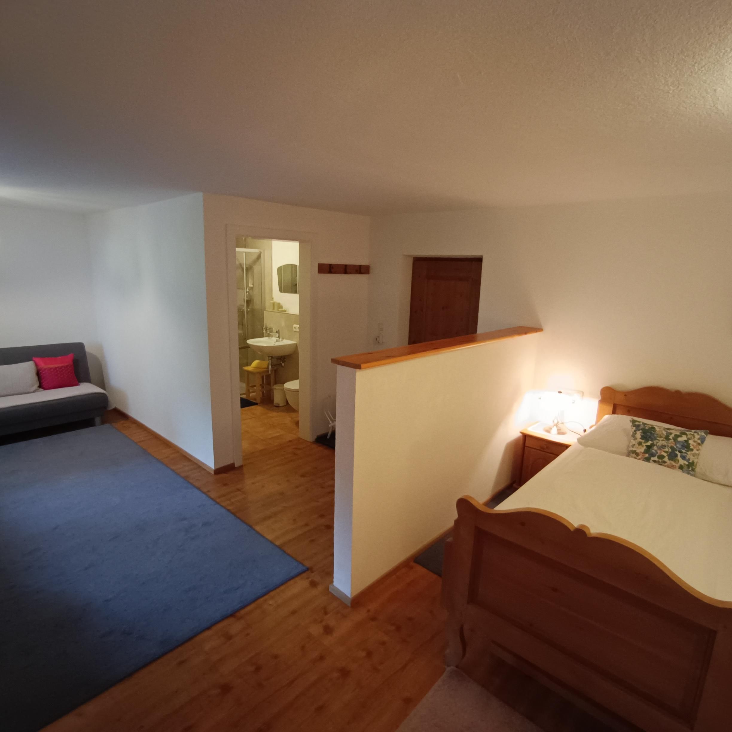 Doppelzimmer mit einem Doppelbett und einem Schlafsofa für 1weitere Person, einem Badezimmer mit Dusche/WC und TV. Größe: ca. 30 m² OHNE FRÜHSTÜCK. Die Bäckerei ist fünf Gehminuten enfernt.