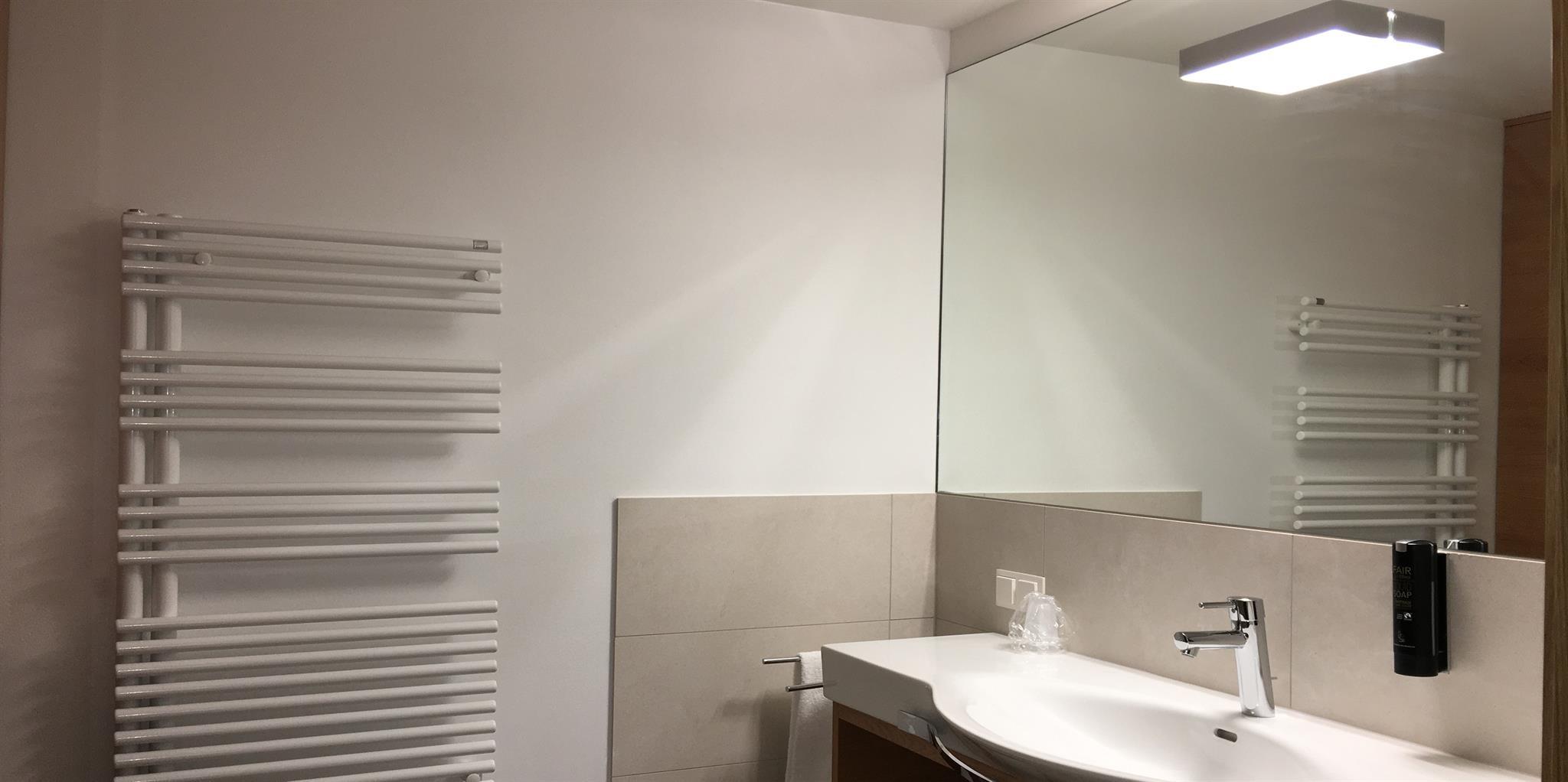 Die verfliesten Bäder verfügen zusätzlich über einen Heizkörper zur Trocknung der Handtücher und Textilien.