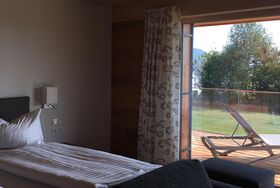 Die überdachten Balkone sind mit Nurglasgeländern ausgestattet, damit der Blick auf den Faaker See möglichst frei bleibt.
