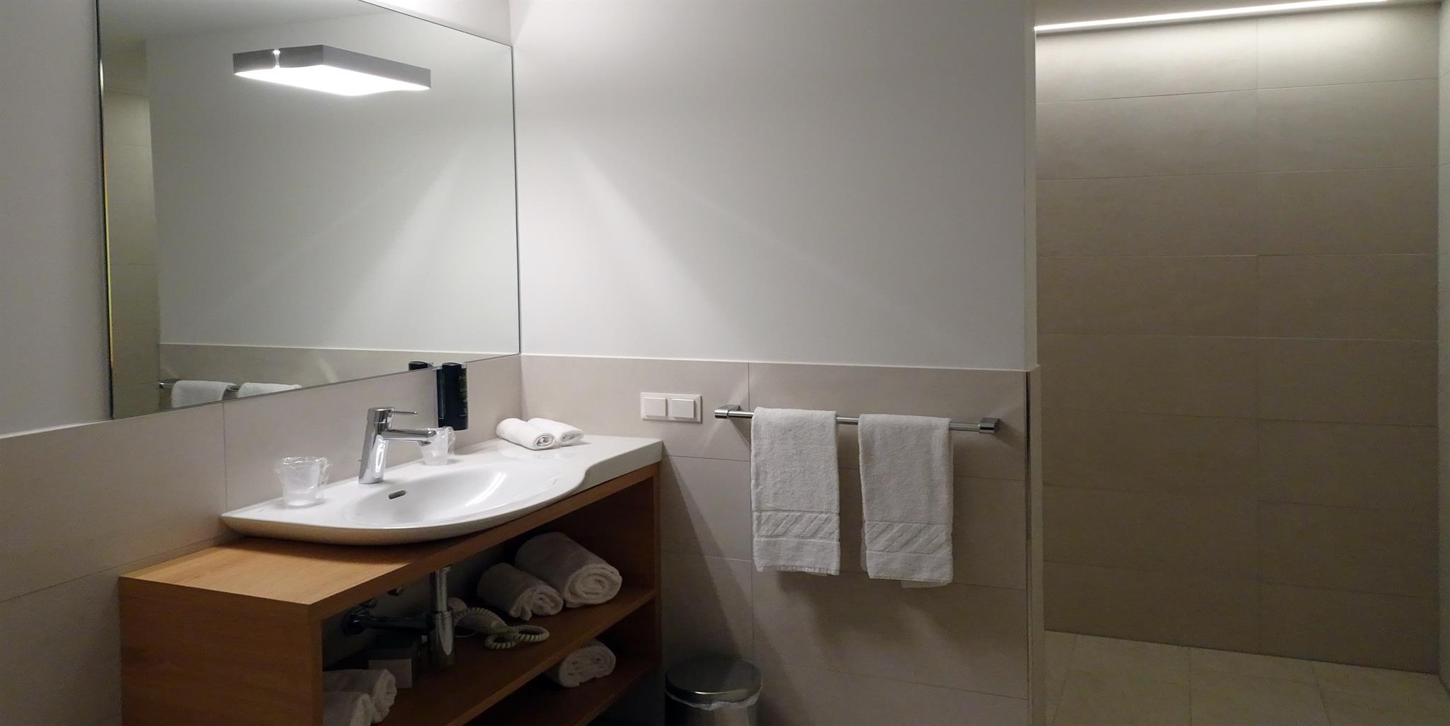 Die verfliesten Bäder verfügen zusätzlich über einen Heizkörper zur Trocknung der Handtücher und Textilien.