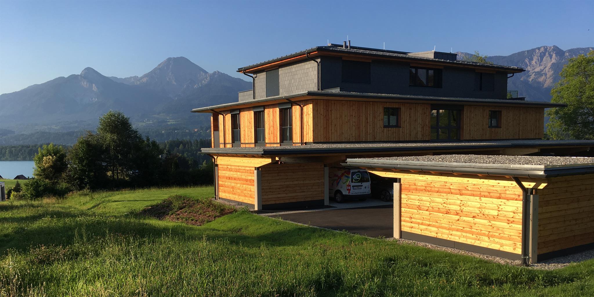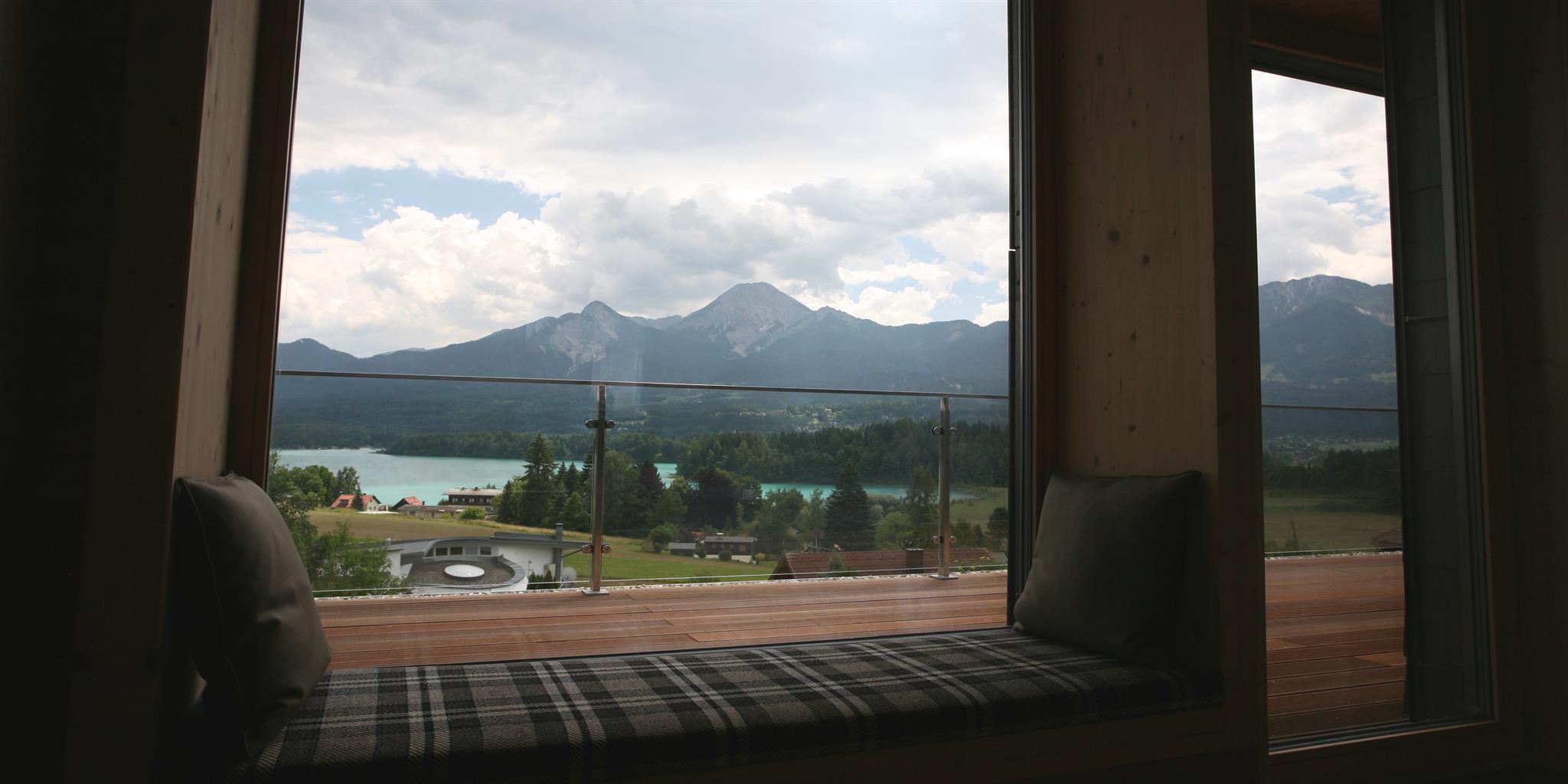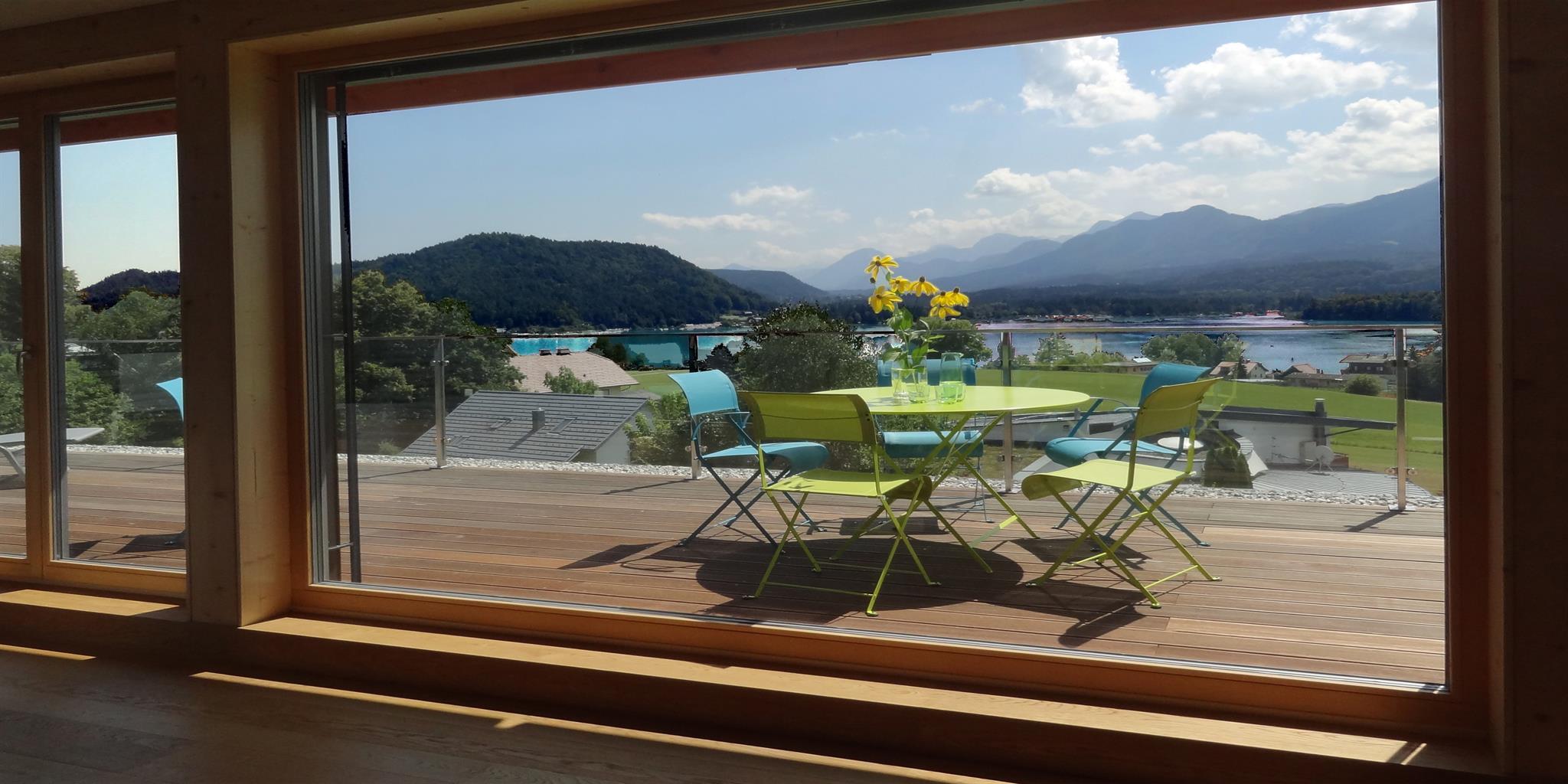 Die überdachten Balkone sind mit Nurglasgeländern ausgestattet, damit der Blick auf den Faaker See möglichst frei bleibt.