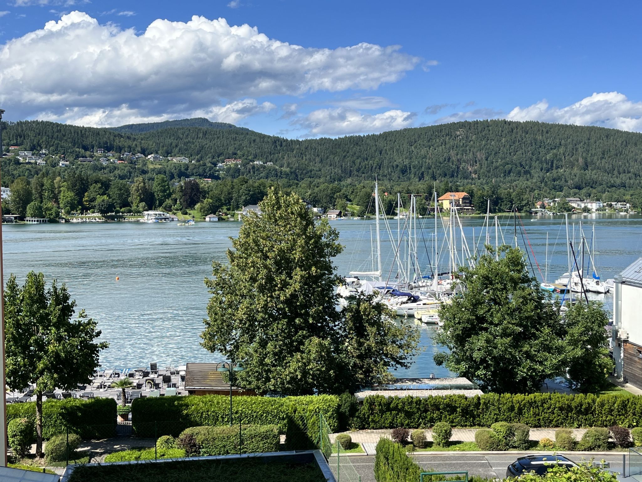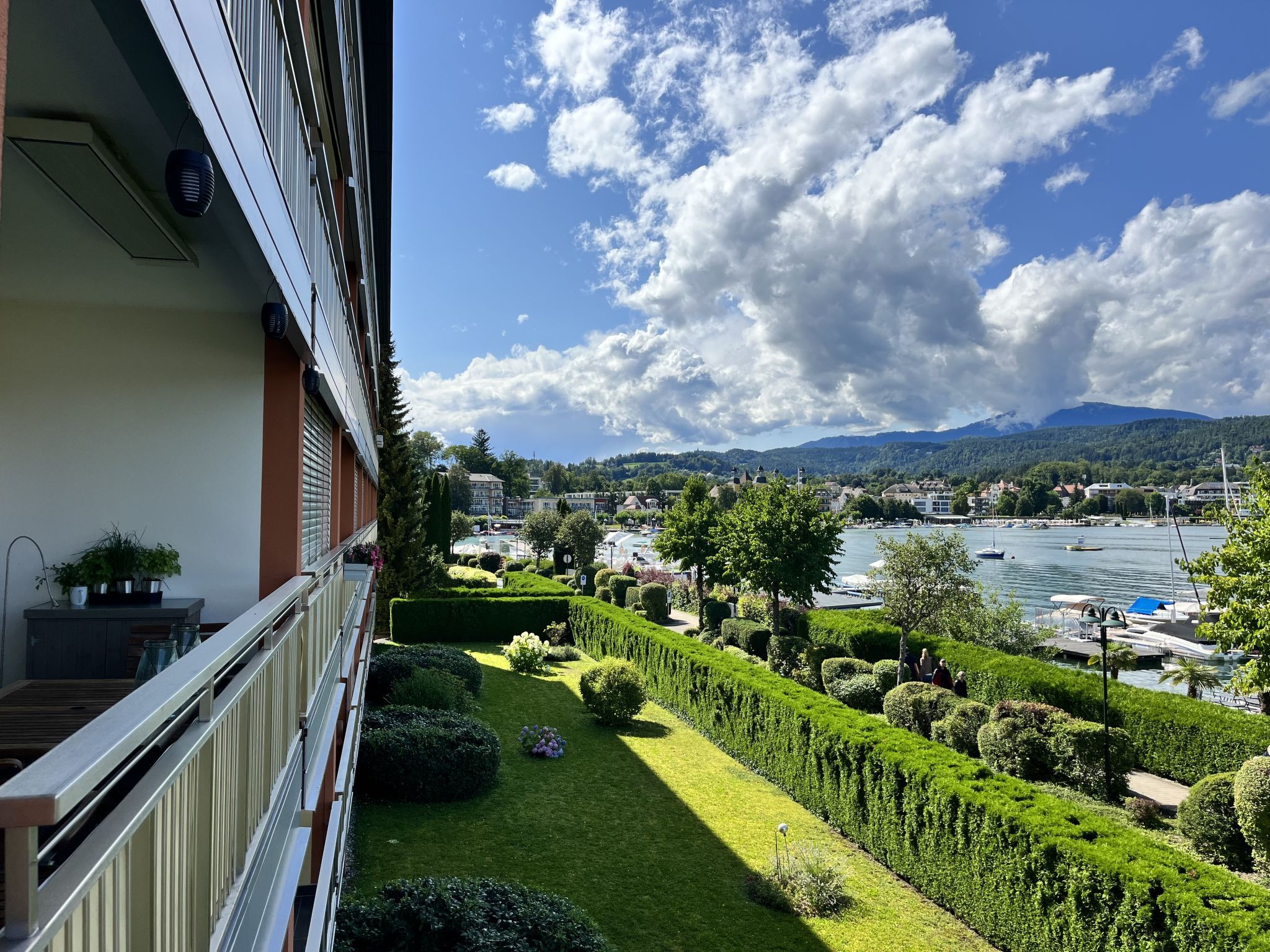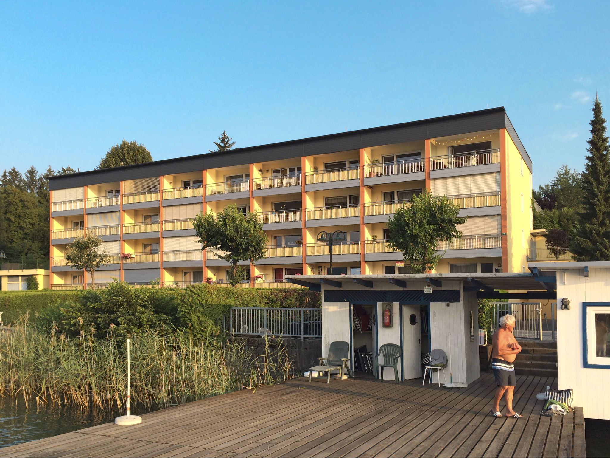 Appartementhaus Seecorso. 40 Wohnungen in der Residenz. 700 m vom Zentrum von Velden, 20 km vom Zentrum von Villach, 25 km vom Zentrum von Klagenfurt, 50 m vom See. Badesteg. Im Hause: Fahrstuhl, Einstellraum für Fahrräder. Gemeinschaftsgarage. Einkaufsgeschäft 500 m, Bushaltestelle Velden/Wörthersee Augsdorfer Str 600 m. Golfplatz (18 Loch) 6 km.