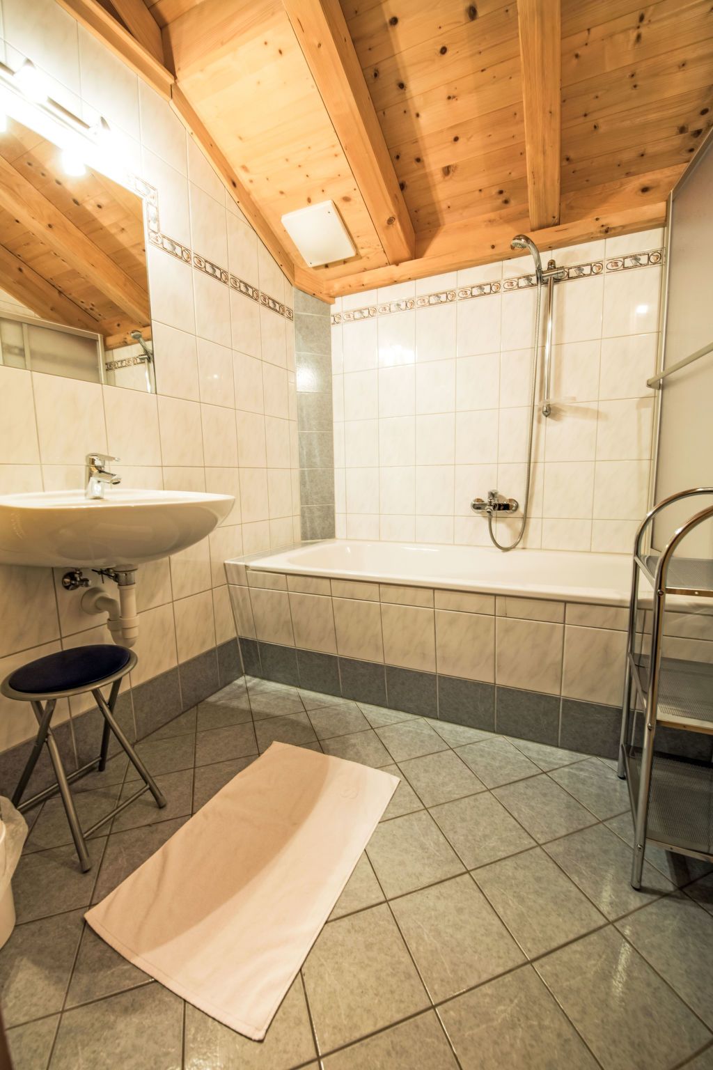 Wiesenglück, 4-Zimmer-Chalet 110 m2 auf 2 Stockwerken. Sehr komfortabel eingerichtet: offenes Wohn-/Esszimmer mit Esstisch, Flachbildschirm, Stereoanlage und DVD. Ausgang zum Garten. Offene Küche (Backofen, Geschirrspüler, 4 Glaskeramikplatten, Toaster, Wasserkocher, Mikrowelle, Tiefkühler, elektrische Kaffeemaschine). Sep. WC. Obergeschoss: 1 Doppelzimmer. Ausgang zum Balkon. 1 Doppelzimmer. Ausgang zum Balkon. 1 Zimmer mit 2 Betten und Flachbildschirm. Bad/WC, sep. WC. Komfortable Einrichtung im Landhausstil. Grosse Terrasse 18 m2. Terrassenmöbel, Liegestühle. Herrliche Panoramasicht auf die Berge. Zur Verfügung: Waschmaschine. Internet (WLAN, gratis). Parkplatz (überdacht). Bitte beachten: Nichtraucher-Haus. Maximal 2 Haustiere/Hunde erlaubt.