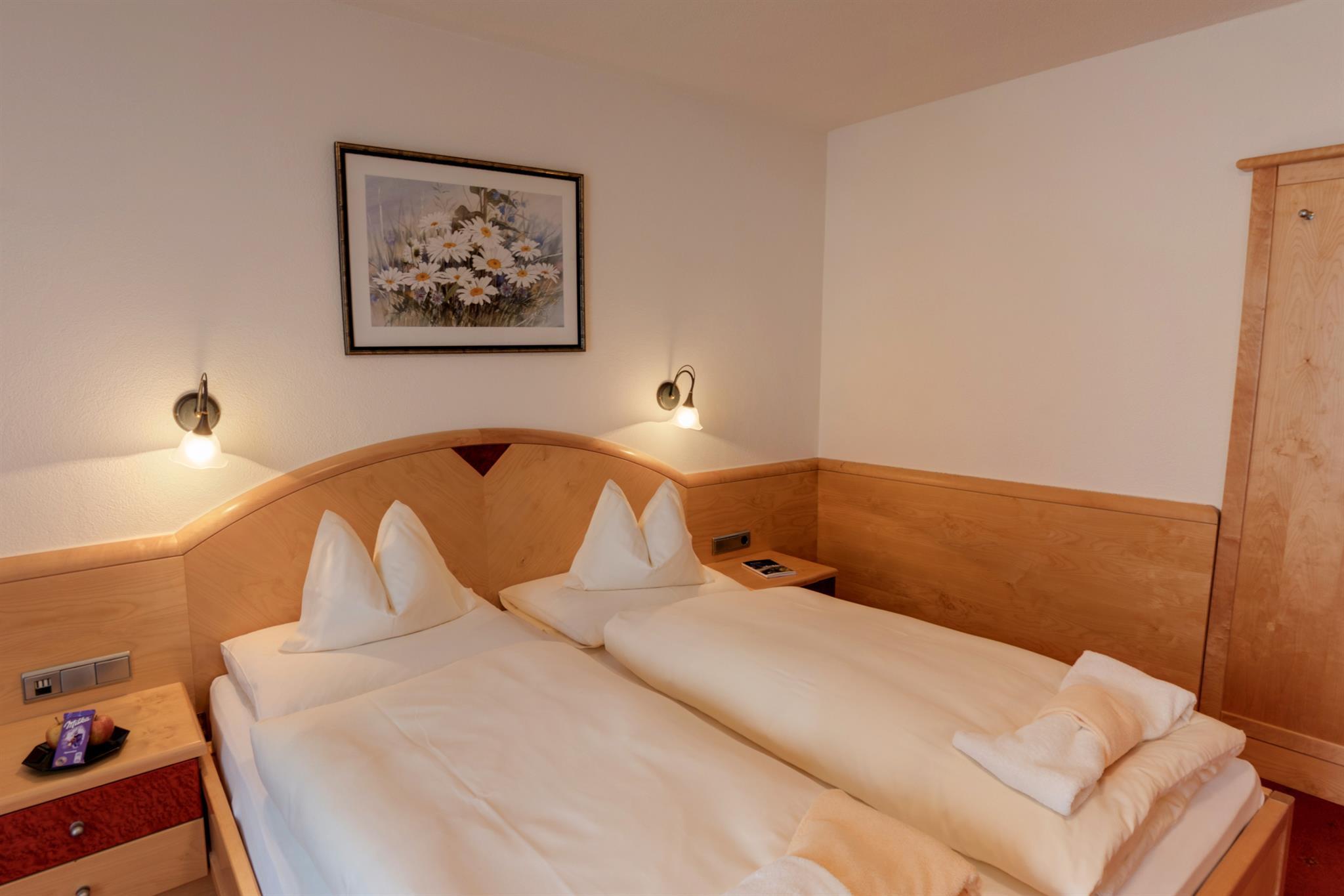 9 Zimmern, 1 Wohnung, Sonnenterrasse und einem kleinen Wellnessbereich mit Sauna, Dampfbad und Infrarotkabine. In die Zimmer führt Sie ein Aufzug. Für Schi und Schuhe steht ein Raum mit Trocknungsmöglichkeit zur Verfügung.