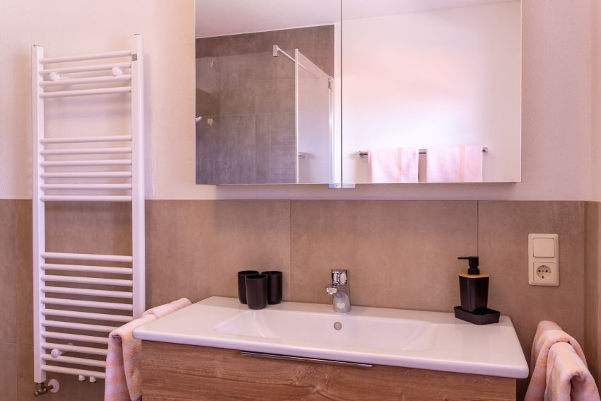 renoviertes (Fertigstellung April 2024) Badezimmer mit Dusche, ein