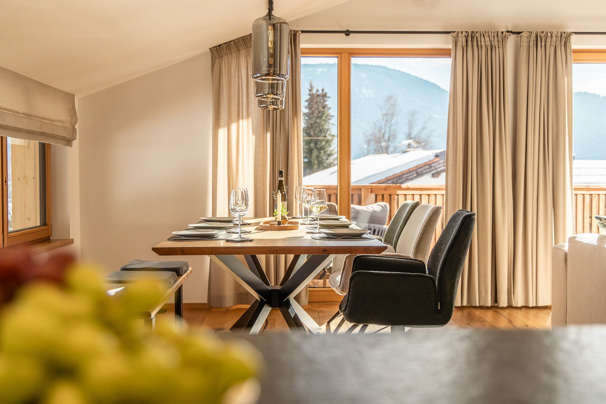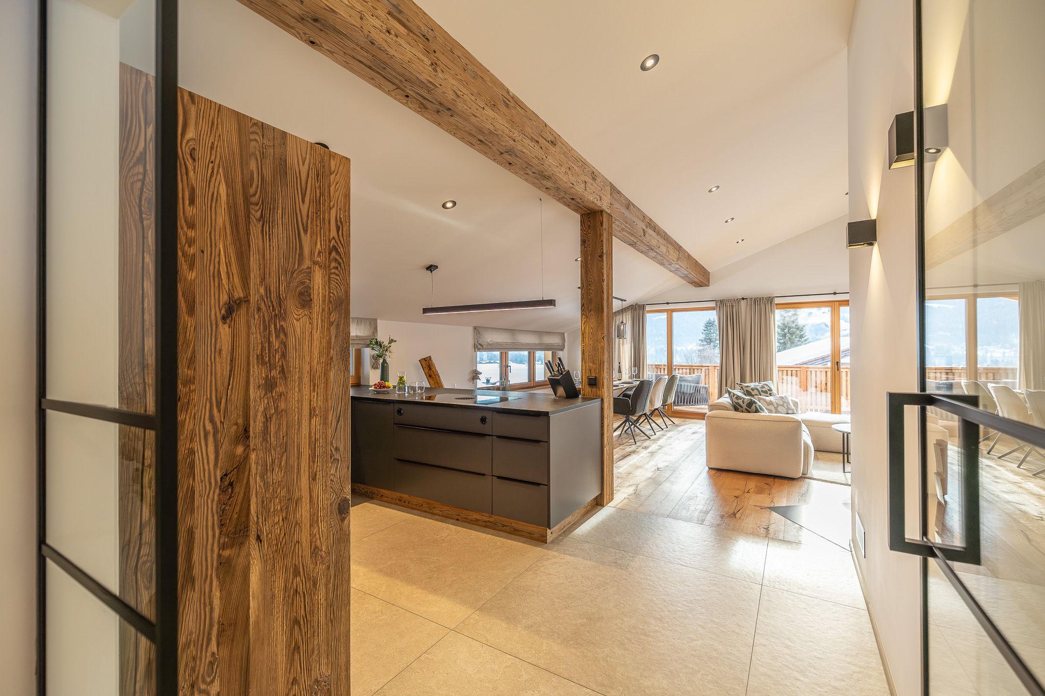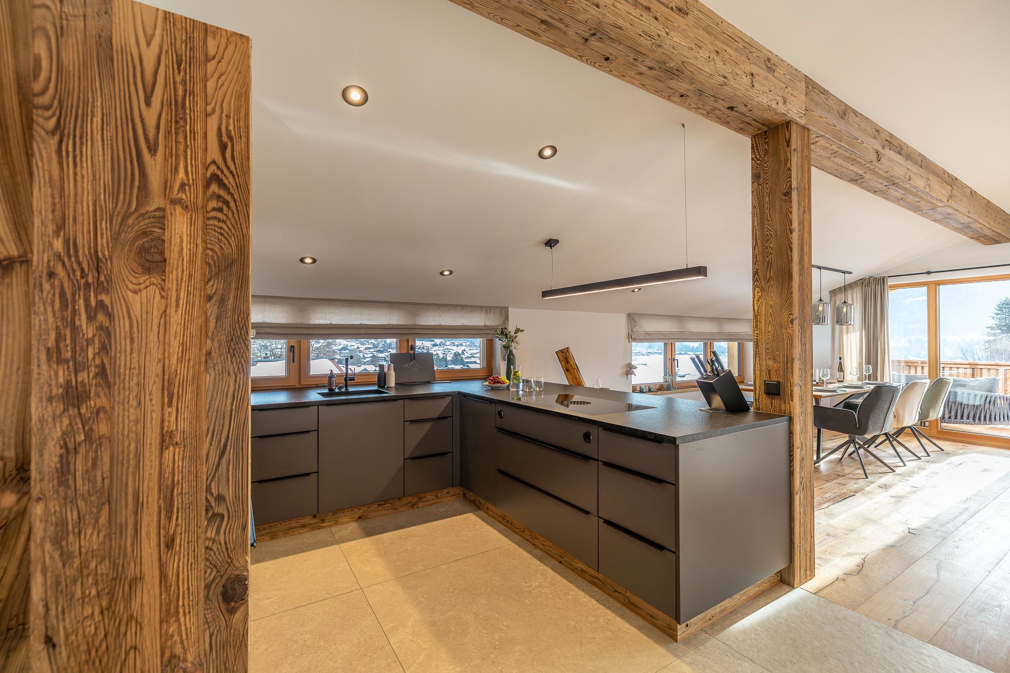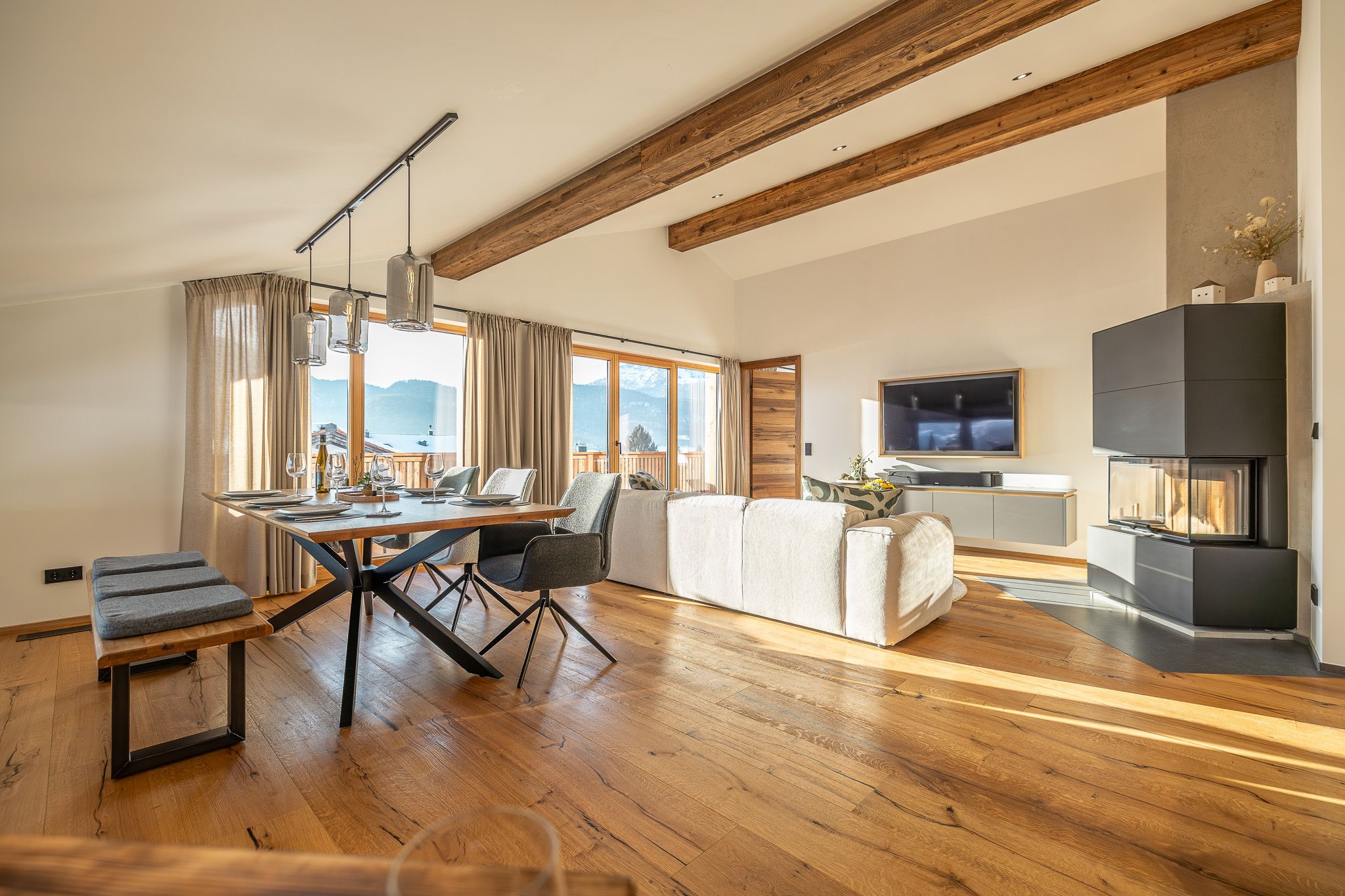 Das neu erbaute Chalet Roahäusl in Reit im Winkl bietet auf 140 Quadratmetern Wohnfläche ein luxuriöses und gemütliches Ambiente, das ideal für einen erholsamen Aufenthalt in den bayerischen Alpen ist. Das charmante Chalet vereint traditionelle Architektur mit modernen Annehmlichkeiten und schafft so eine perfekte Balance zwischen rustikalem Flair und zeitgemäßem Komfort. Die großzügige Wohnfläche erstreckt sich über mehrere Räume, die stilvoll eingerichtet sind und viel Platz für Familien, Paare oder kleine Gruppen bieten. Hier können Sie entspannte Stunden im gemütlichen Wohnzimmer verbringen, in der voll ausgestatteten Küche köstliche Mahlzeiten zubereiten oder in einem der komfortablen Schlafzimmer zur Ruhe kommen. Die hochwertige Ausstattung und die liebevollen Details sorgen dafür, dass Sie sich vom ersten Moment an wie zu Hause fühlen.