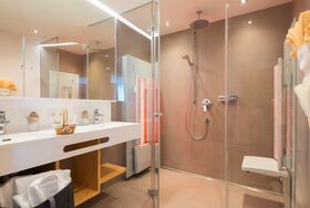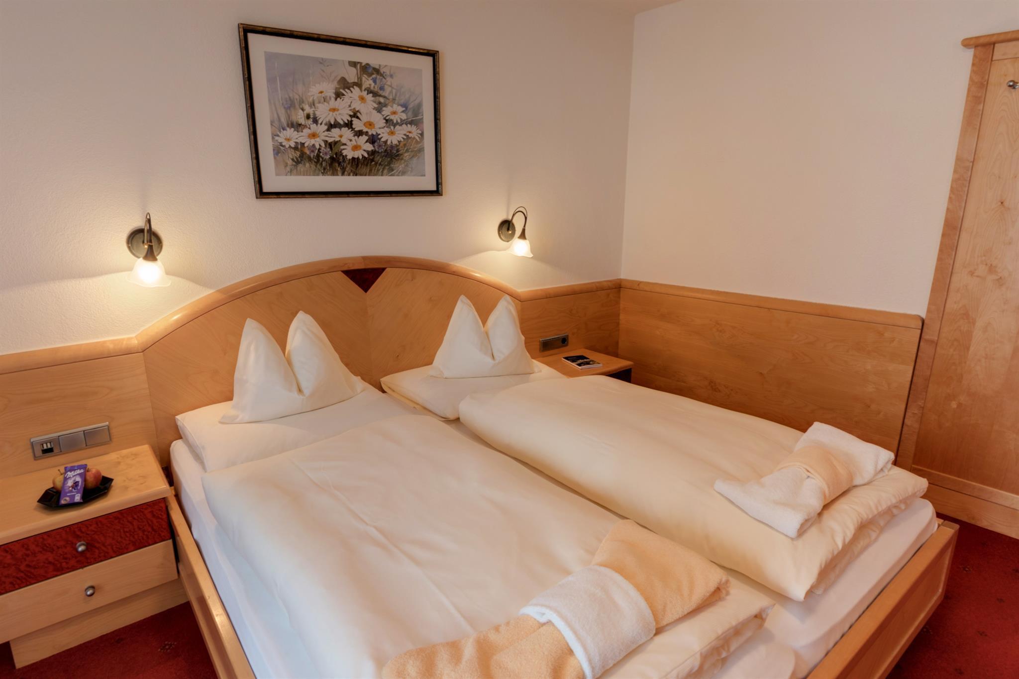 9 Zimmern, 1 Wohnung, Sonnenterrasse und einem kleinen Wellnessbereich mit Sauna, Dampfbad und Infrarotkabine. In die Zimmer führt Sie ein Aufzug. Für Schi und Schuhe steht ein Raum mit Trocknungsmöglichkeit zur Verfügung.