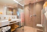 Dreibettzimmer Doppelzimmer mit Zusatzbett, Balkon, 25m² oder 30m². Sonnig, hell & freundlich, Bademantel & Badepantoffeln, WLAN, TV, Telefon, Partykühlschrank, Safe, Gartenmöbel.