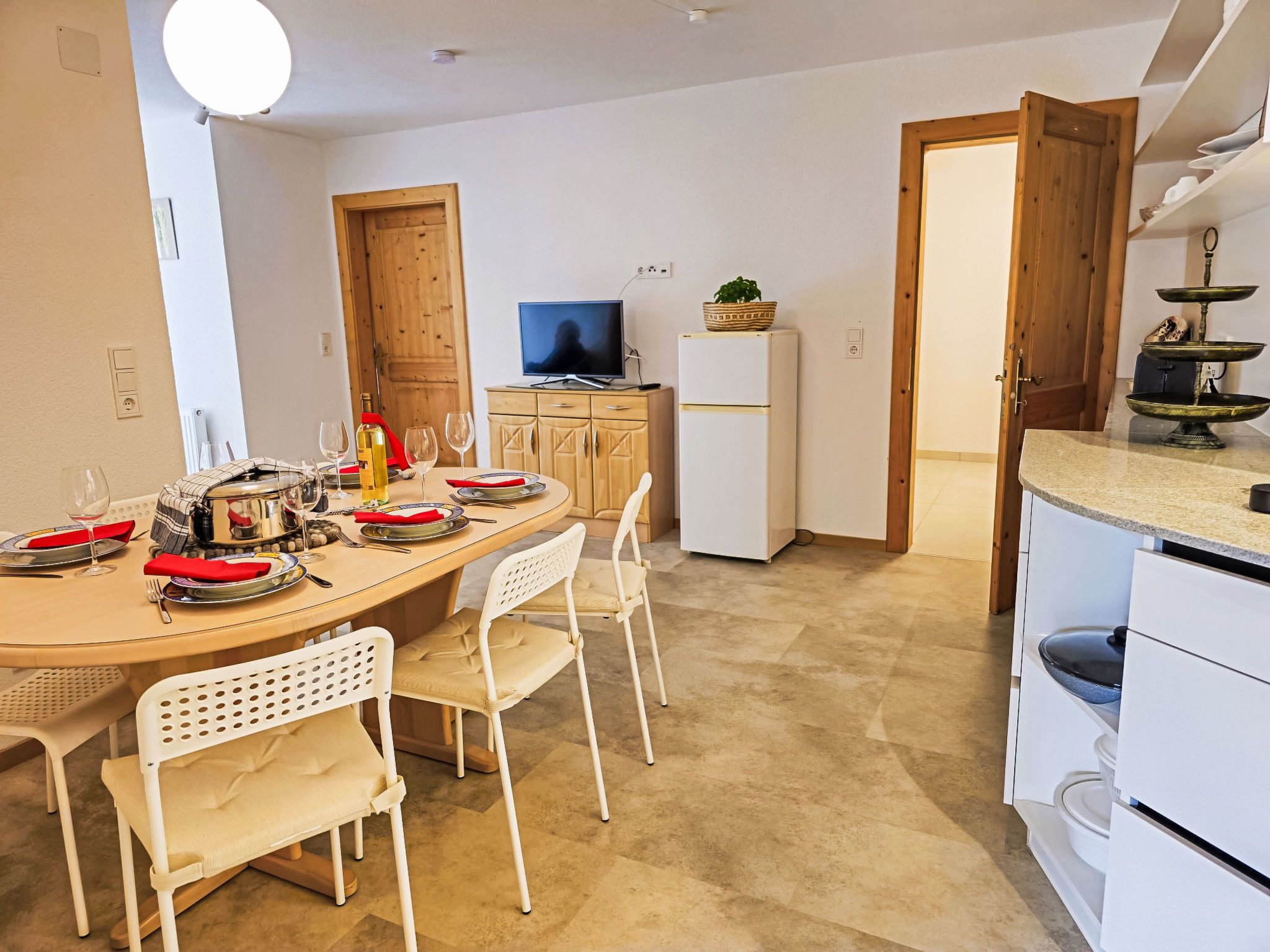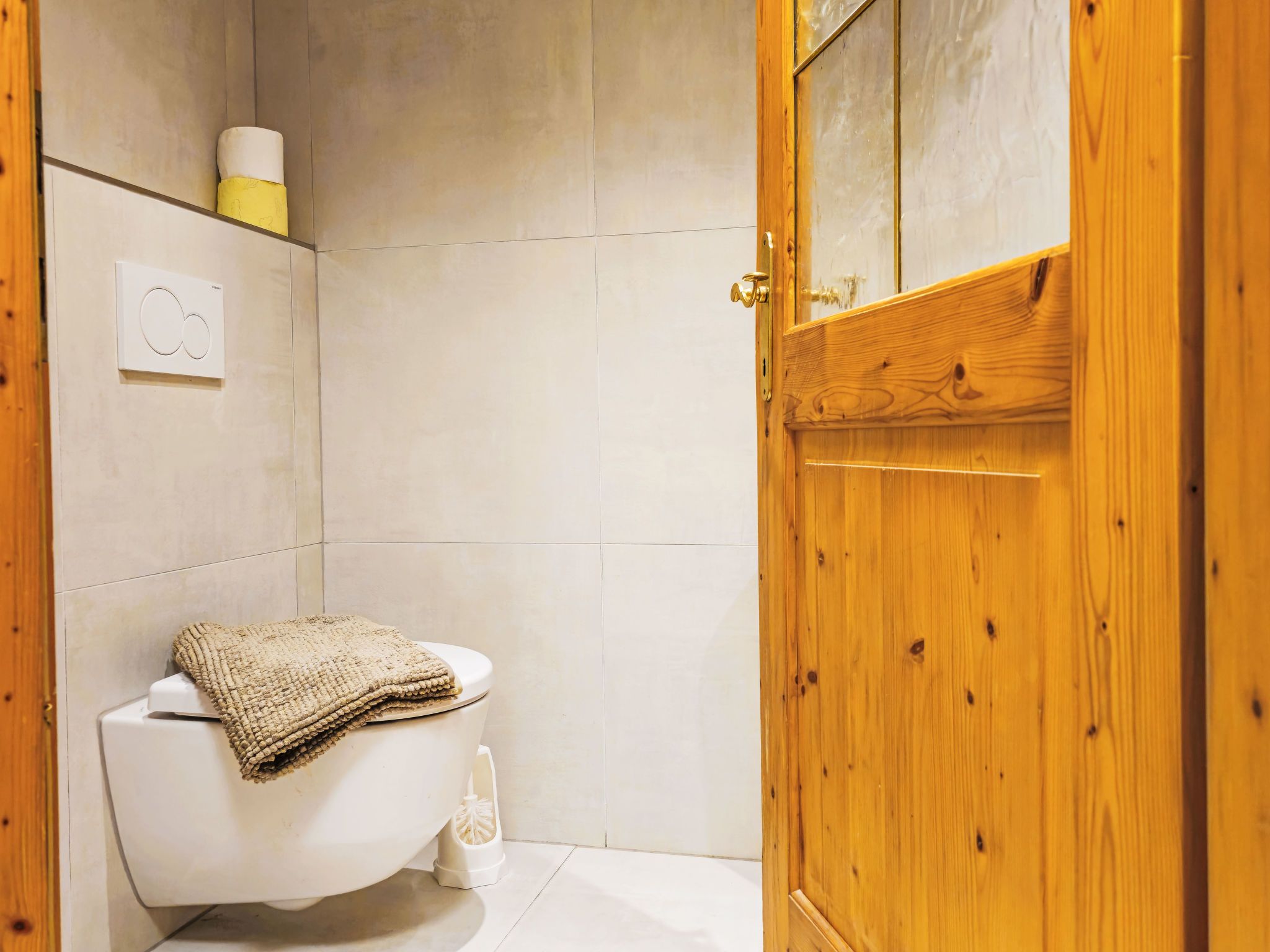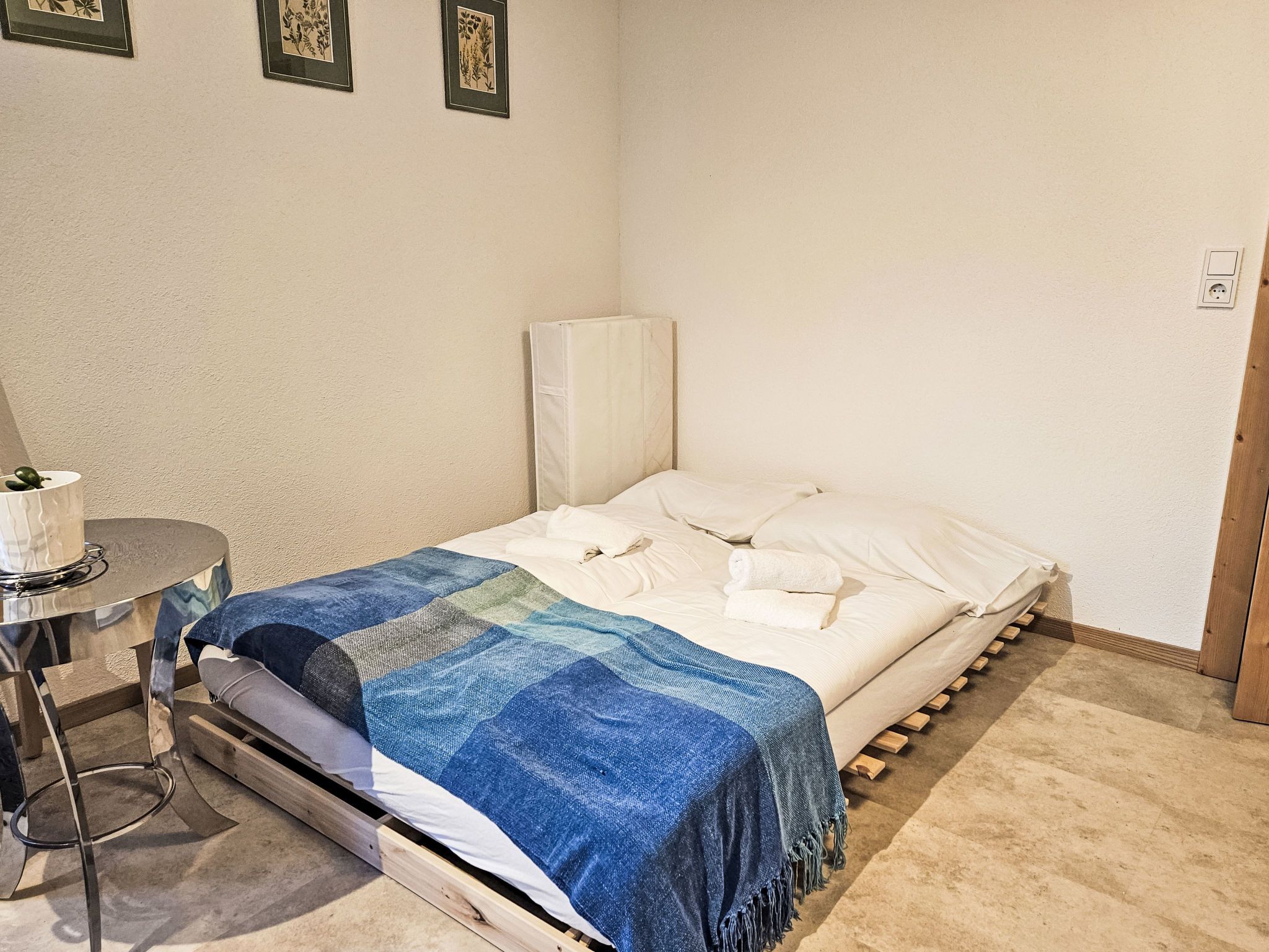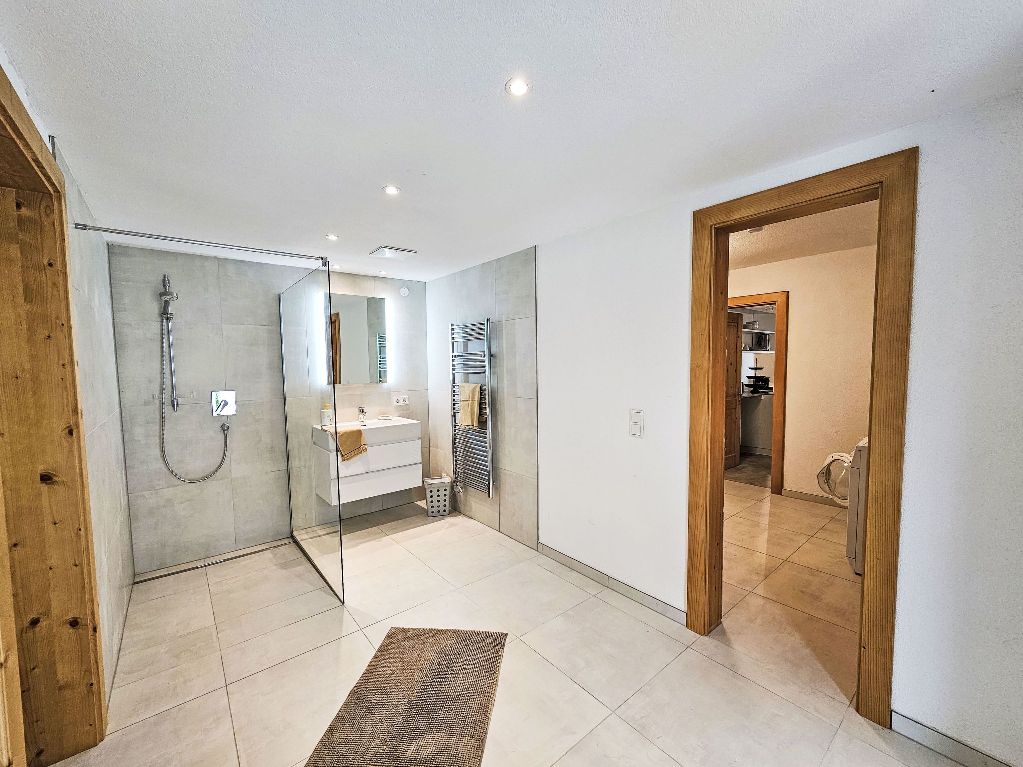 Sonnenseite, 5-Zimmer-Wohnung 130 m2, im ebenerdigen Untergeschoss. Geräumig, renoviert im Jahre 2024, komfortabel und gemütlich eingerichtet: 1 Kinderzimmer mit 1 x 1 Etagenbetten (90 cm, Länge 200 cm). Wohnzimmer mit 1 Doppeldiwanbett und Dusche/WC. Ausgang zum Garten. 1 Doppelzimmer mit 1 Doppelbett (180 cm, Länge 200 cm). 1 Doppelzimmer mit 1 franz. Bett (160 cm, Länge 200 cm). Kochnische (Backofen, Geschirrspüler, 4 Induktionskochplatten, Toaster, Wasserkocher, Mikrowelle, elektrische Kaffeemaschine, Kapseln für die Kaffeemaschine (Nespresso) extra) mit Sat-TV. Ausgang zum Garten. Dusche, sep. WC. Sehr schöne Panoramasicht auf die Berge und den Wald. Zur Verfügung: Waschmaschine. Bitte beachten: geeignet für Familien. Eigener Eingang.