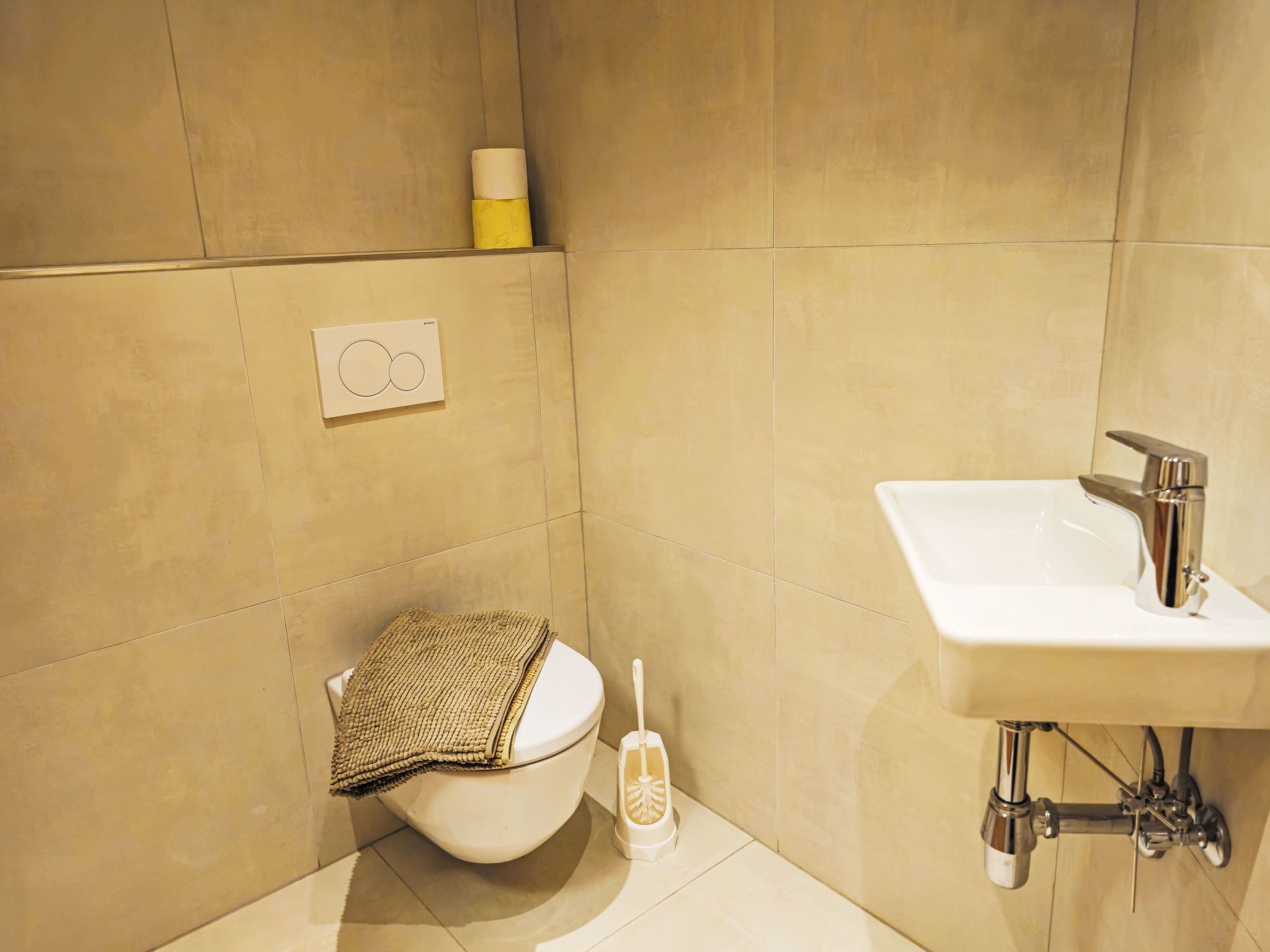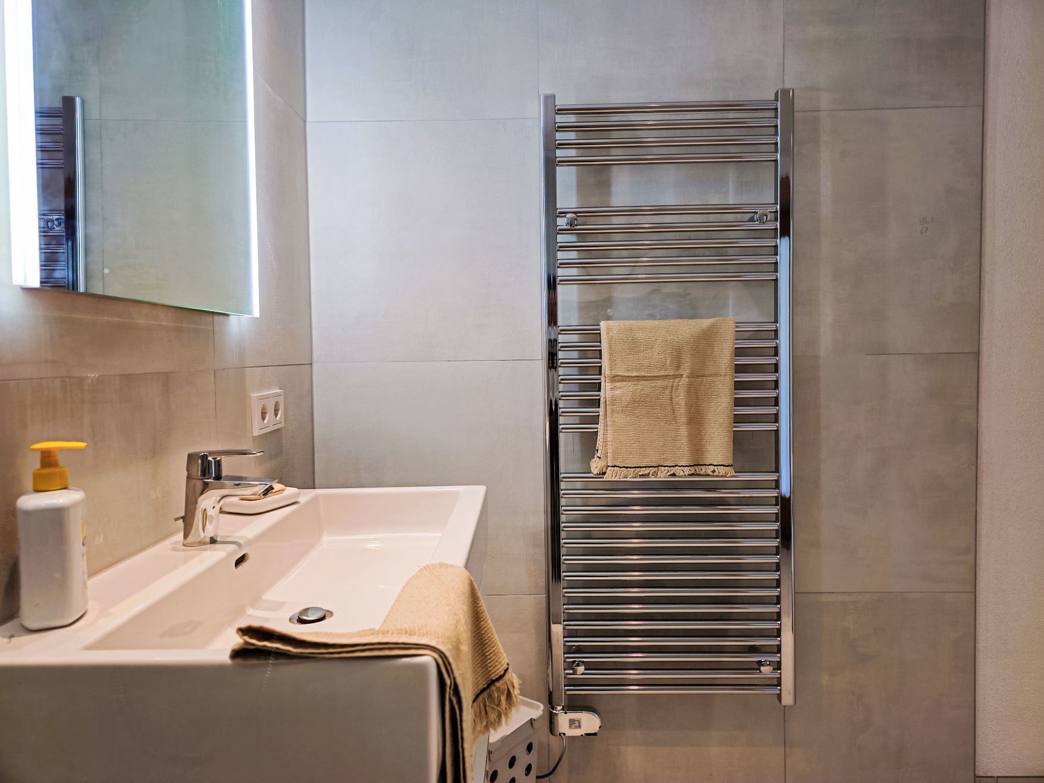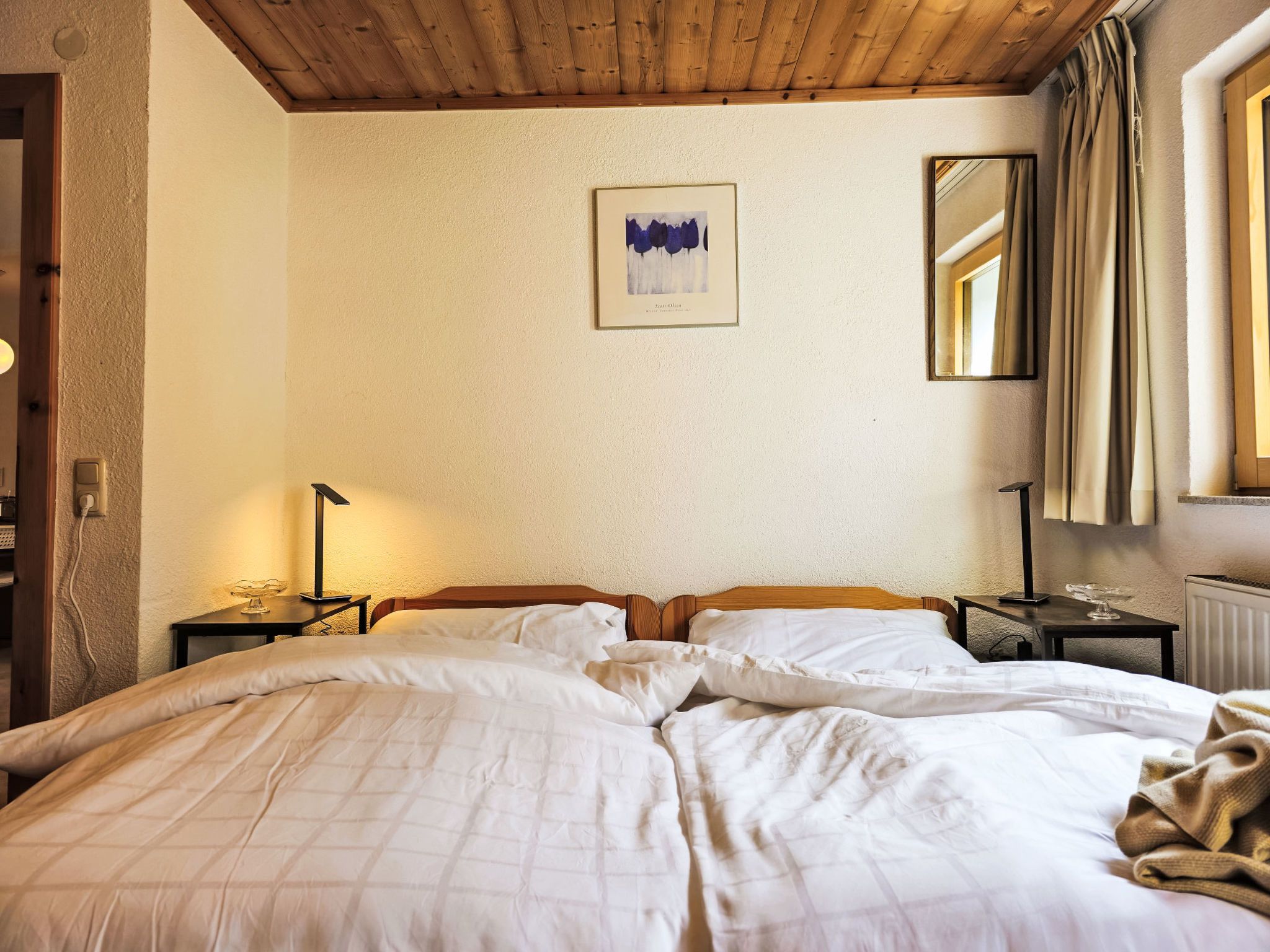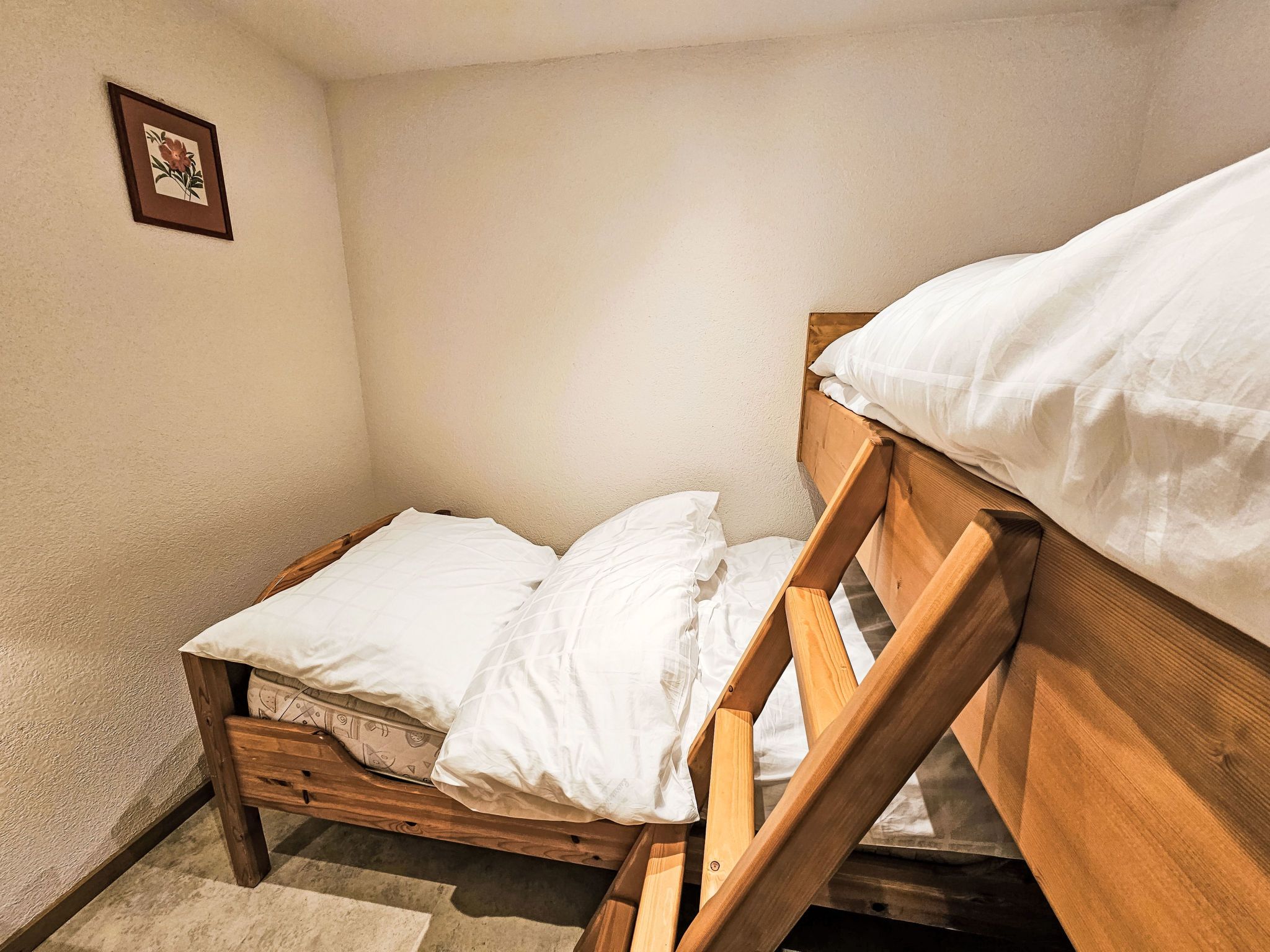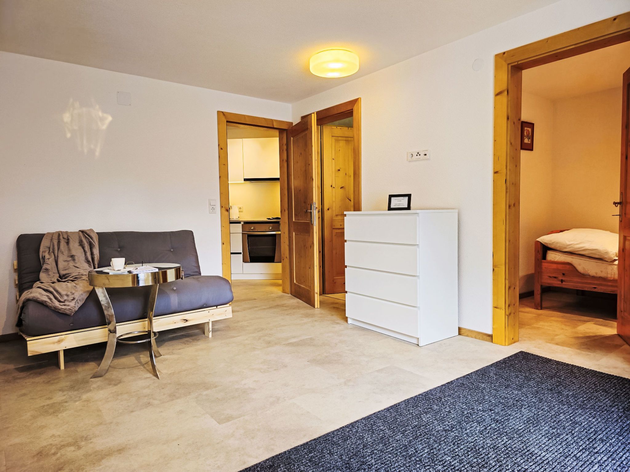 Sonnenseite, 5-Zimmer-Wohnung 130 m2, im ebenerdigen Untergeschoss. Geräumig, renoviert im Jahre 2024, komfortabel und gemütlich eingerichtet: 1 Kinderzimmer mit 1 x 1 Etagenbetten (90 cm, Länge 200 cm). Wohnzimmer mit 1 Doppeldiwanbett und Dusche/WC. Ausgang zum Garten. 1 Doppelzimmer mit 1 Doppelbett (180 cm, Länge 200 cm). 1 Doppelzimmer mit 1 franz. Bett (160 cm, Länge 200 cm). Kochnische (Backofen, Geschirrspüler, 4 Induktionskochplatten, Toaster, Wasserkocher, Mikrowelle, elektrische Kaffeemaschine, Kapseln für die Kaffeemaschine (Nespresso) extra) mit Sat-TV. Ausgang zum Garten. Dusche, sep. WC. Sehr schöne Panoramasicht auf die Berge und den Wald. Zur Verfügung: Waschmaschine. Bitte beachten: geeignet für Familien. Eigener Eingang.