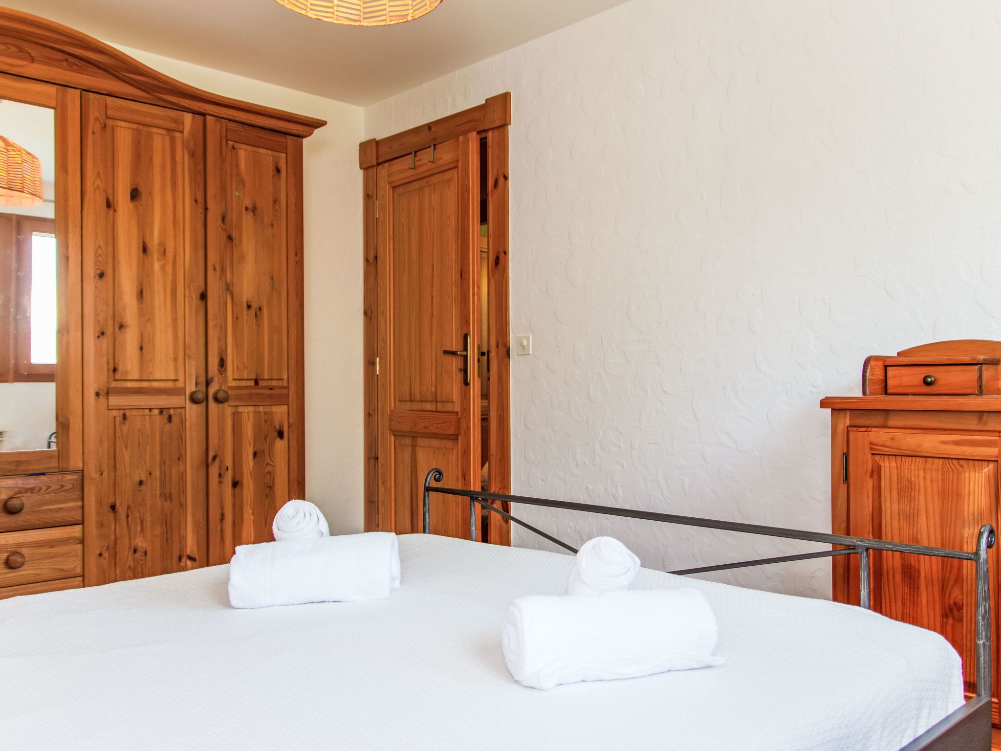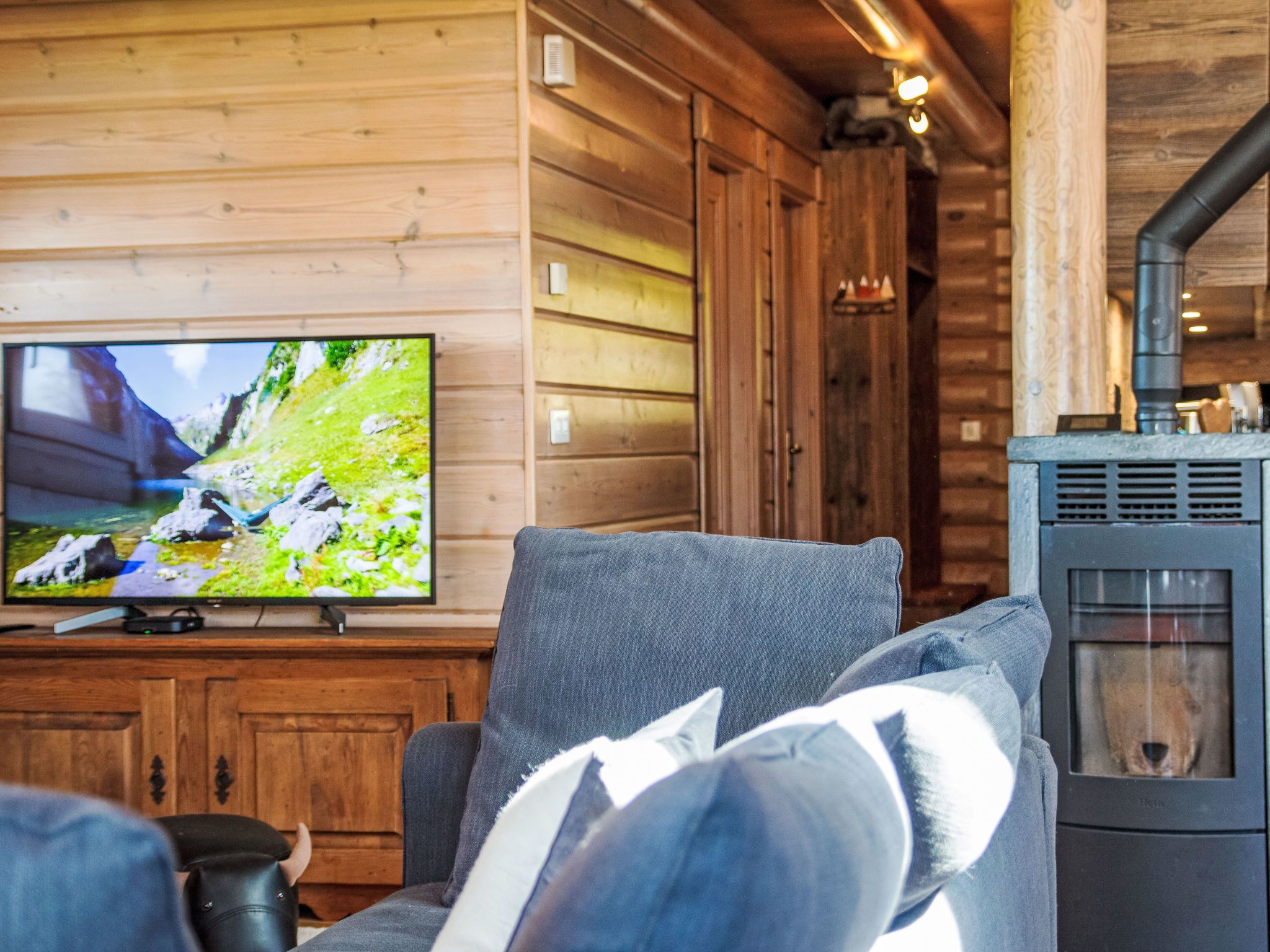 Chalet Sept, 5-Zimmer-Chalet 150 m2 auf 2 Stockwerken, Nordlage. Objekt geeignet für 6 Erwachsene + 2 Kinder. Renoviert im Jahre 2023, komfortabel und geschmackvoll eingerichtet: Eingang mit Dusche/WC. Grosses Wohn-/Esszimmer mit Schwedenofen und Kabel-TV. Ausgang zur Terrasse. Offene Küche (Backofen, Geschirrspüler, 4 Induktionskochplatten, Toaster, Wasserkocher, Tiefkühler, elektrische Kaffeemaschine, Racletteofen, Fondue Set (Käse)). E-Heizung. Unteres Geschoss: 1 Zimmer mit 1 x 2 Etagenbetten (80 cm, Länge 190 cm), 1 franz. Bett (160 cm, Länge 190 cm). 1 Zimmer mit 1 franz. Bett (160 cm, Länge 190 cm). 1 Zimmer mit 1 franz. Bett (160 cm, Länge 190 cm) mit Bad/WC. Terrasse. Terrassenmöbel, Gartengrill, Liegestühle (2). Sehr schöne Sicht auf die Berge. Zur Verfügung: Waschmaschine, Wäschetrockner, Kinderhochstuhl, Babybett, Haartrockner. Internet (WLAN, gratis). Parkplatz (2 Autos). Bitte beachten: Nichtraucher-Unterkunft. Maximal 1 Haustier/Hund erlaubt.